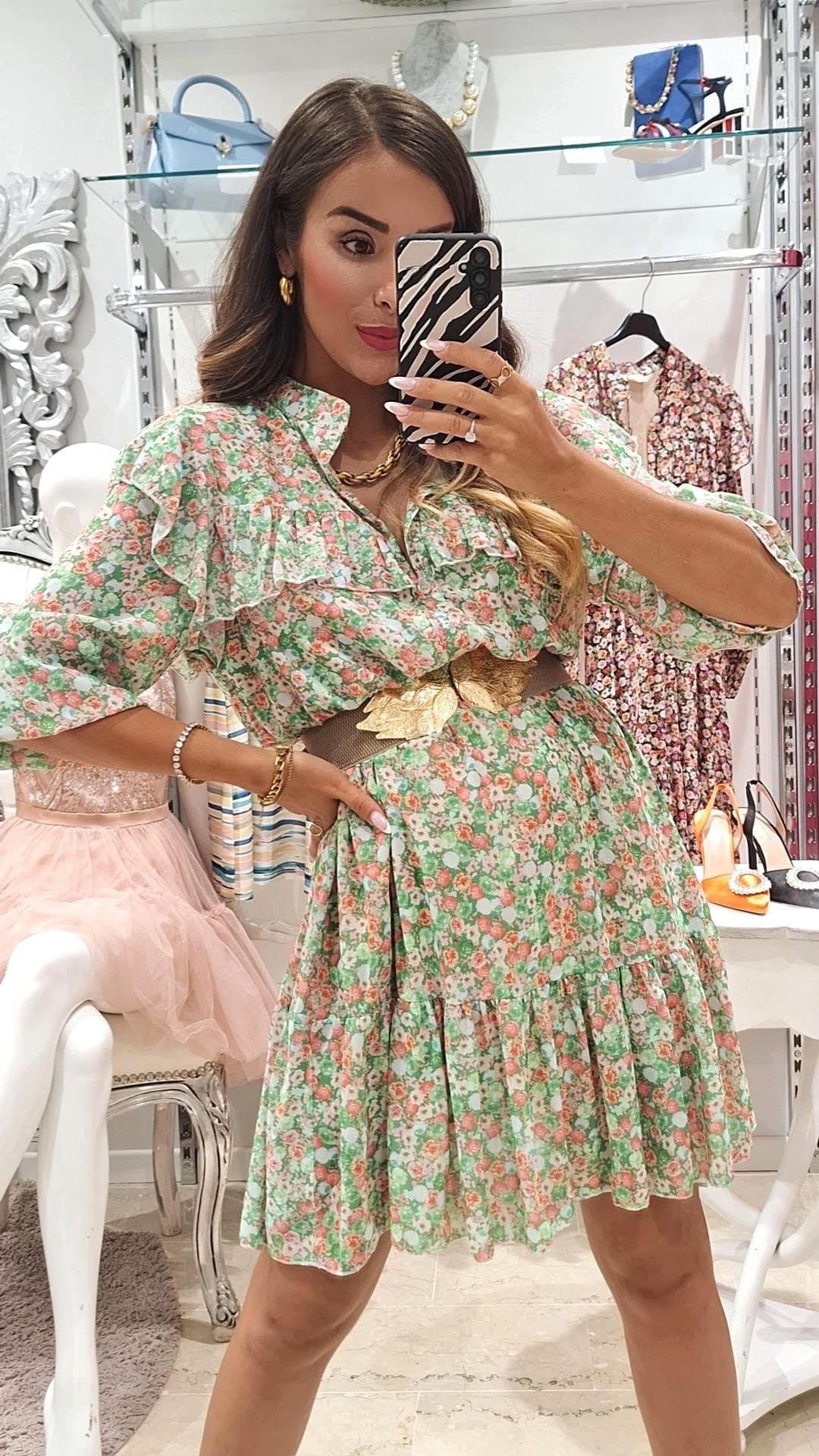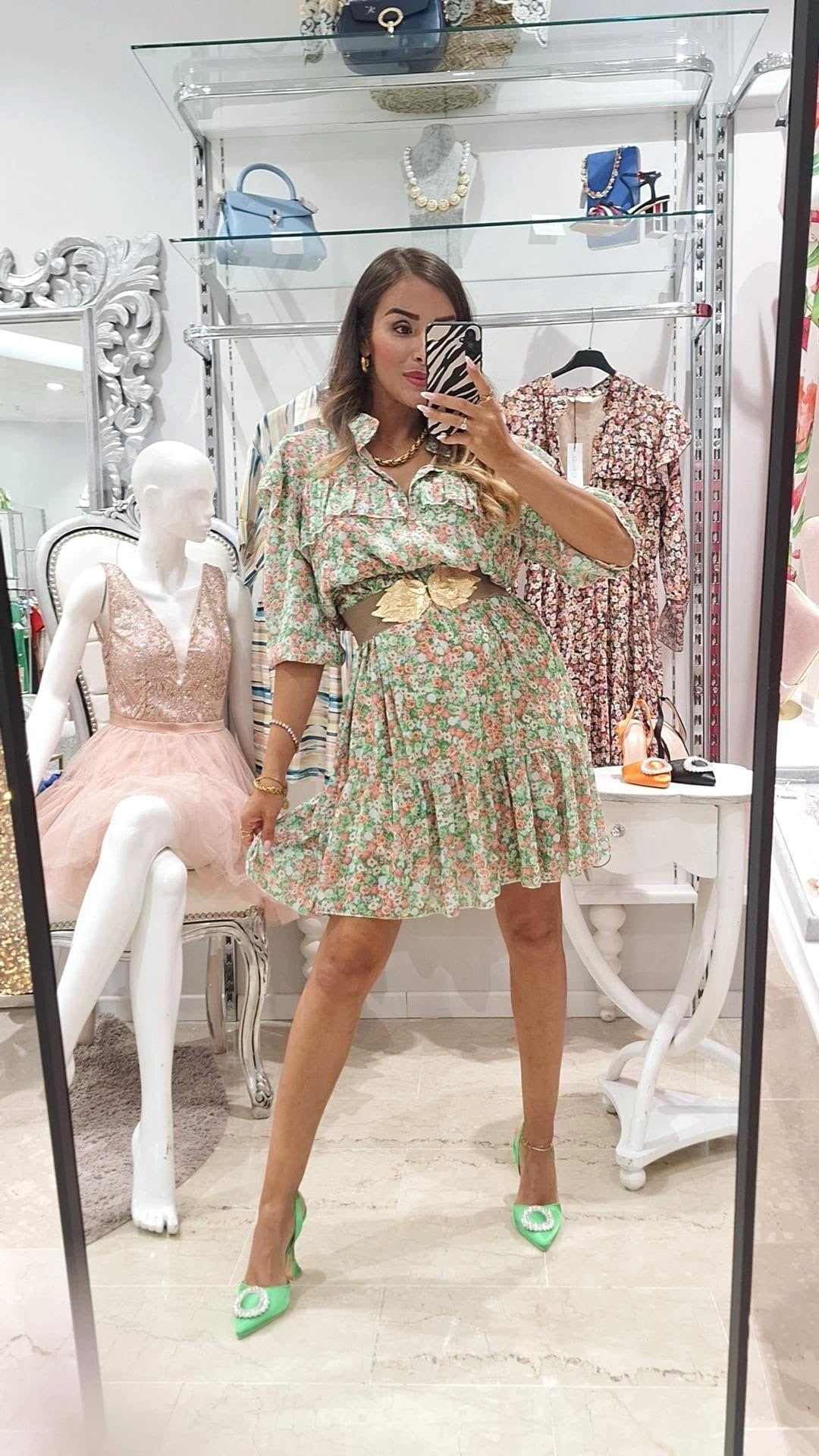 Abito Alexis - Abitino fiorato a maniche corte con vita elasticizzata