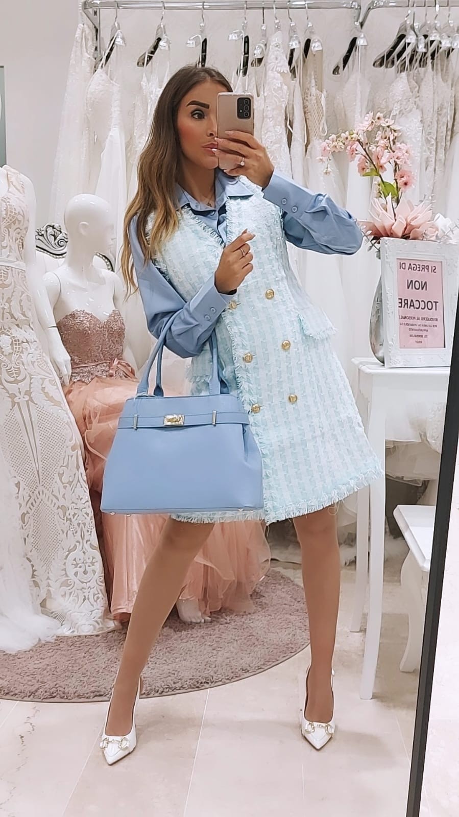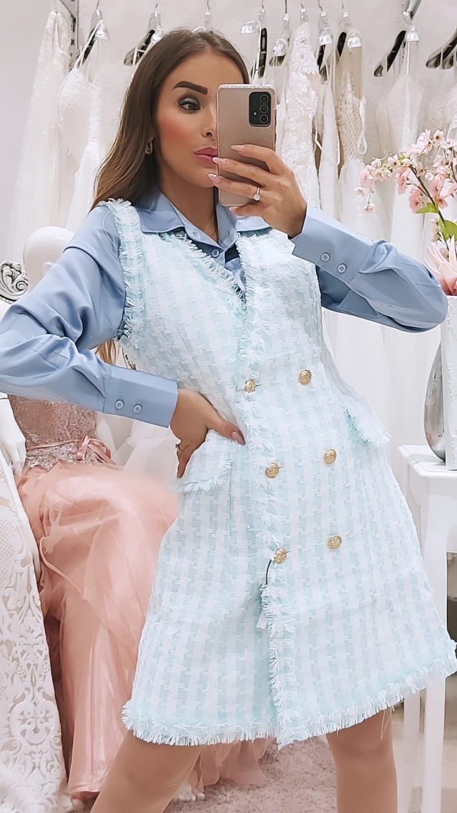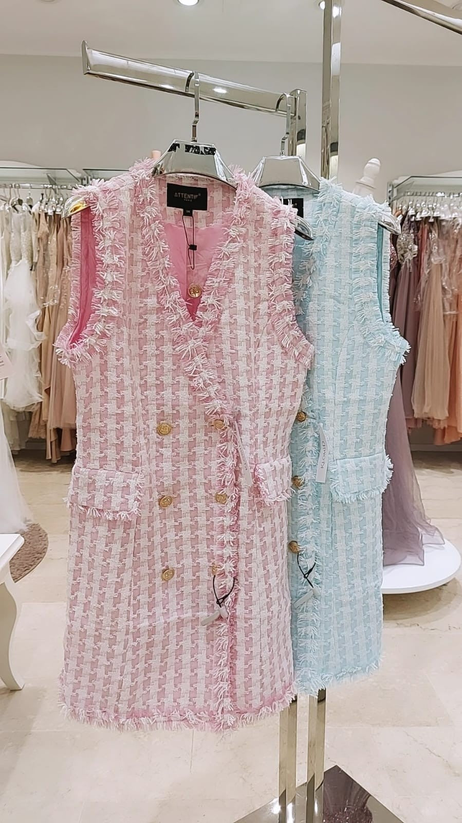 Abito Carlotta - Abito smanicato a quadretti in tweed con bottoni dorati
