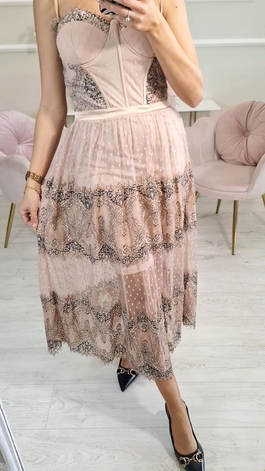 Abito da cerimonia Chantal - Abito midi in tulle e pizzo con coppette imbottite