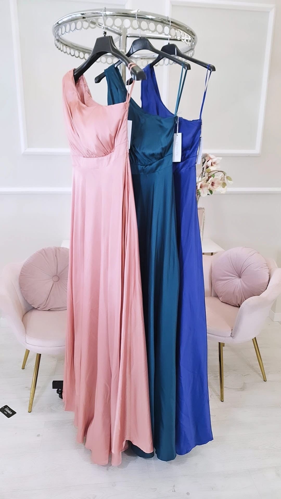 Abito da cerimonia Cordelia - Abito da cerimonia monospalla effetto raso in tinta unita