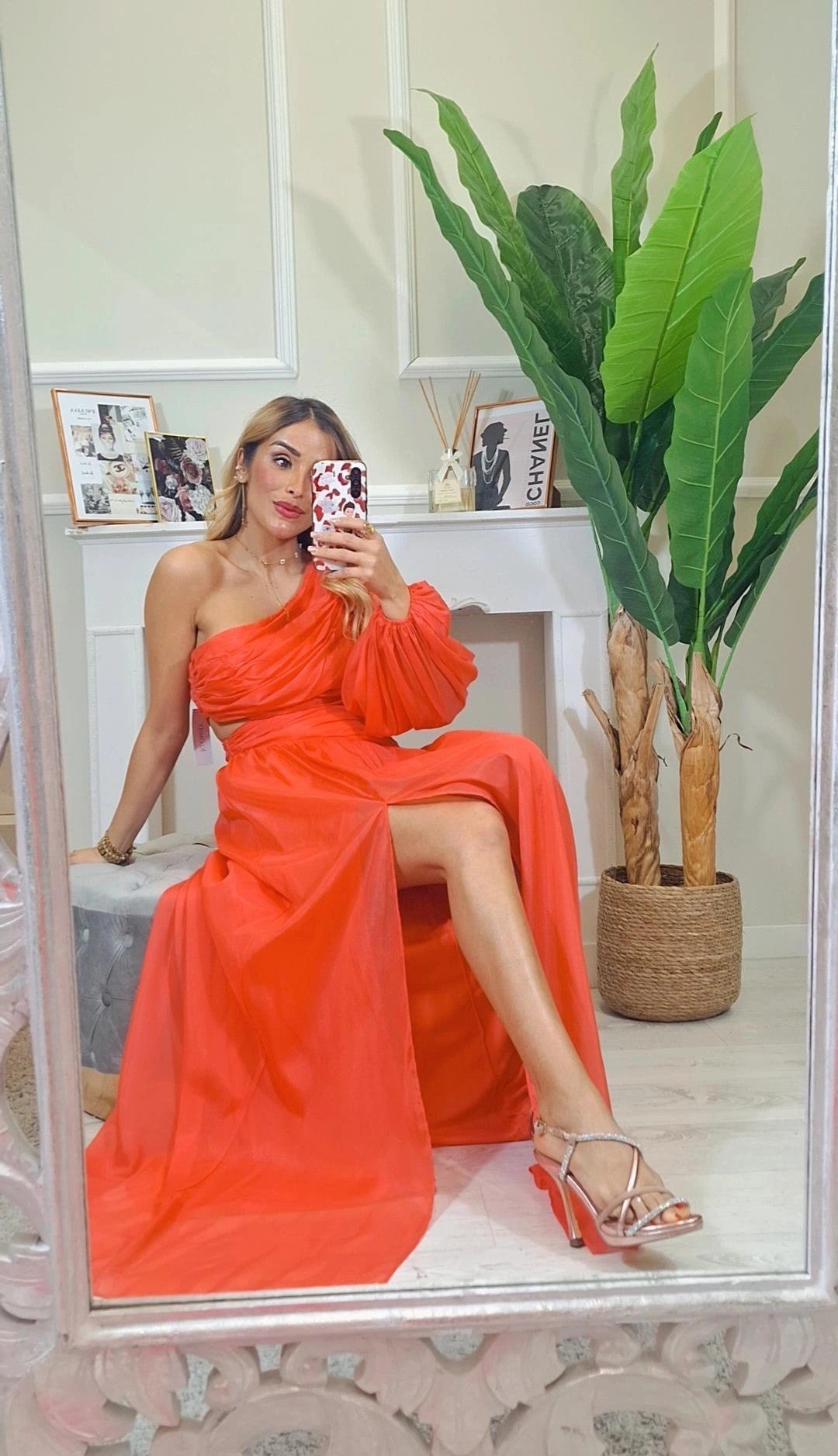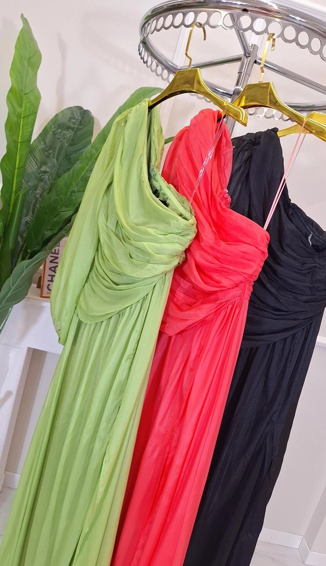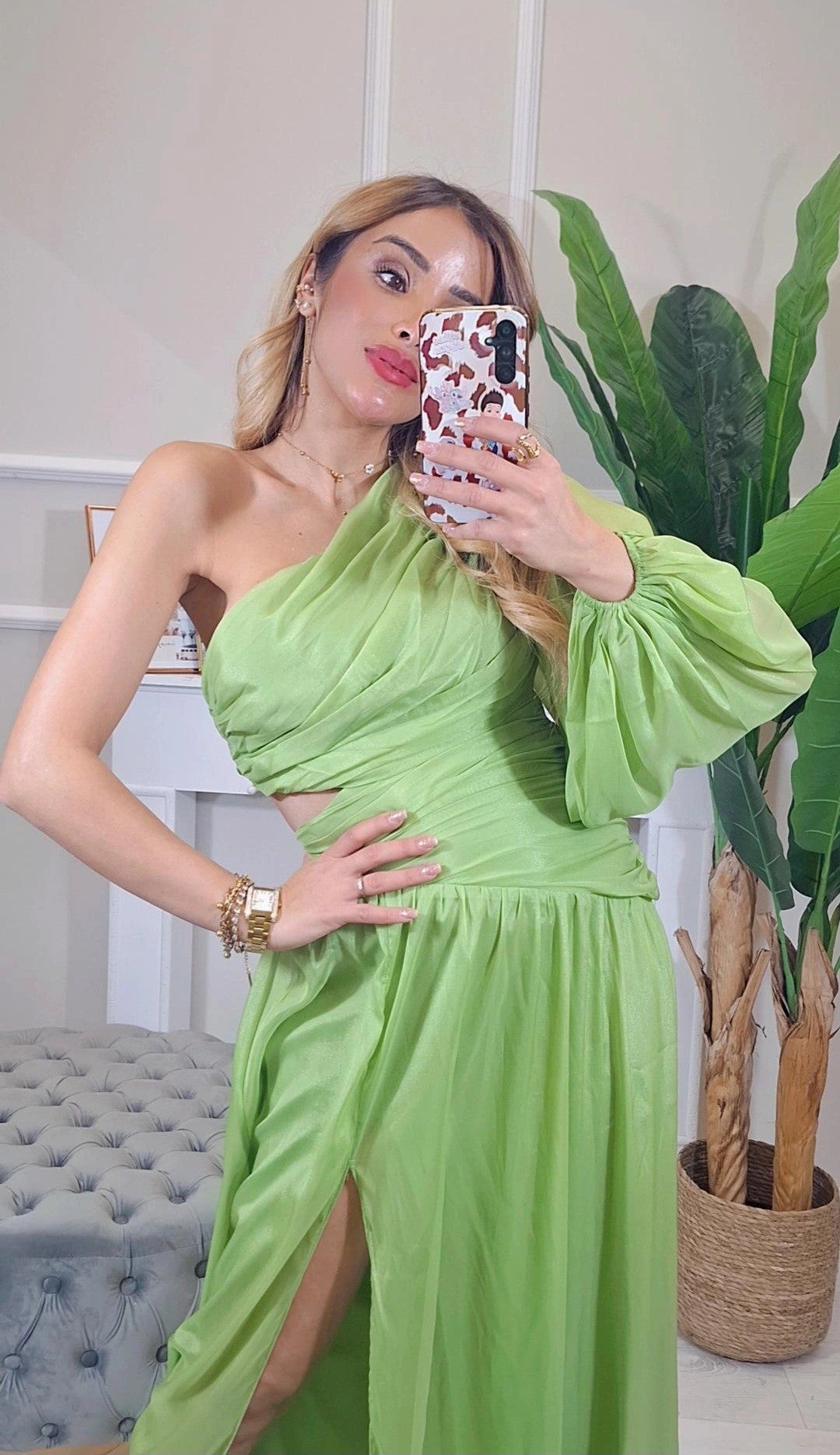Abito Da Cerimonia Eleonor- Abito da cerimonia monospalla con parte superiore e gonna plisettata, piccolo spacco a livello della vita e spacco laterale.