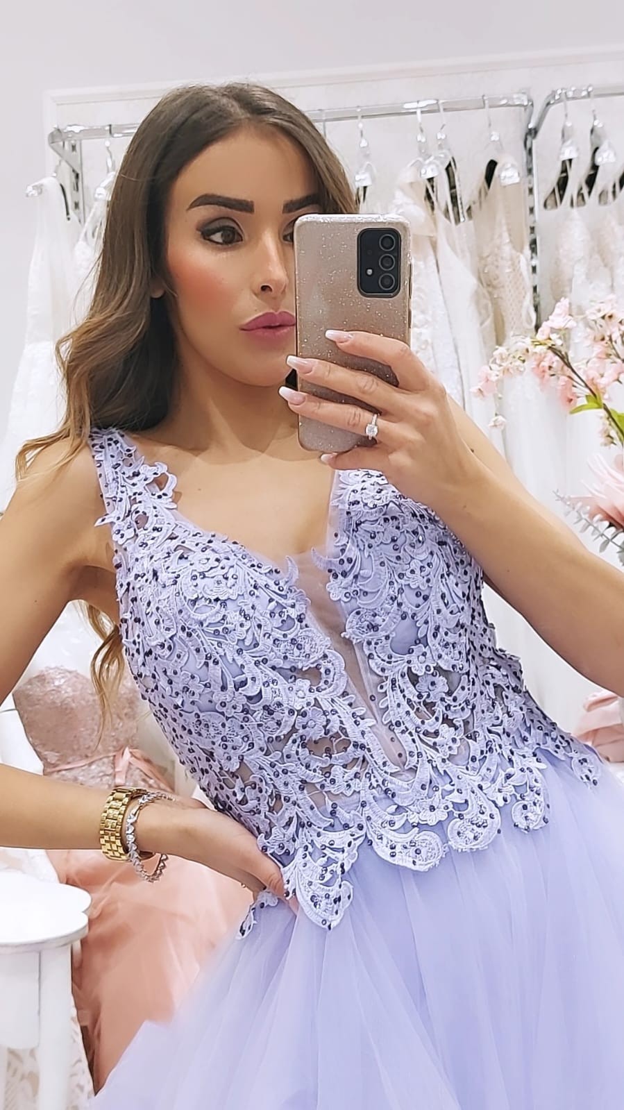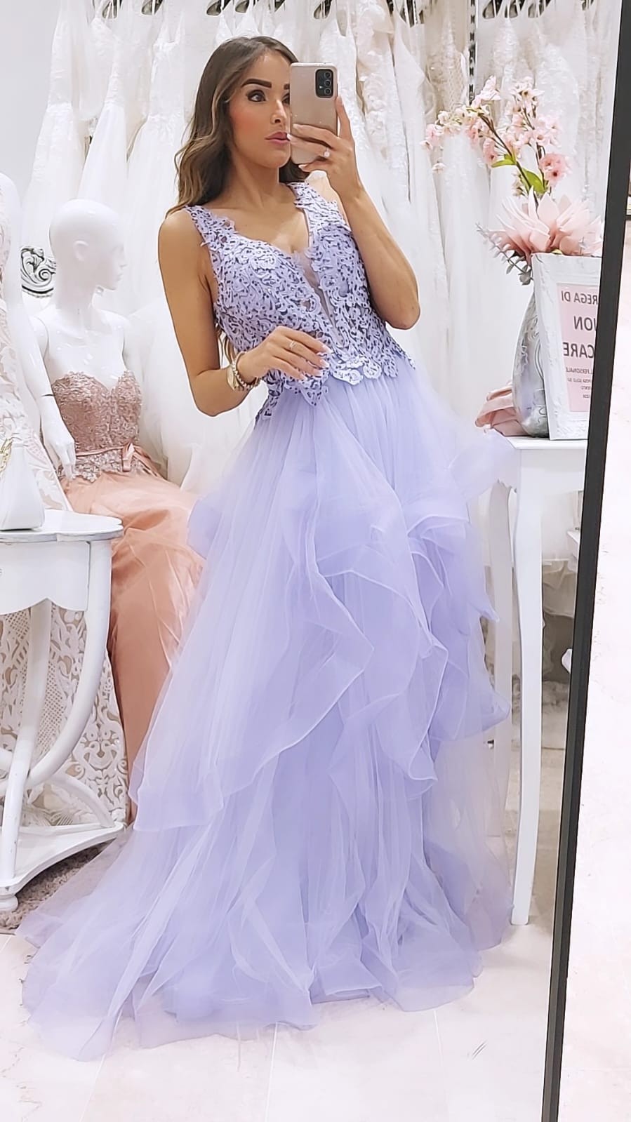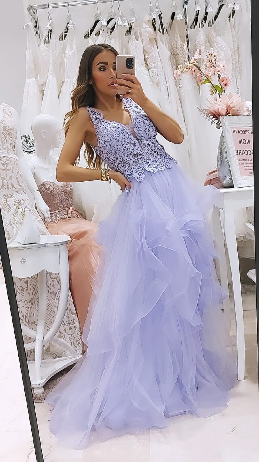 Abito da cerimonia Gwen - Abito lungo con corsetto lavorato e gonna in tulle arricciato