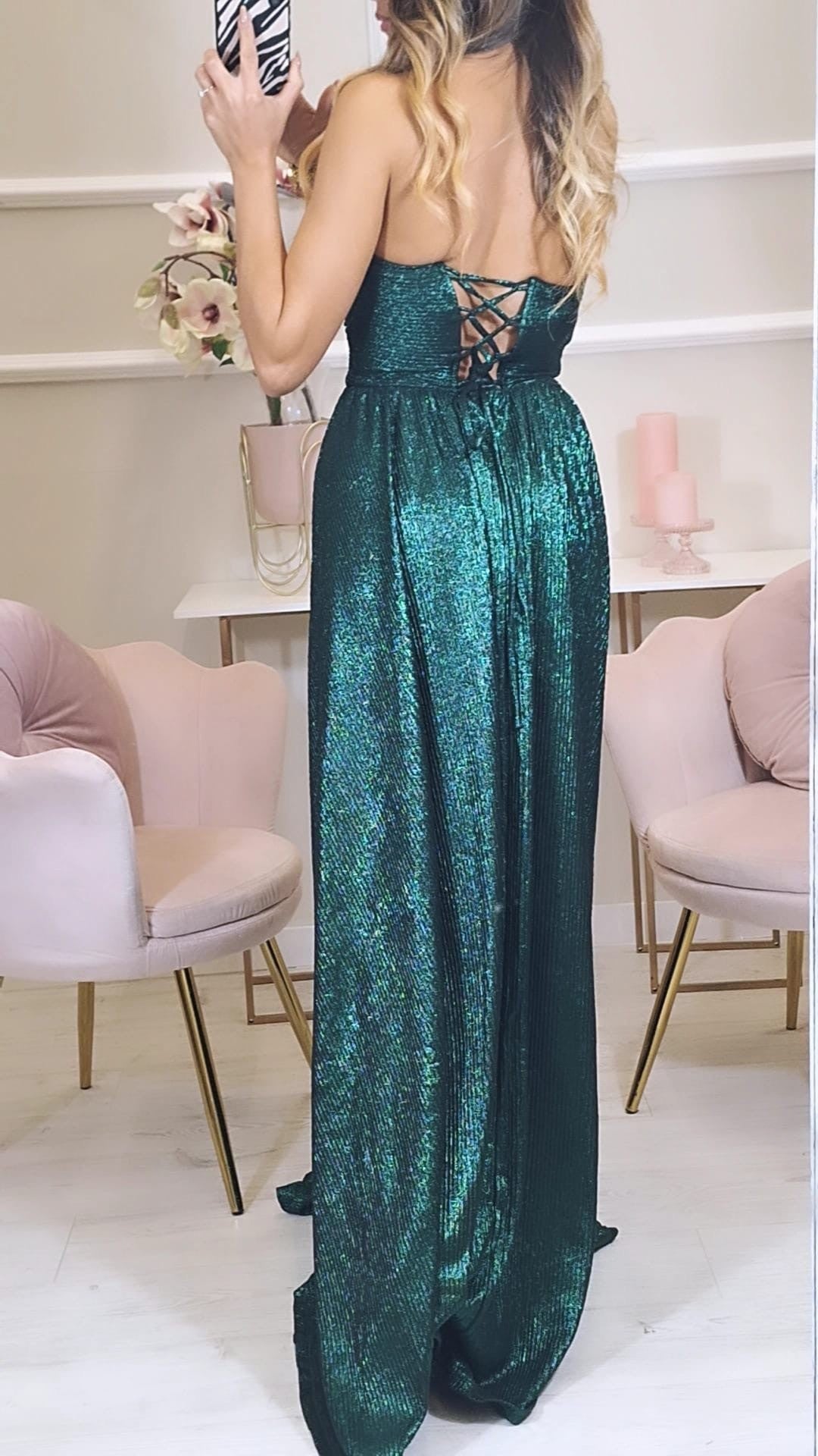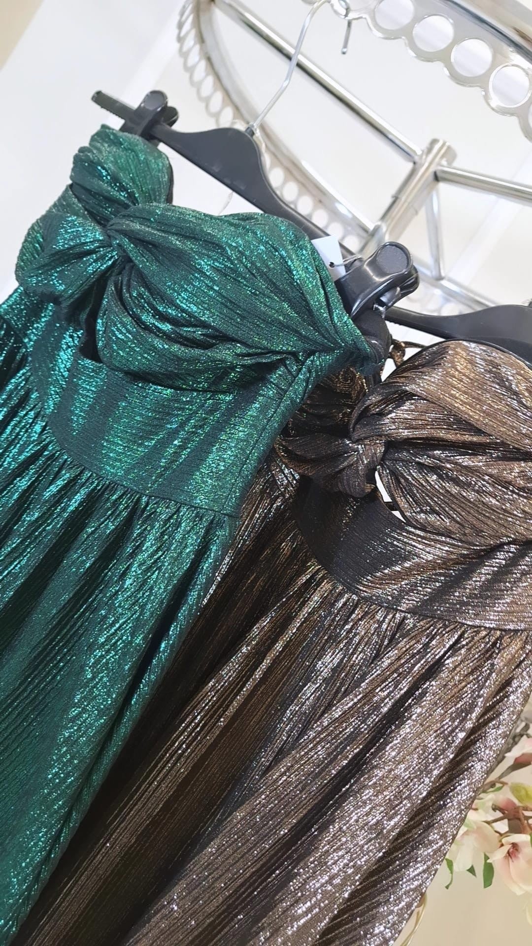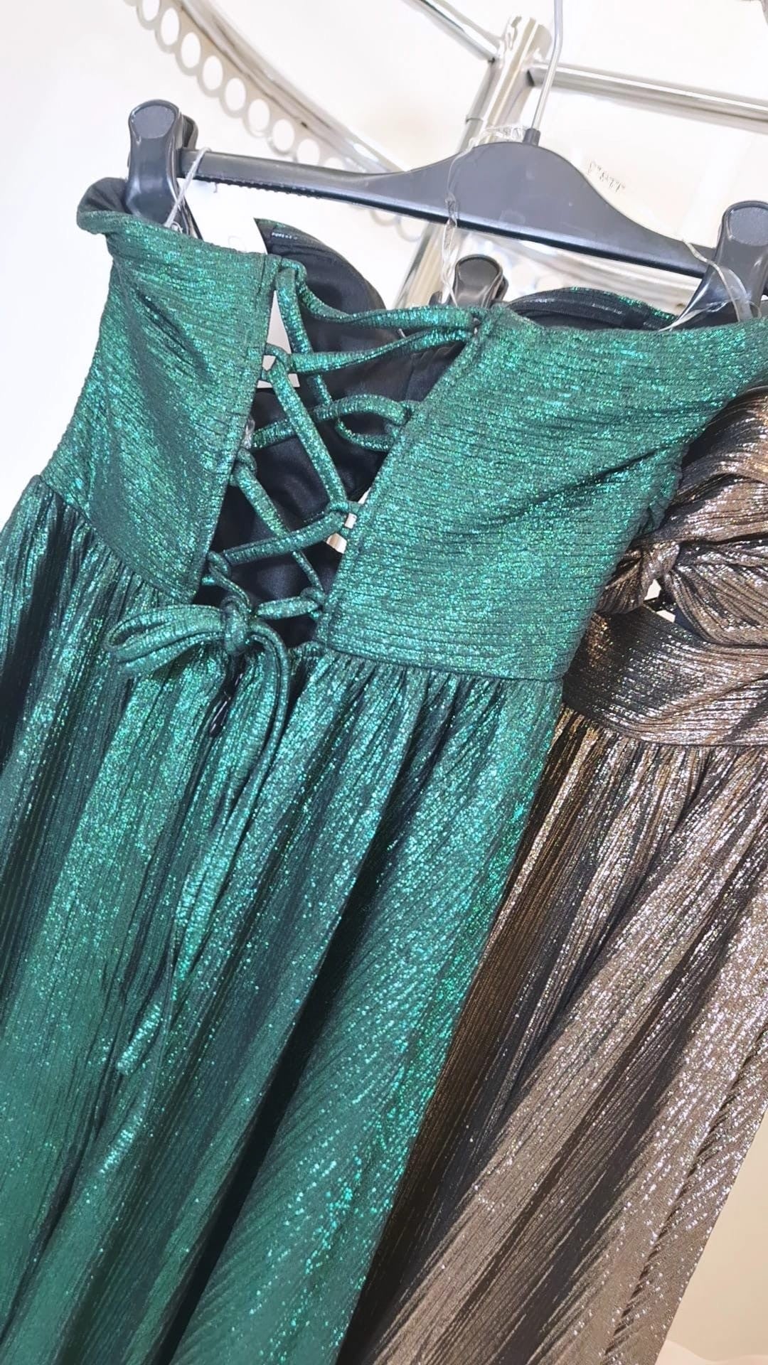 Abito da cerimonia Judith - Abito lungo da cerimonia con spalline applicabili effetto metallizzato e corsetto posteriore