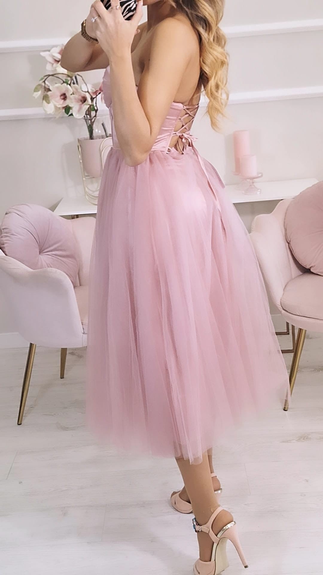 Abito da cerimonia Magda - Abito midi con gonna a ruota in tulle e spalline applicabili
