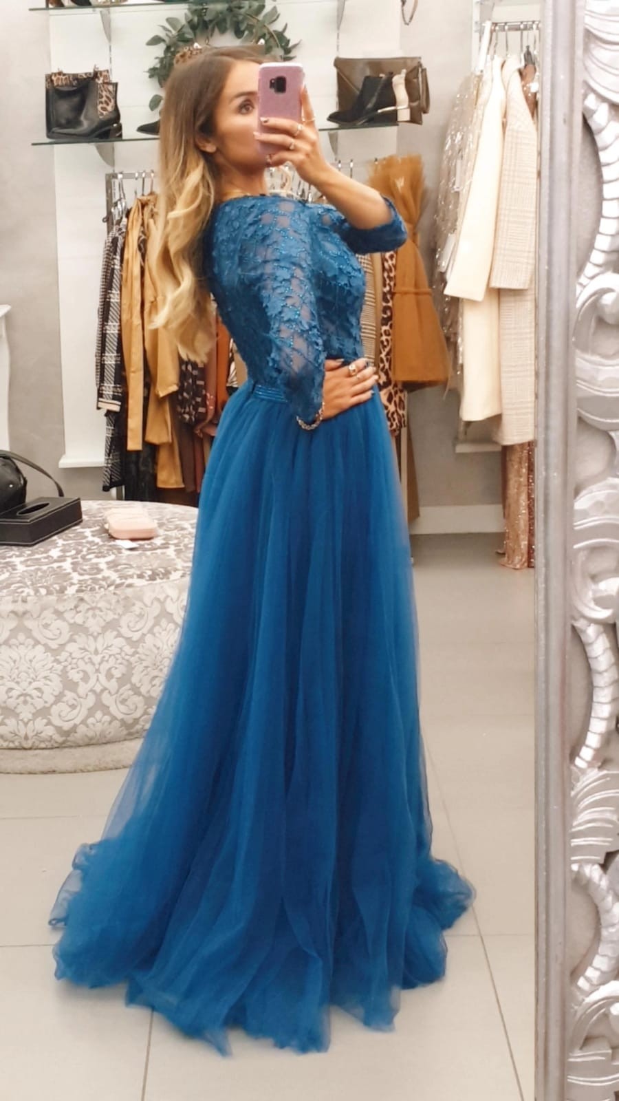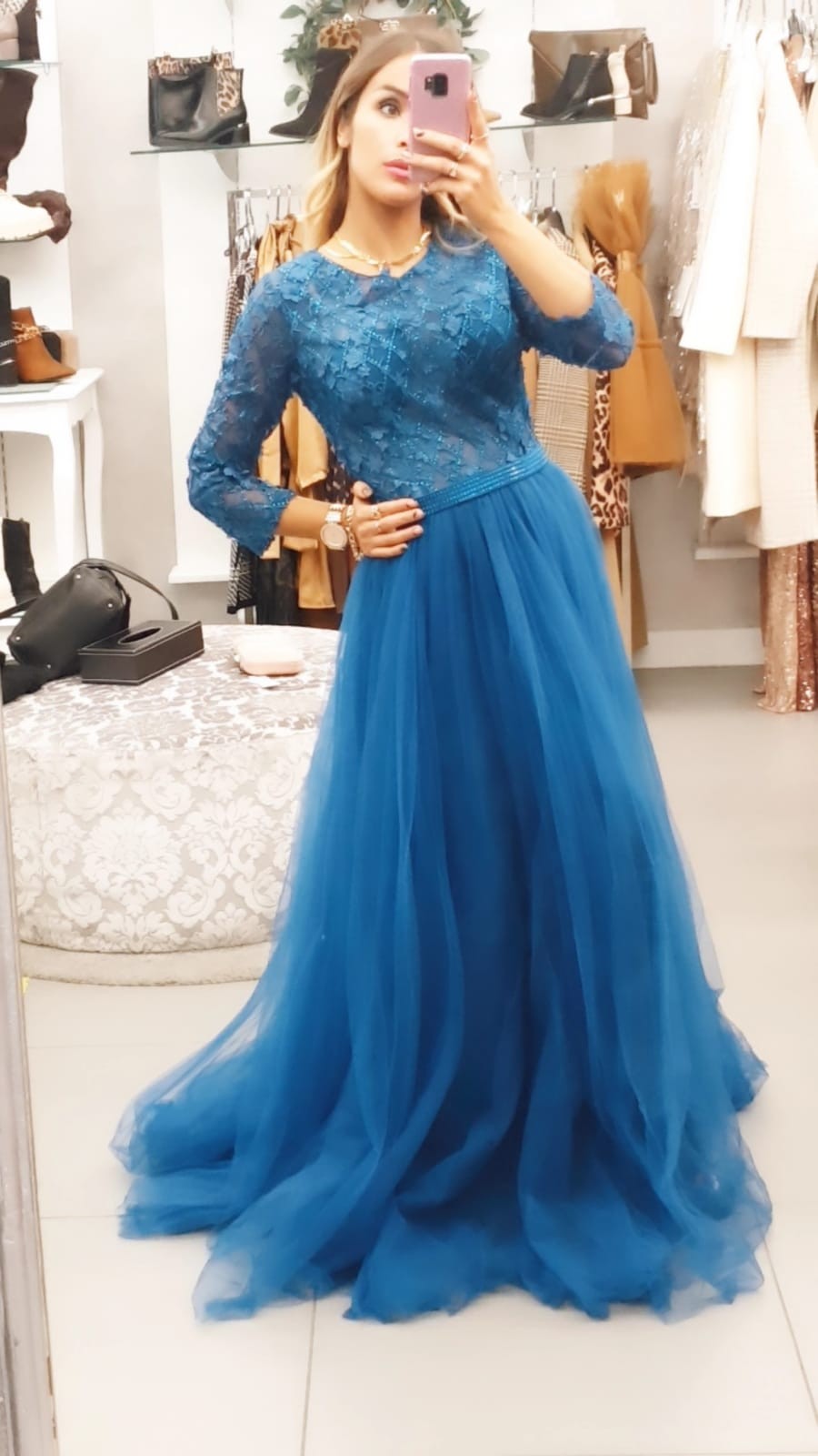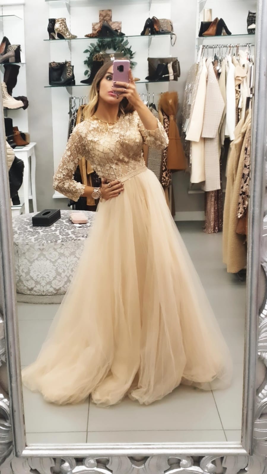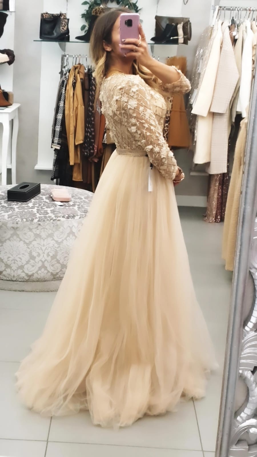 Abito da cerimonia Melody - Abito lungo con gonna in tulle e corsetto con applicazioni floreali