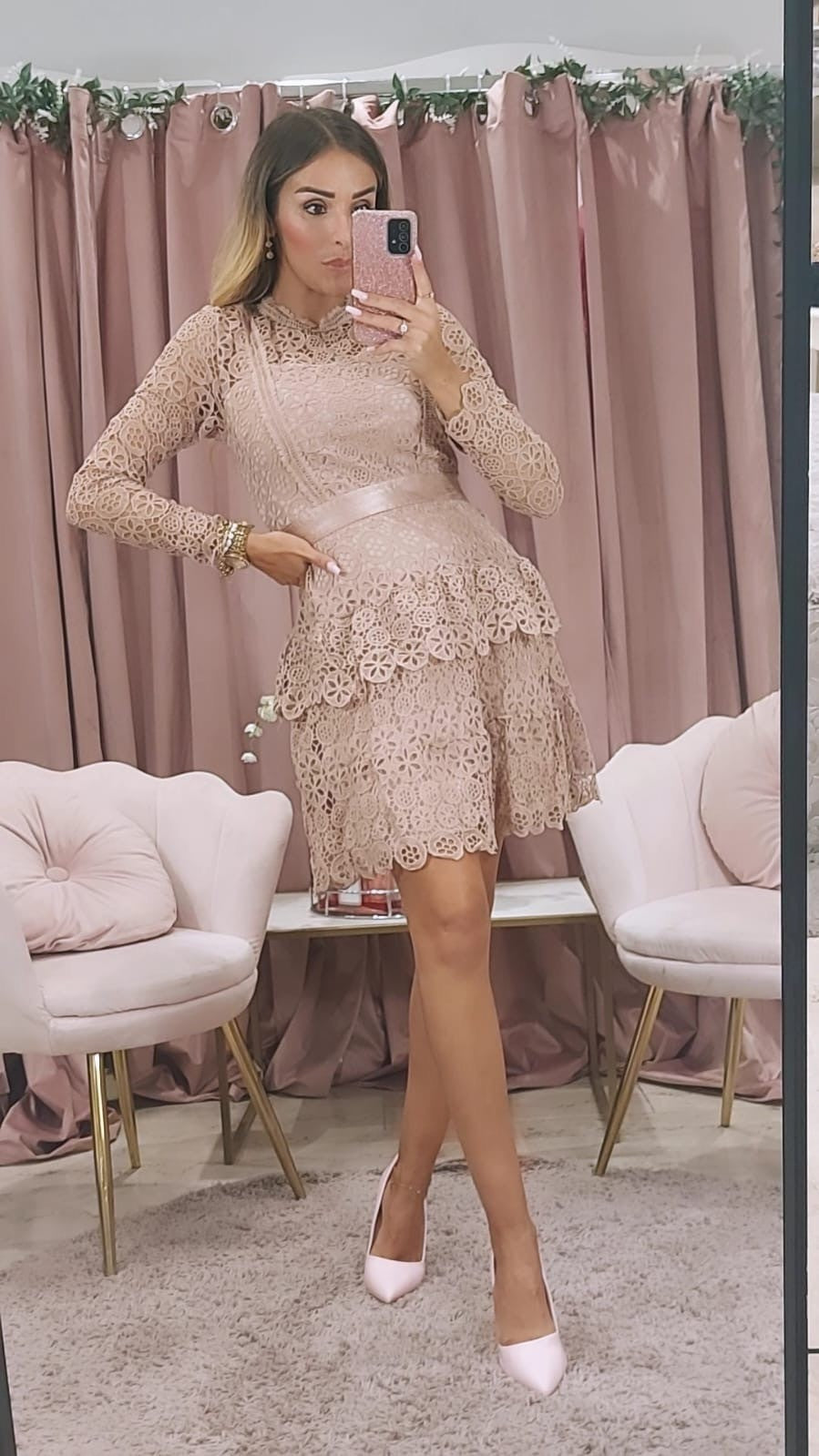 Abito Jessa - Abito in macramè con gonna a balze e cinturino in raso