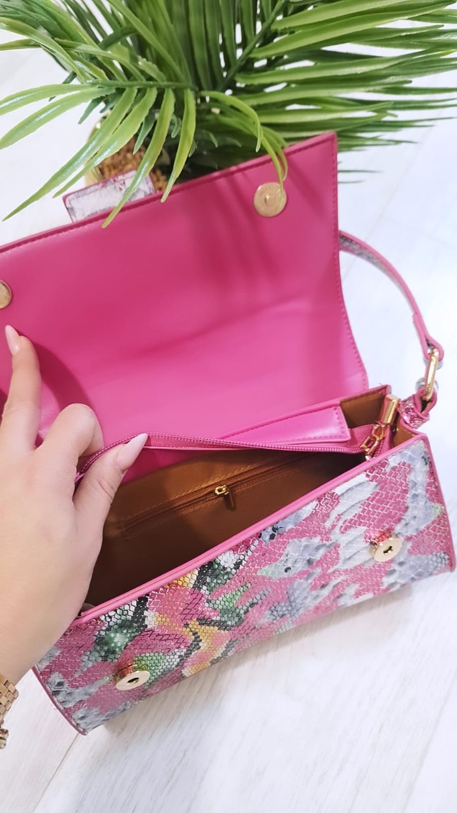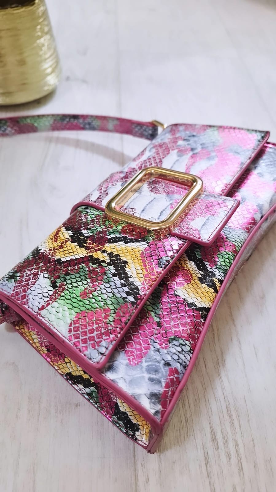 La BagKelly Ashley presenta un elegante effetto pitonato che dona carattere e raffinatezza. Dotata di una tracolla applicabile, offre versatilità nel trasporto, mentre i dettagli dorati arricchiscono il design con un tocco di lusso discreto. Ideale per chi cerca un accessorio distintivo e sofisticato, capace di completare con stile ogni outfit.