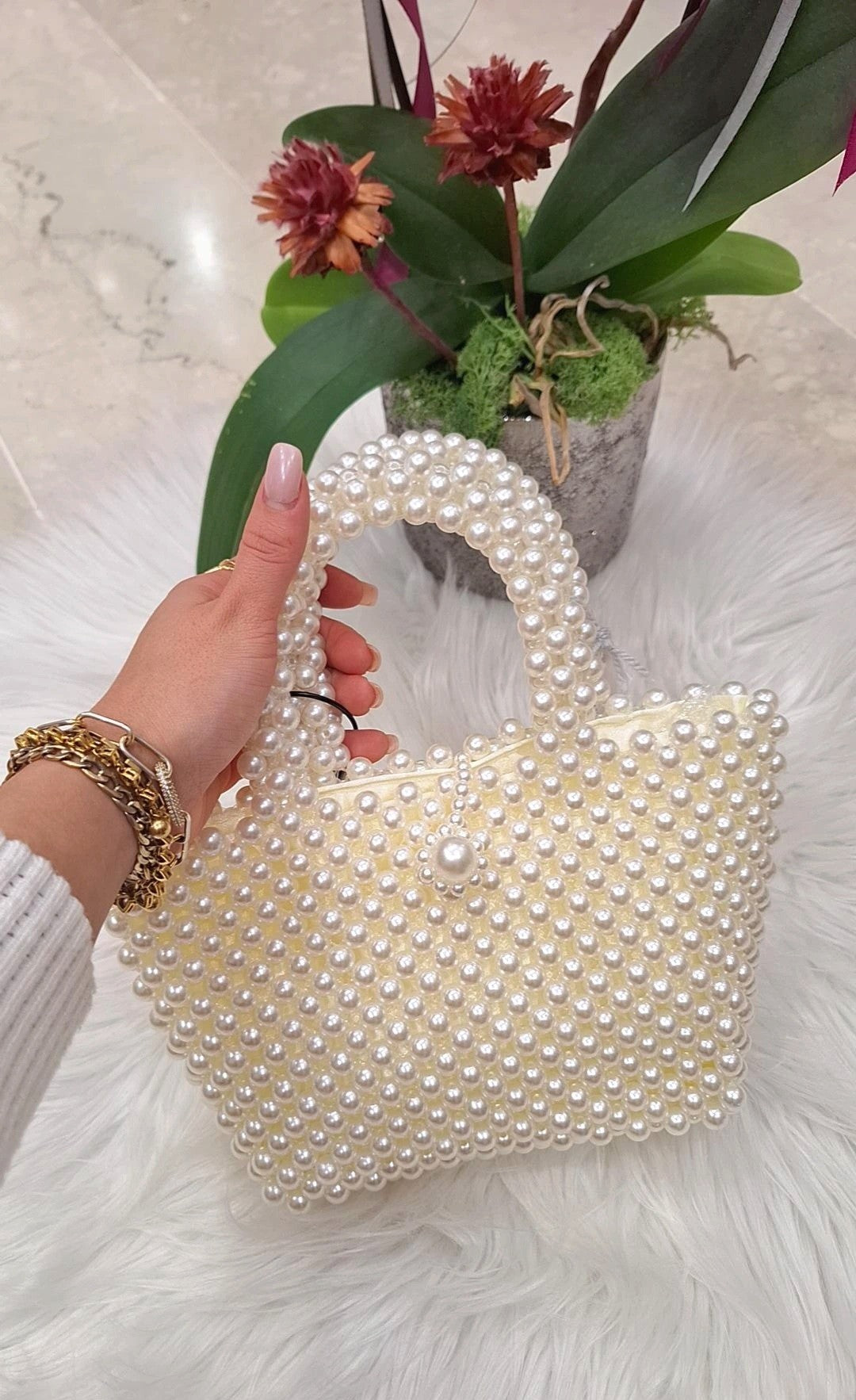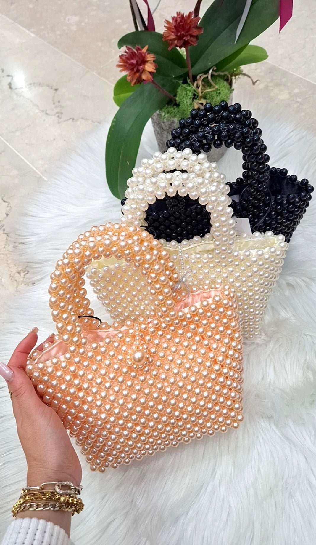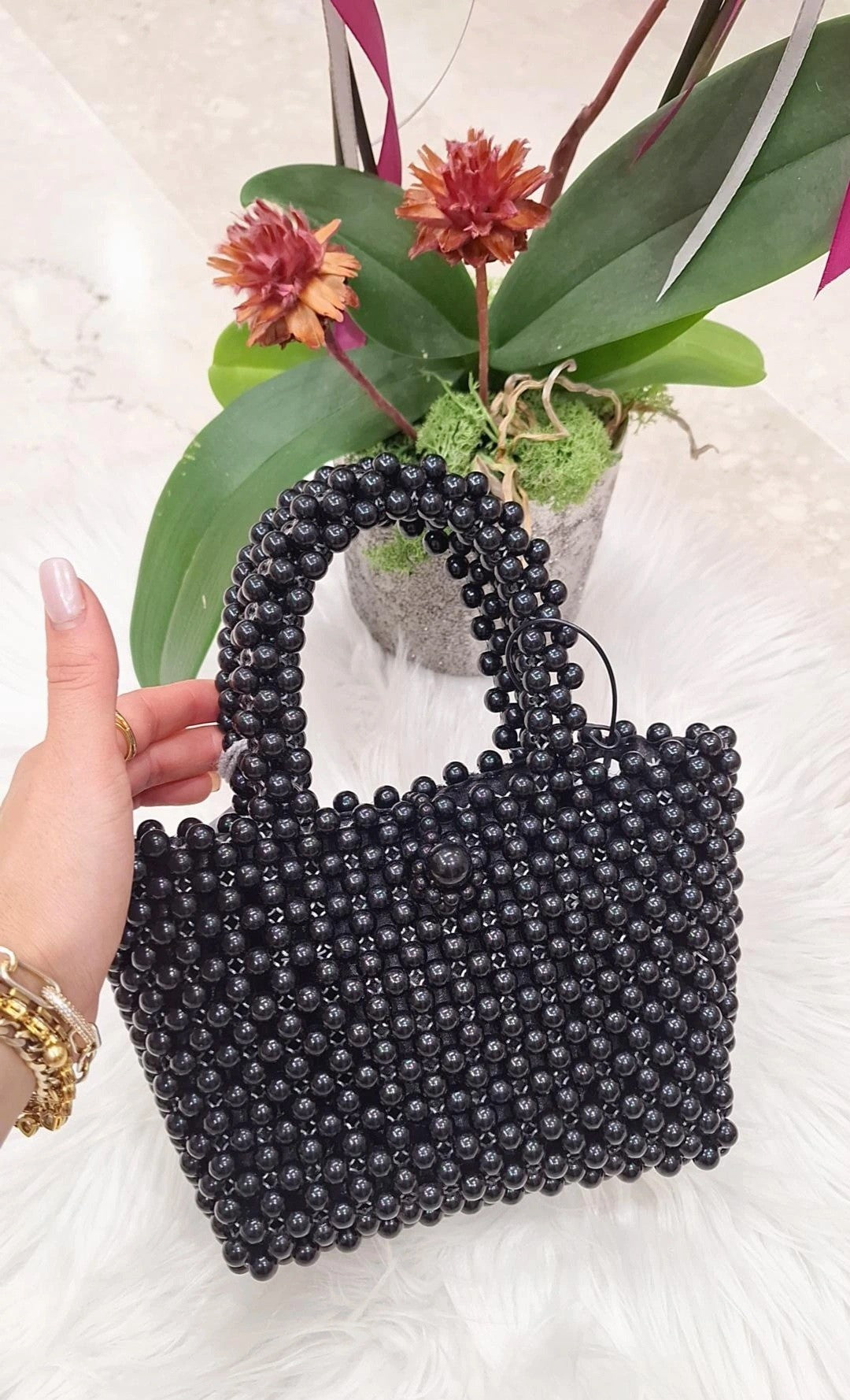 BagKelly Dayani- Borsa in perle con fodera interna, manico e chiusura in perle