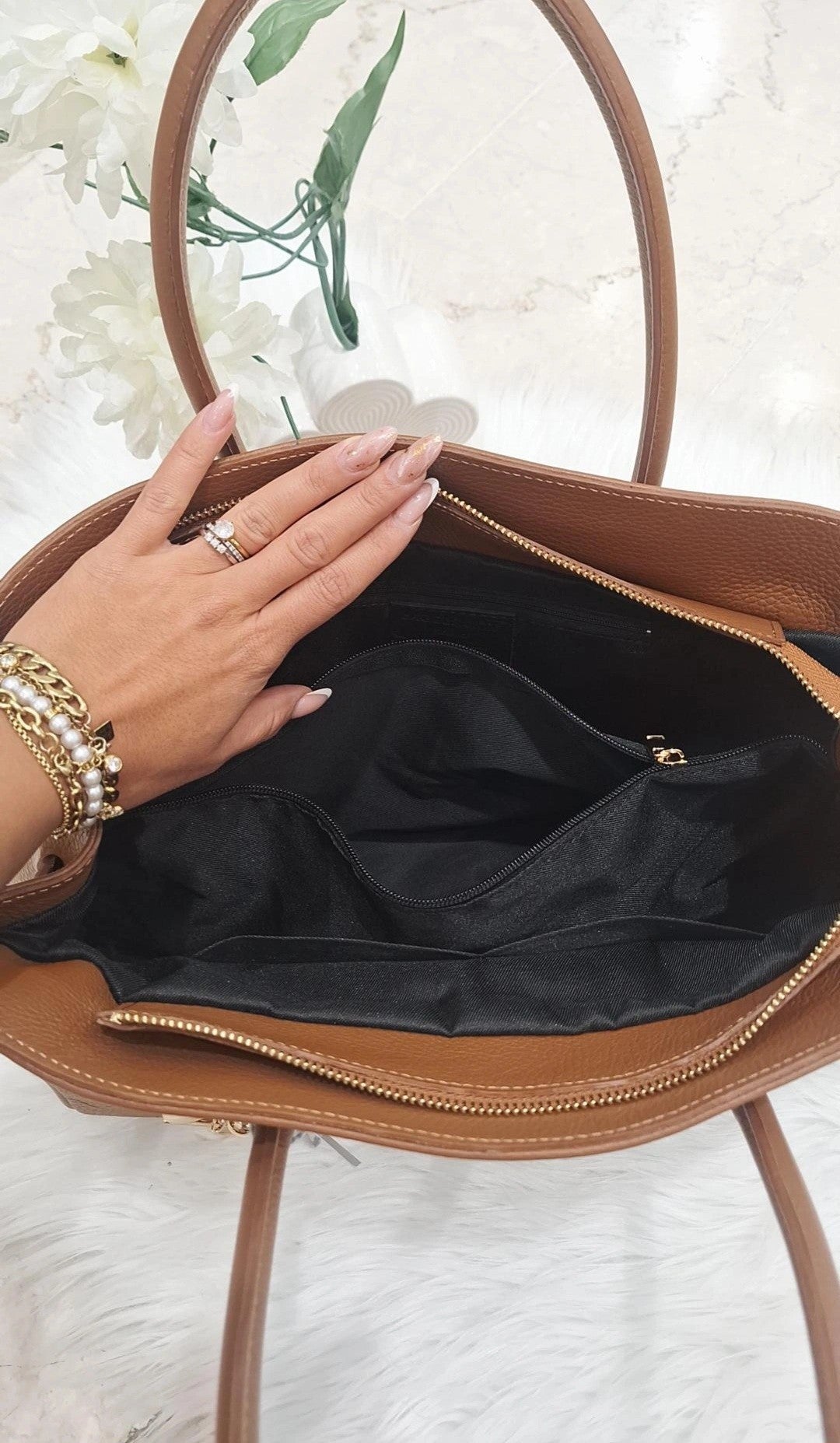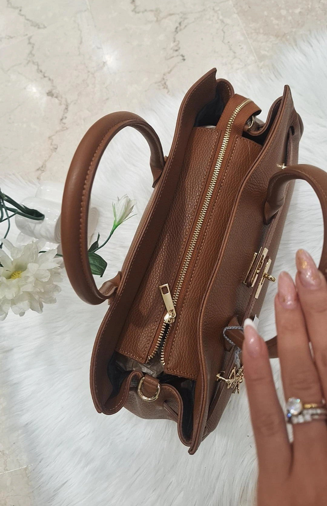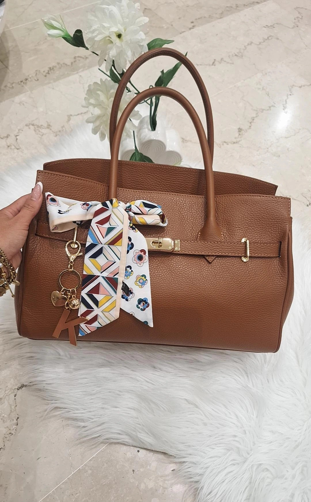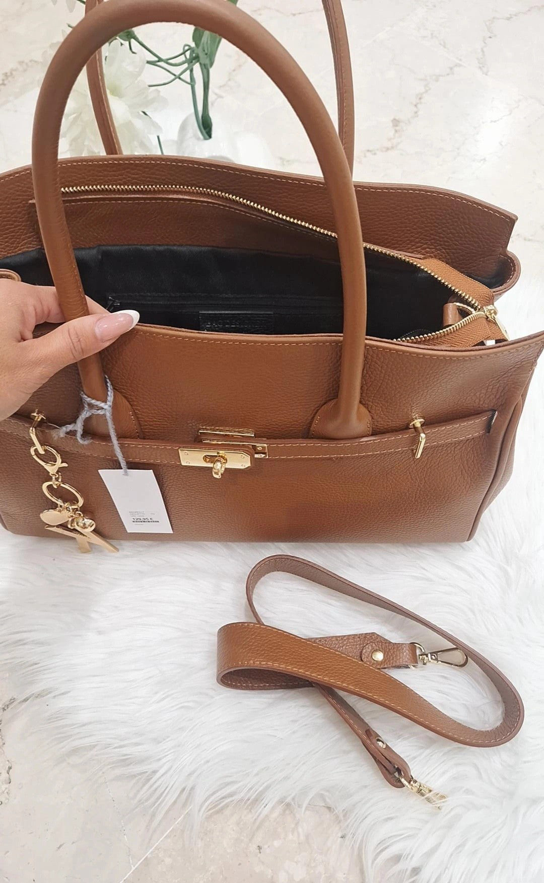 La BagKelly Giuliette è una borsa ampia in pelle di alta qualità, progettata per offrire spazio e stile. Dotata di una pratica cerniera per una chiusura sicura, presenta manici lunghi che garantiscono comfort e facilità di trasporto. I dettagli dorati aggiungono un tocco di eleganza raffinata, rendendola perfetta per chi cerca un accessorio funzionale senza rinunciare al design sofisticato.