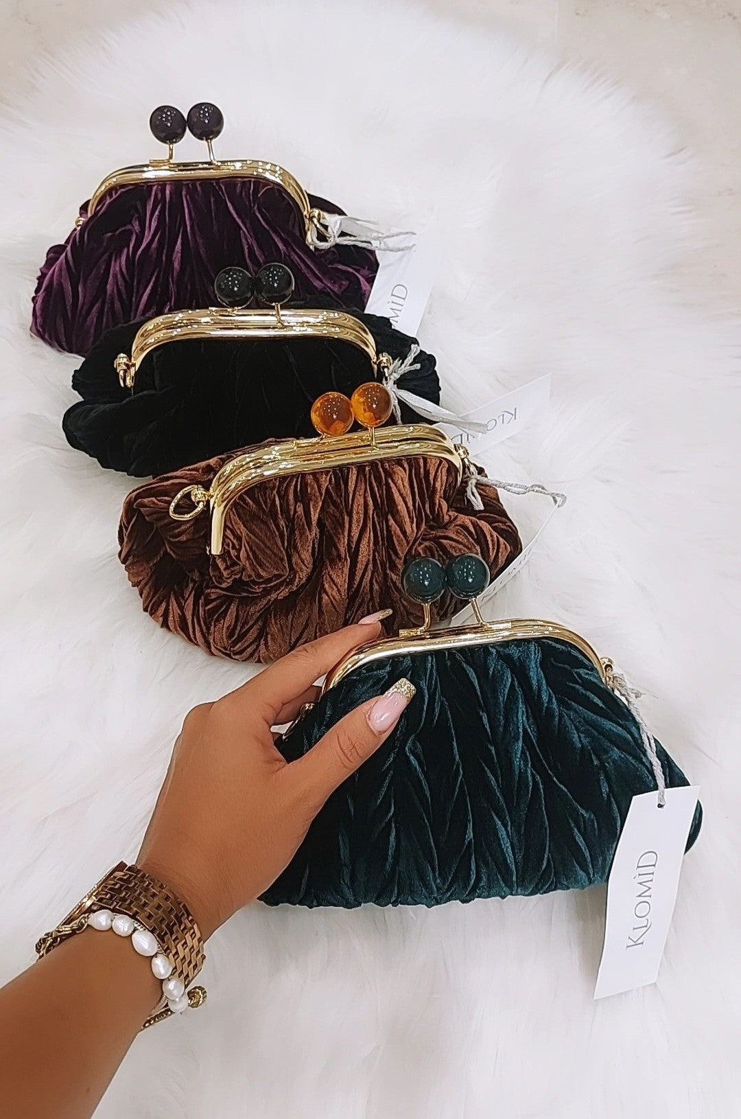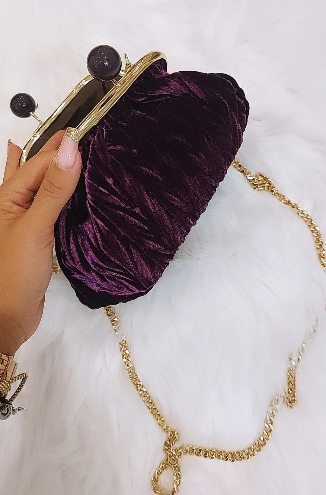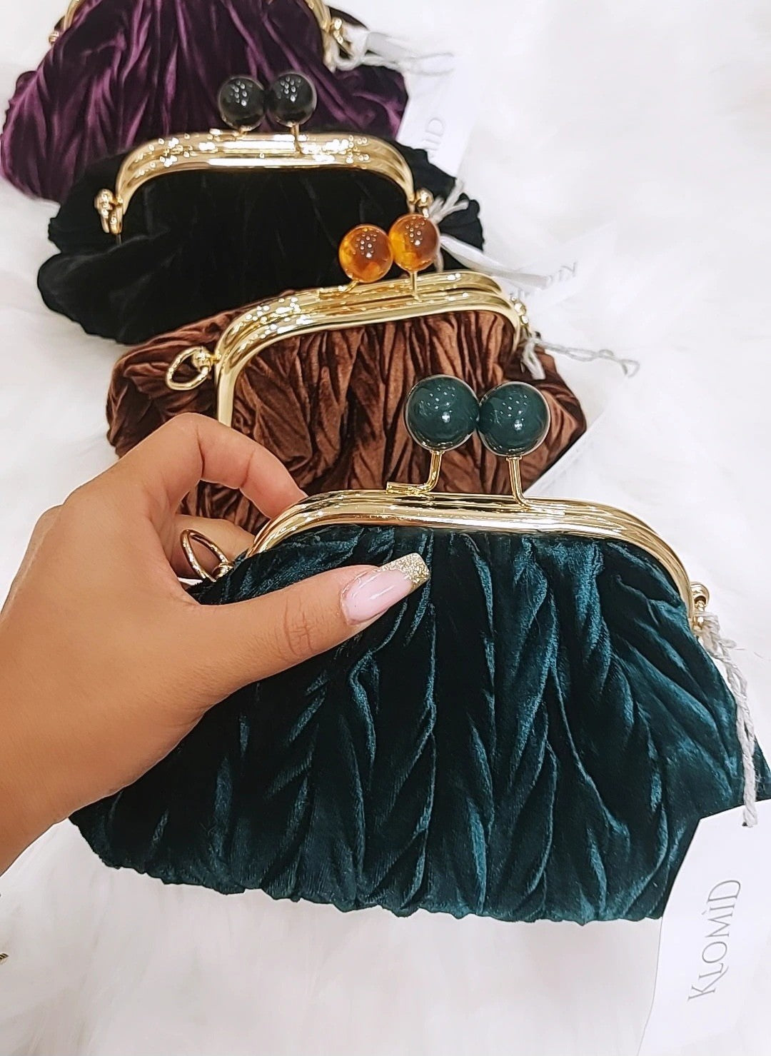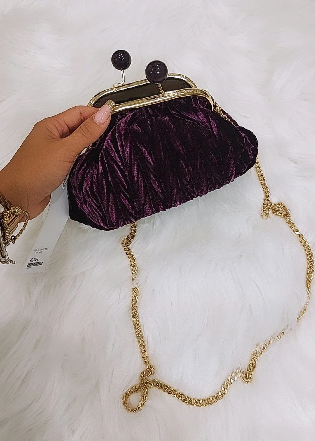 BagKelly Inda- Pochette in velluto con tracolla a catenina