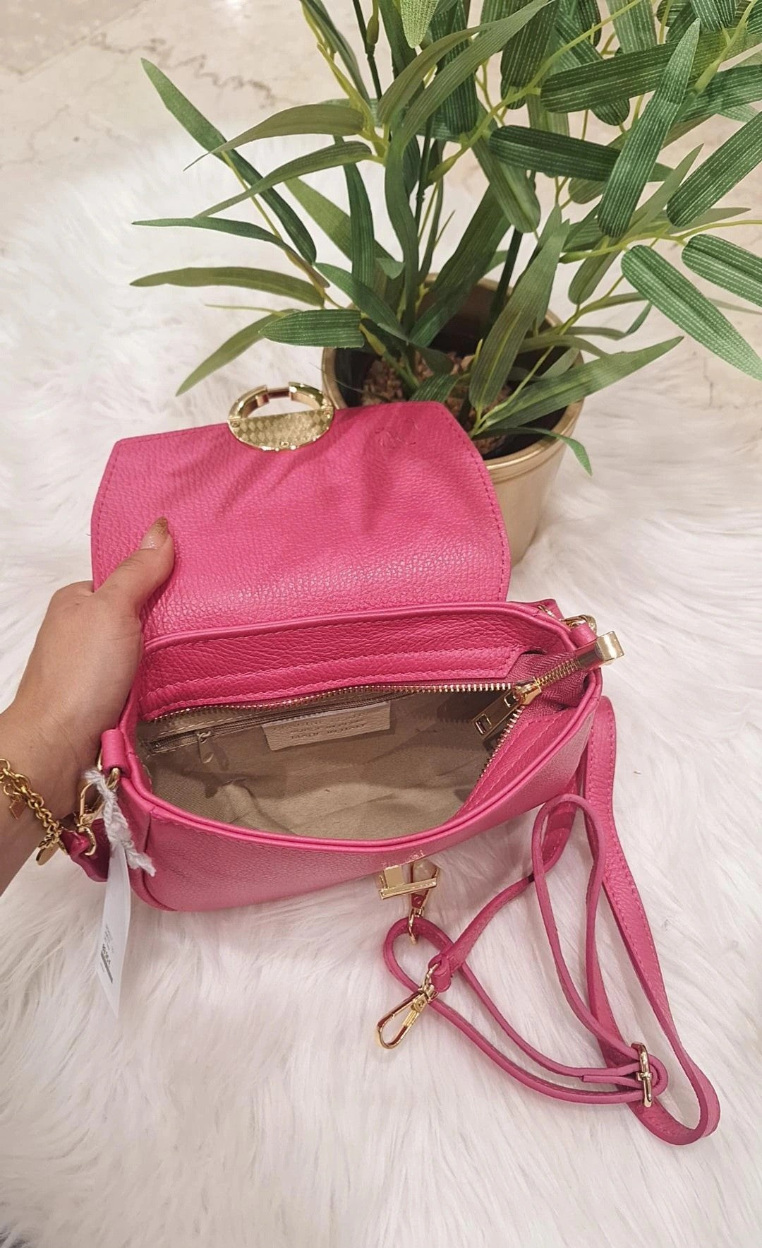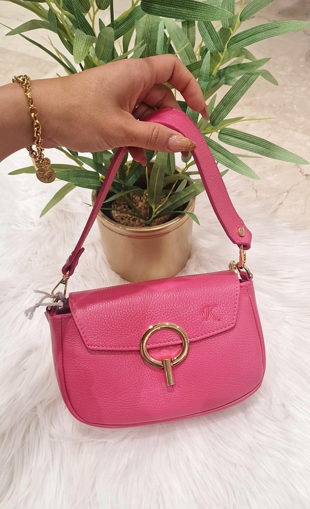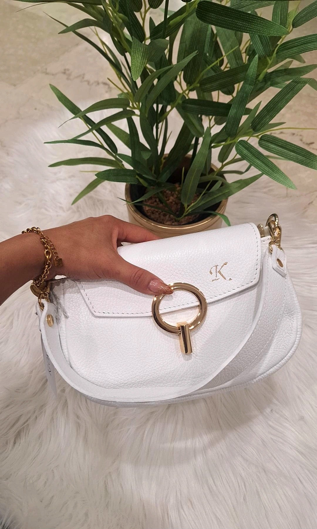 La BagKelly Jamille è una borsa in vera pelle caratterizzata da una fibbia dorata a cerchio che ne valorizza il design elegante. Include una tracolla più lunga applicabile, offrendo versatilità nell’uso e comfort durante il trasporto. Perfetta per chi cerca un accessorio raffinato e funzionale, capace di adattarsi a diverse occasioni con stile.