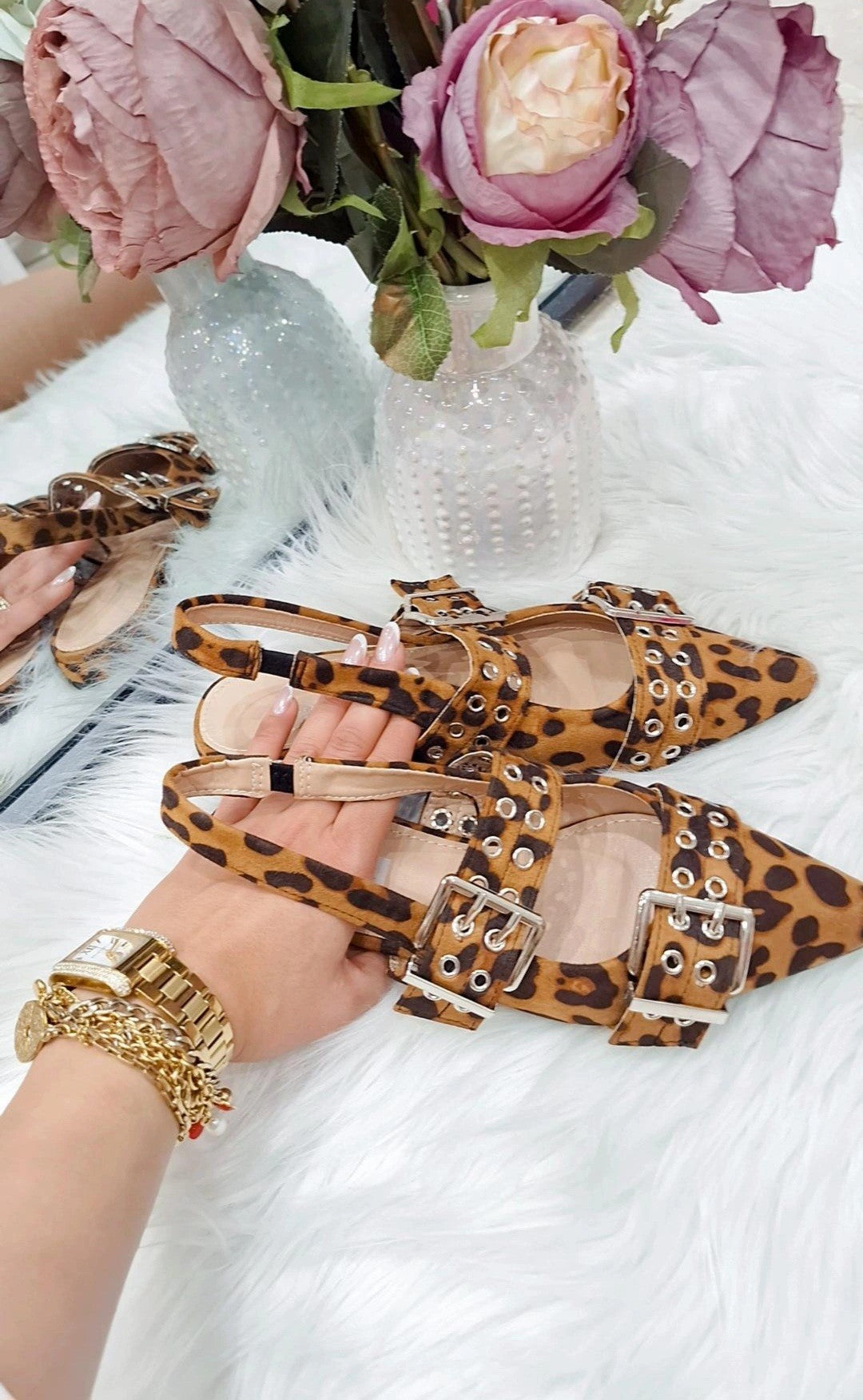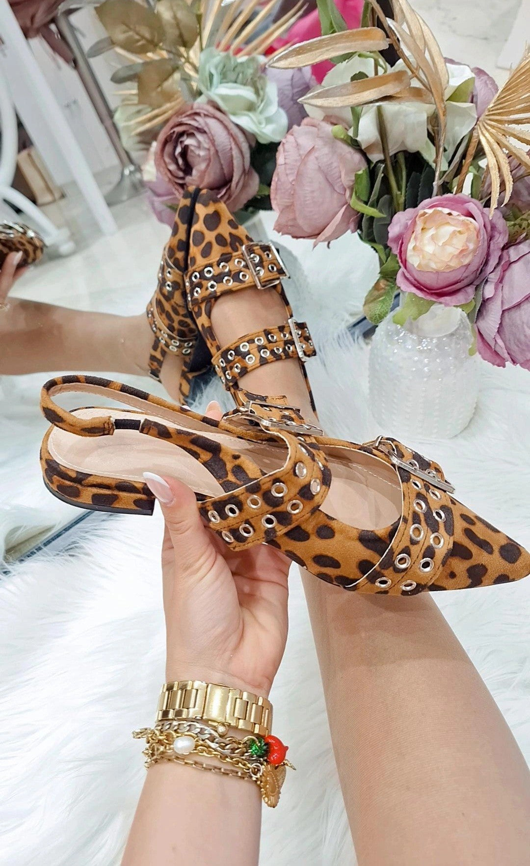 Ballerine Edna - Ballerine a punta aperte dietro con doppia fibbia anteriore