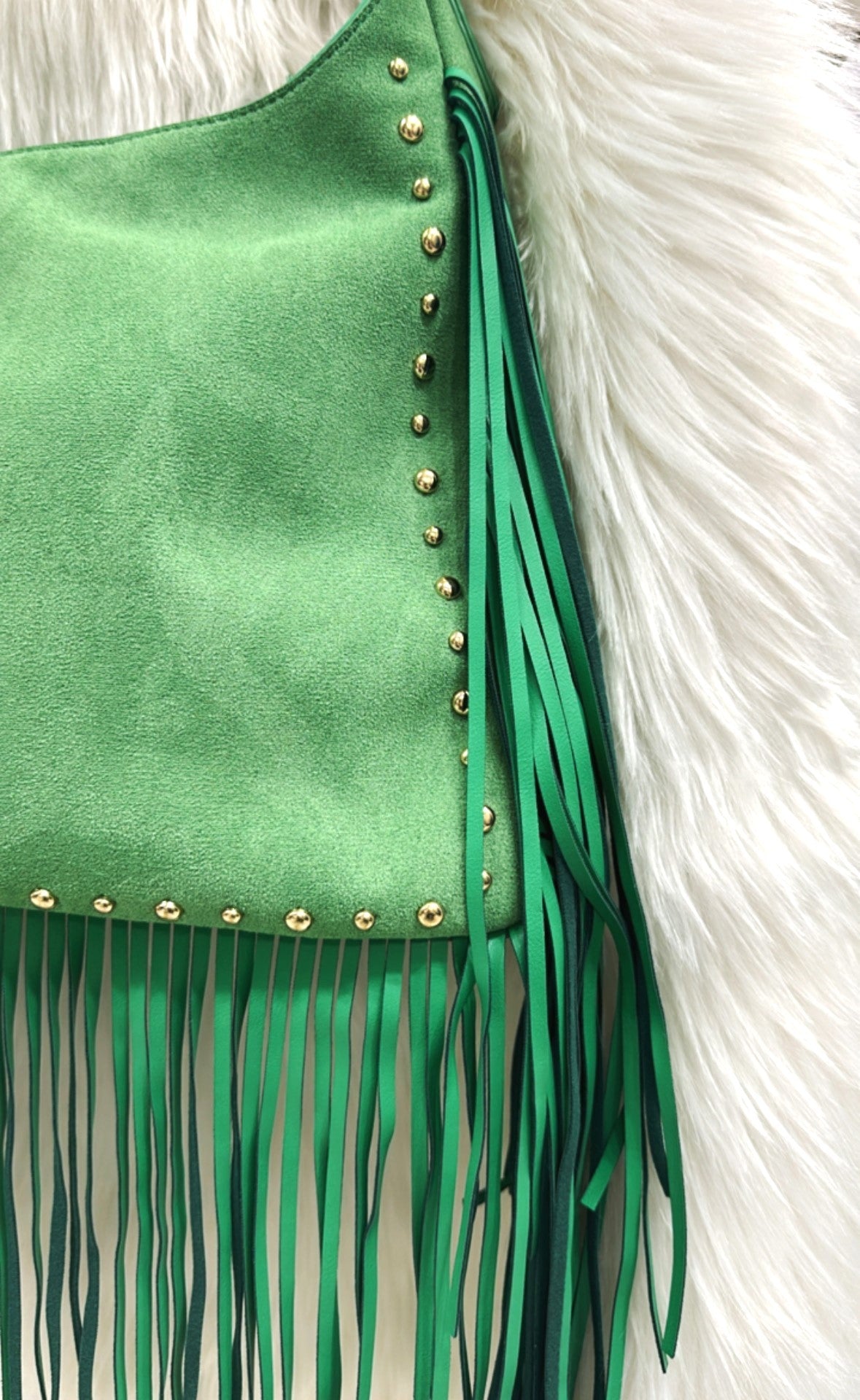 Borsa Calla - Borsa scamosciata con frange e borchie dorate