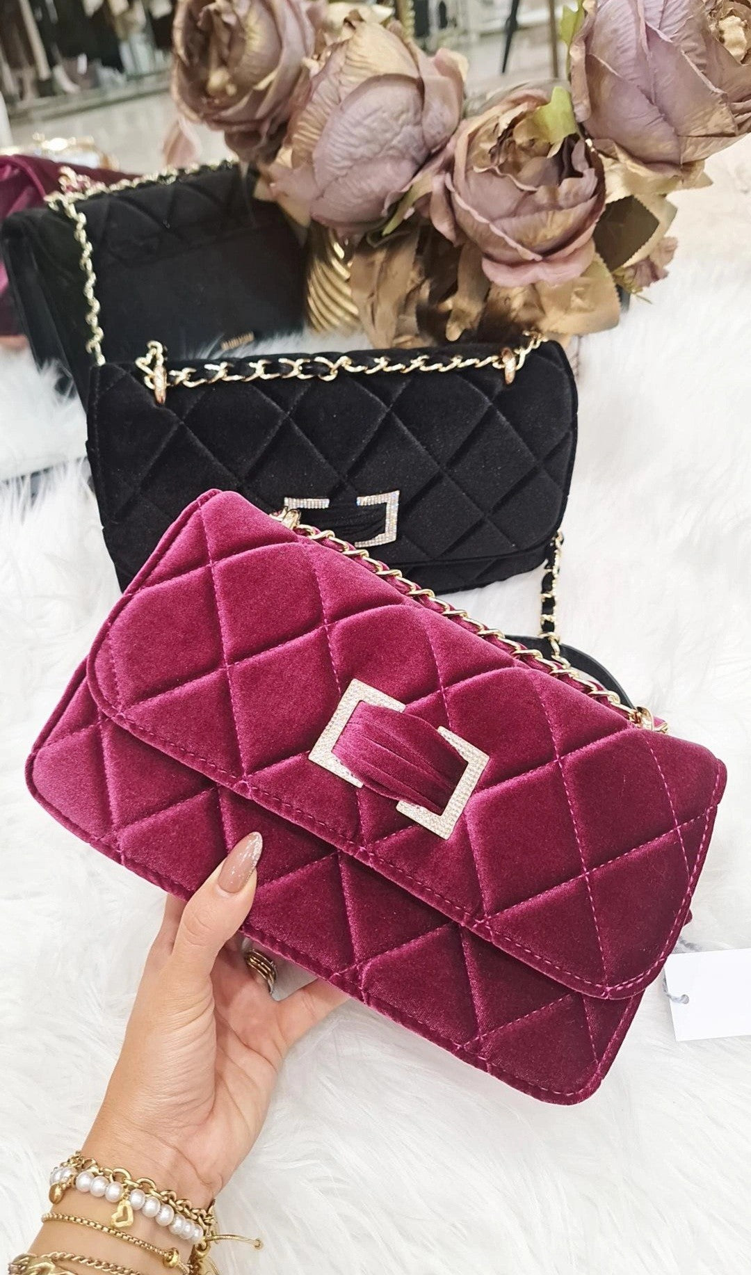 Borsa Jasmin-borsa vellutata con fibbia metallica dorata brillantinata