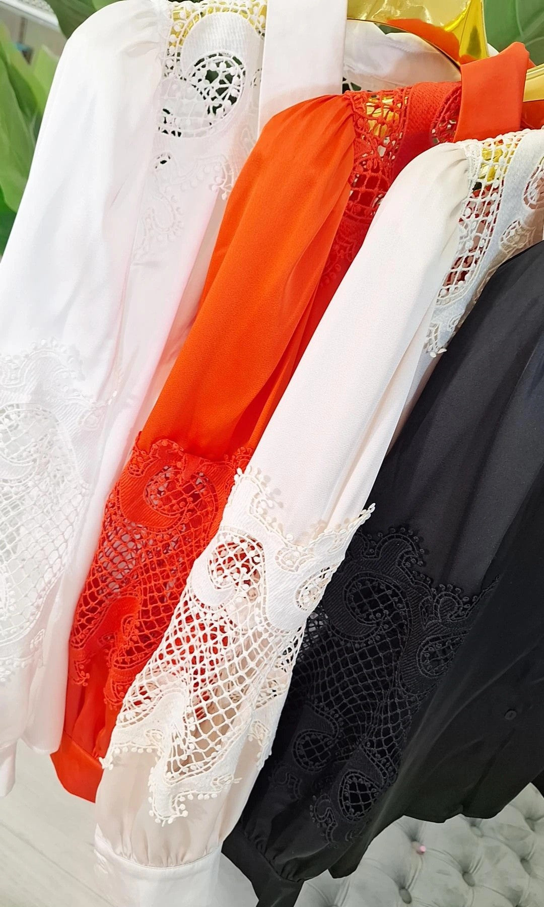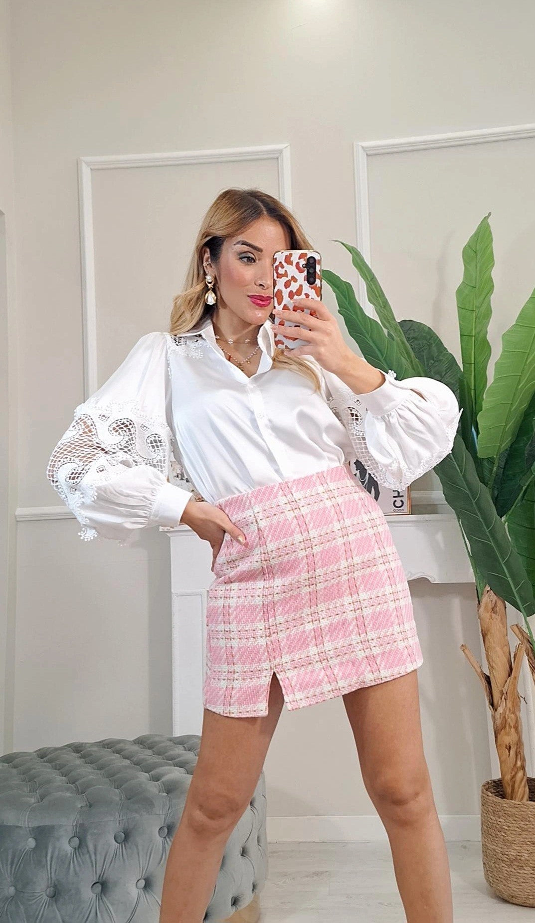 Camicia Lory-camicia in raso con inserti in pizzo .