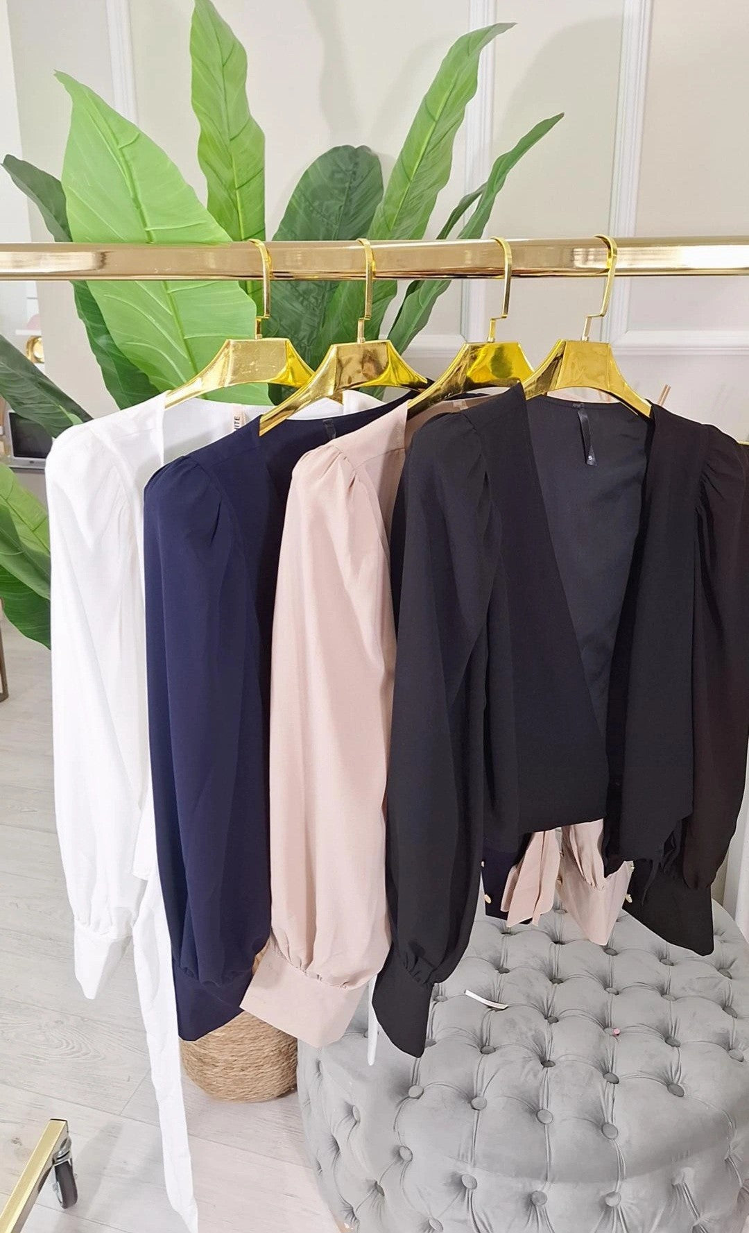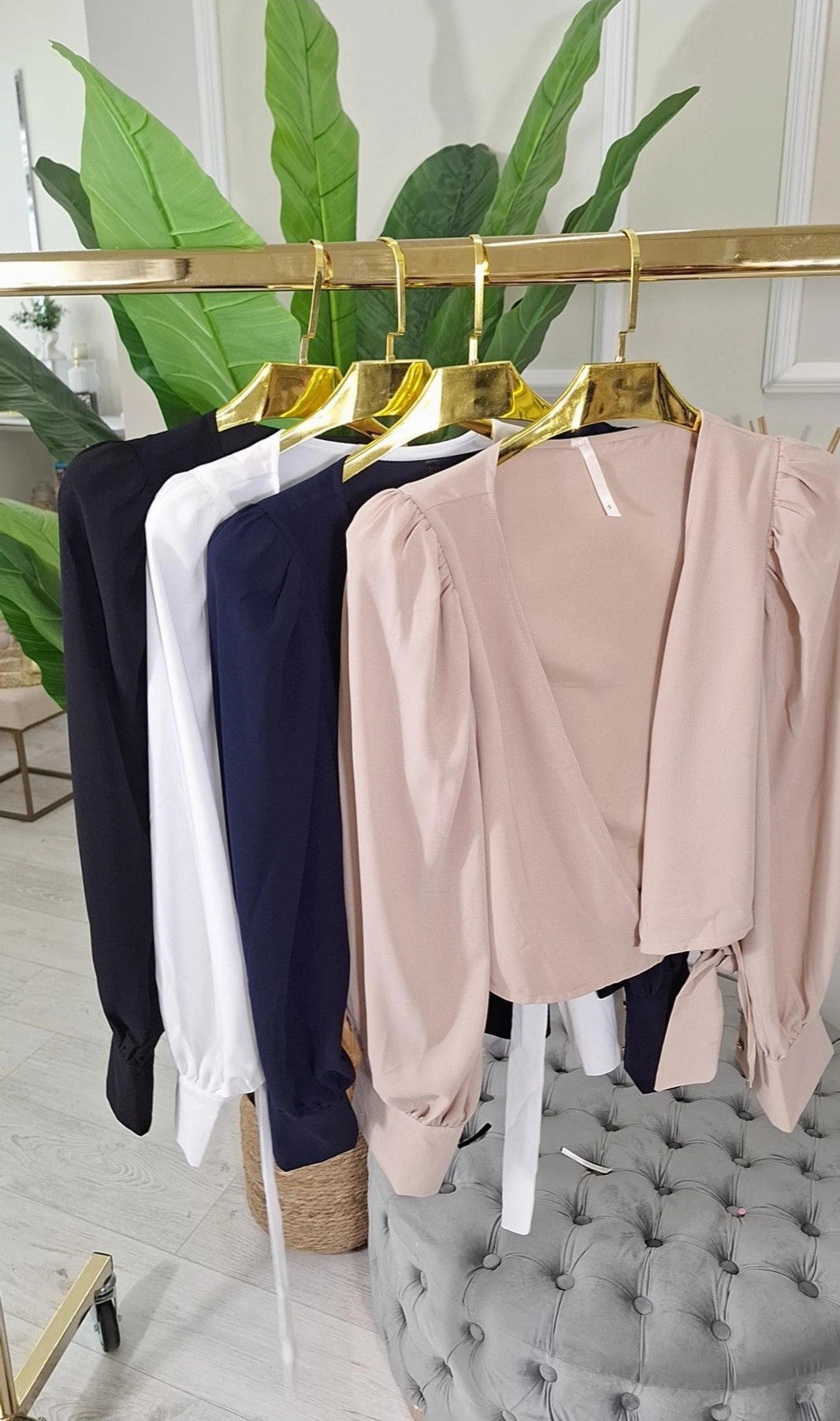 Coprispalle Zoe-coprispalle incrociato con scollo a v e manica leggermente a sbuffo.