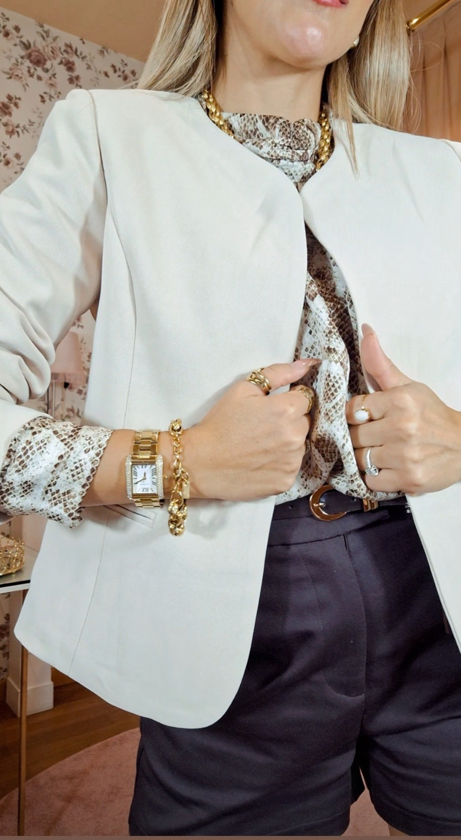 Questa giacca elegante, denominata Giacca Alba, si distingue per il raffinato dettaglio di una spilla con una perla , che aggiunge un tocco di classe e sofisticatezza. Perfetta per occasioni formali o per arricchire un outfit professionale, combina stile e eleganza in modo discreto ma incisivo.