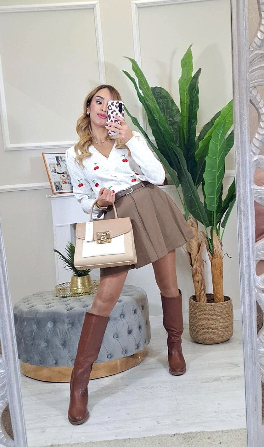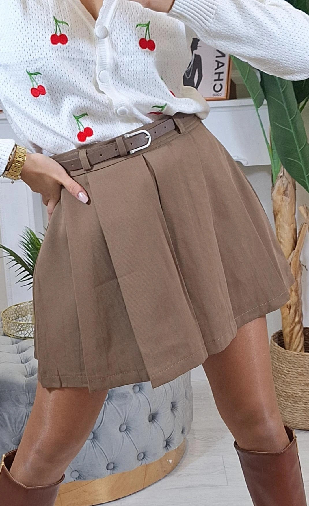 Gonna Jana - Gonna a pieghe con cinturina in vita. Fodera interna a pantaloncino.