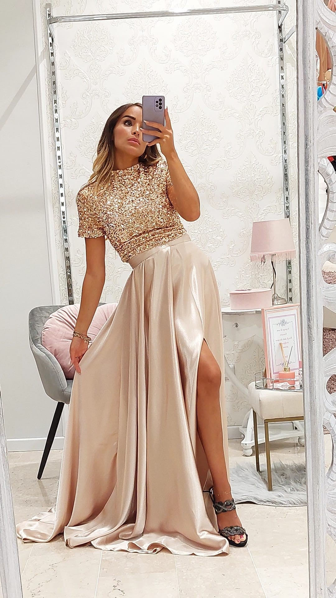 Gonna Vittoria - Gonna lunga in raso con spacco