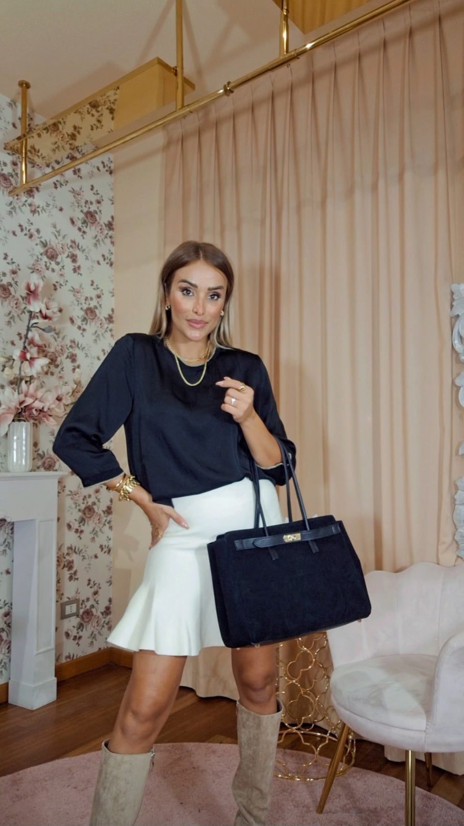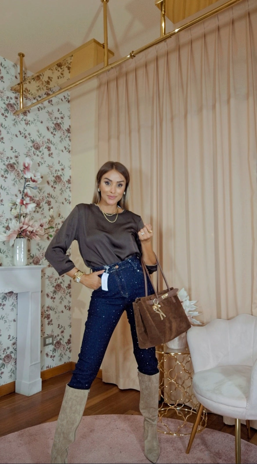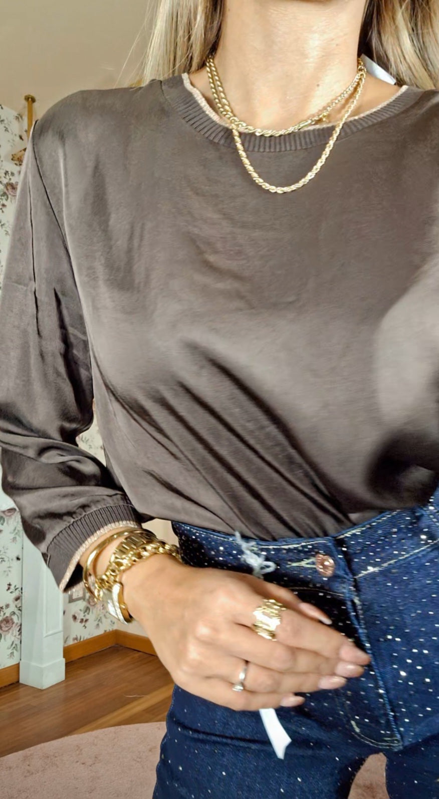 Maglia Liv è una maglia a maniche tre quarti che unisce eleganza e comfort. Realizzata con un effetto semi lucido, valorizza ogni look con una raffinata lucentezza discreta. Il colletto elasticizzato, arricchito da un filato dorato, conferisce un tocco sofisticato e una vestibilità adattabile, ideale per chi cerca stile e praticità in un unico capo. Perfetta da indossare in occasioni casual-chic o in ambienti di lavoro.