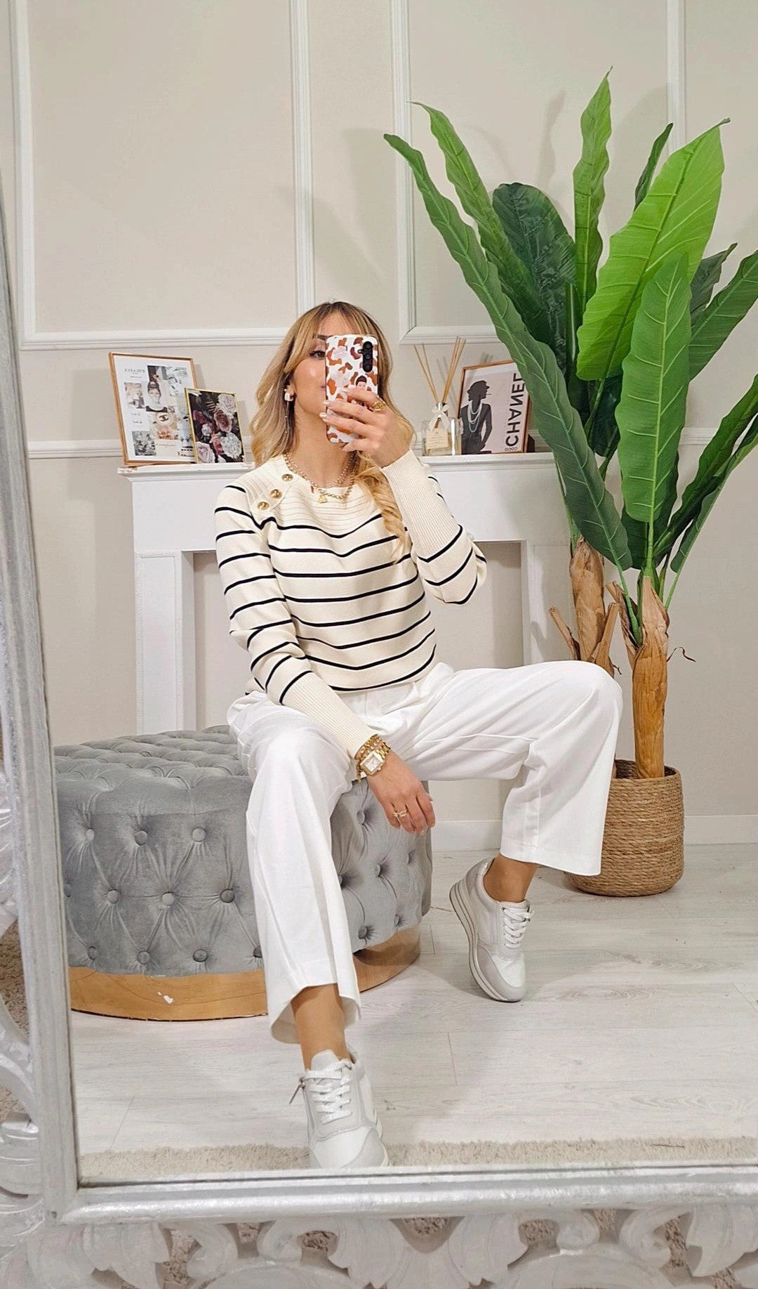 Maglione Raissa- Maglione a righe con bottoni laterali applicati.