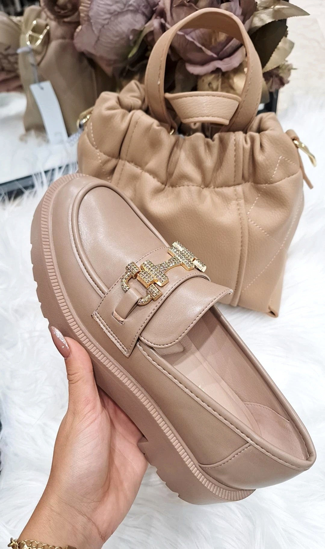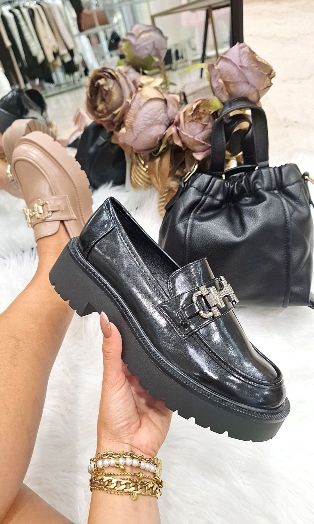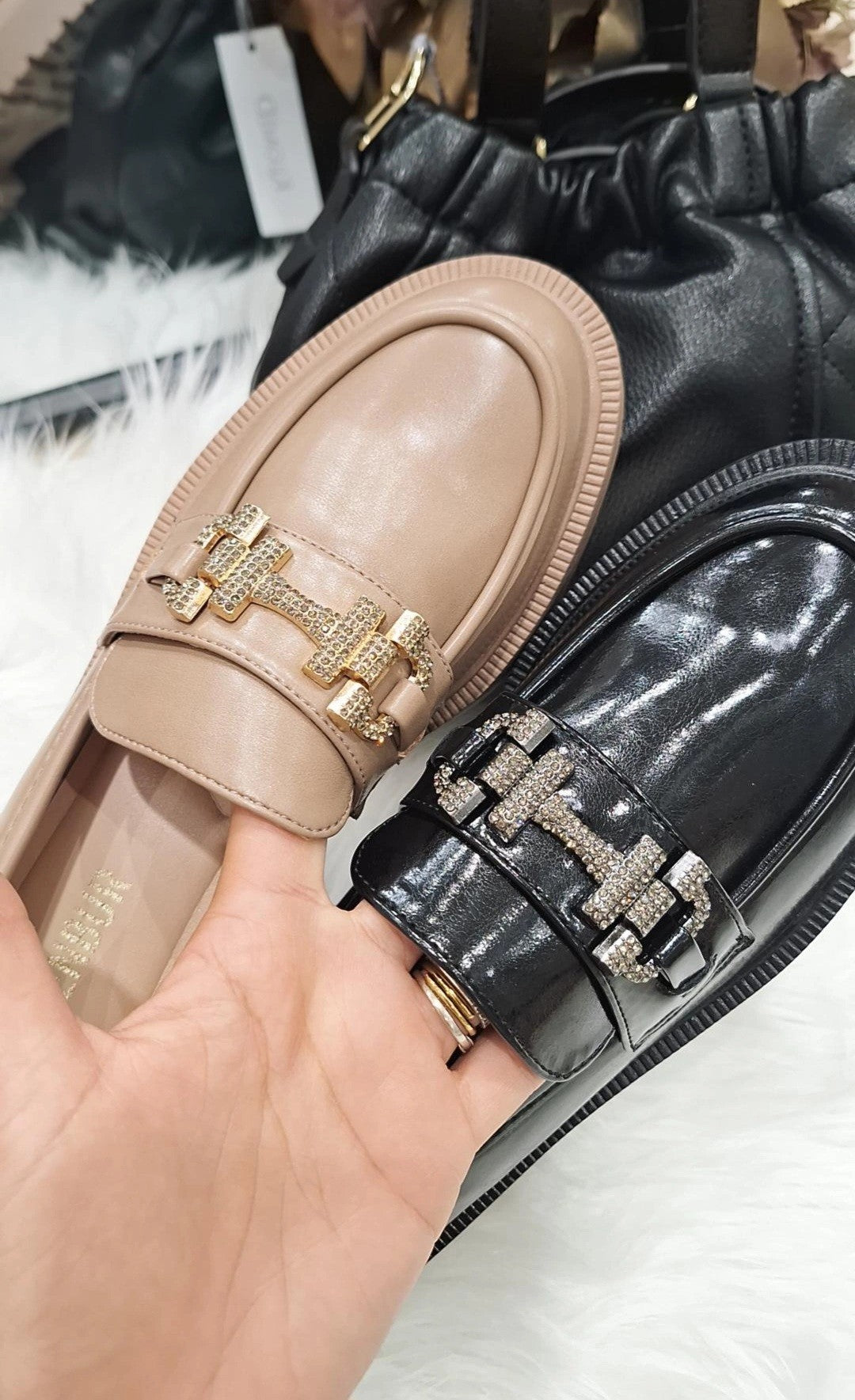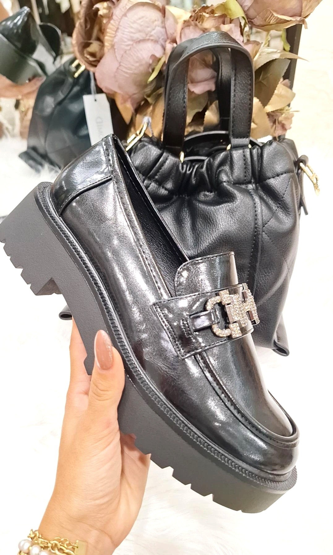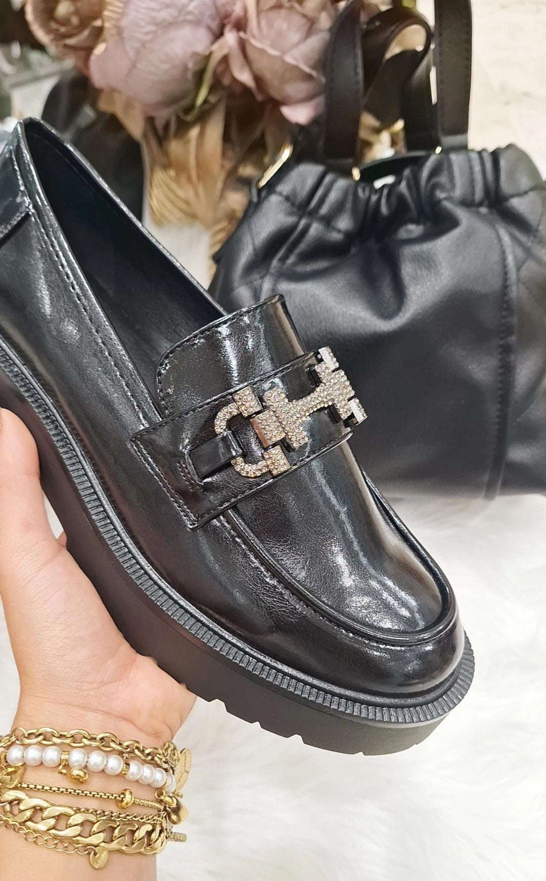 Mocassini Monika-mocassini in ecopelle con fibbia metallica brillantinata