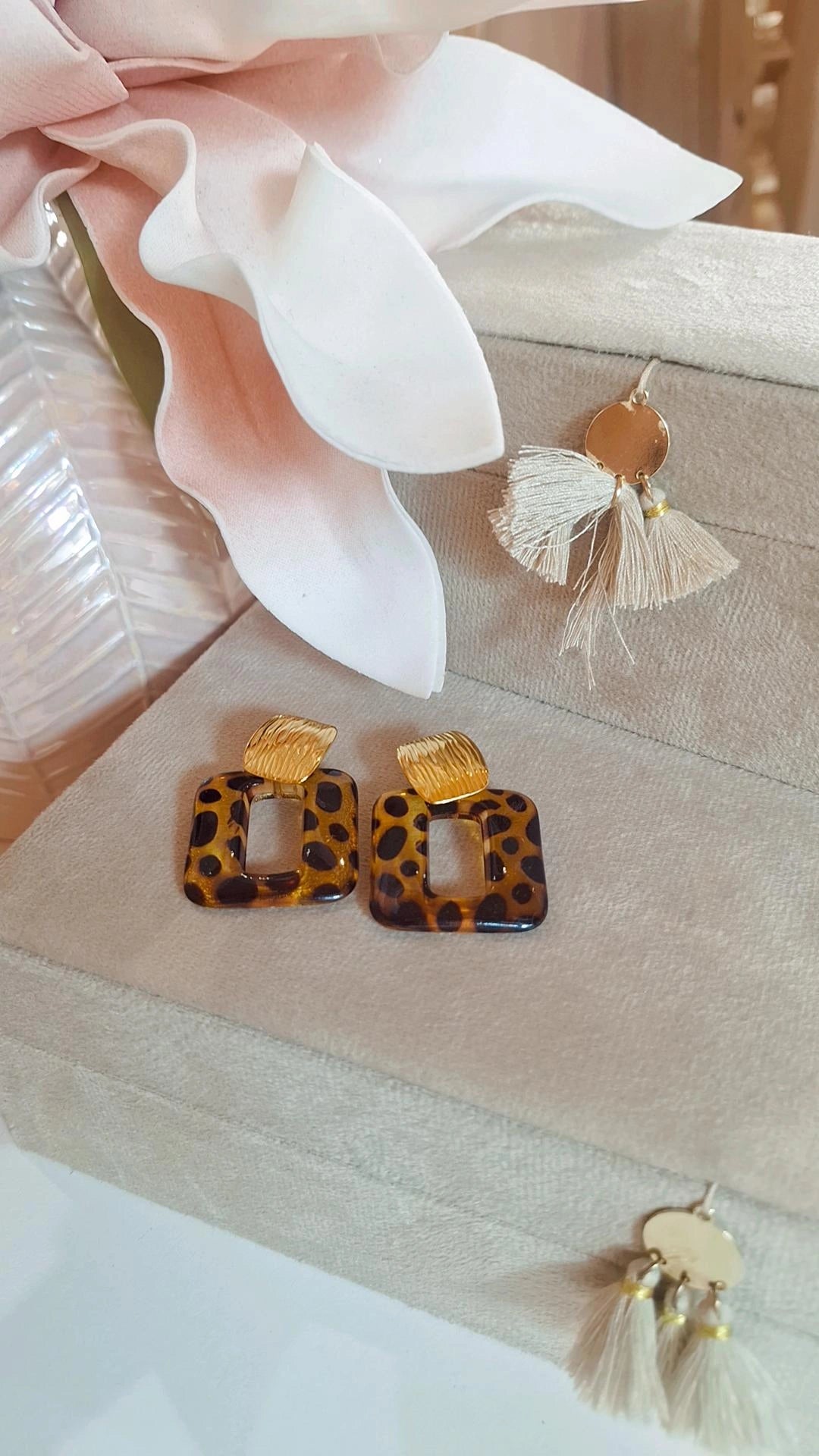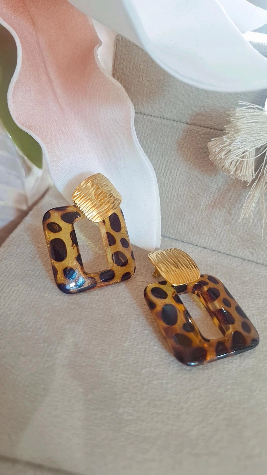 Gli orecchini Anissa combinano eleganza e stile contemporaneo con un design raffinato: il bottone dorato lavorato a onde dona un tocco sofisticato, mentre il pendente rettangolare con motivo maculato aggiunge un elemento distintivo e moderno. Perfetti per chi cerca un accessorio versatile che valorizzi ogni look, dal più elegante al più grintoso.