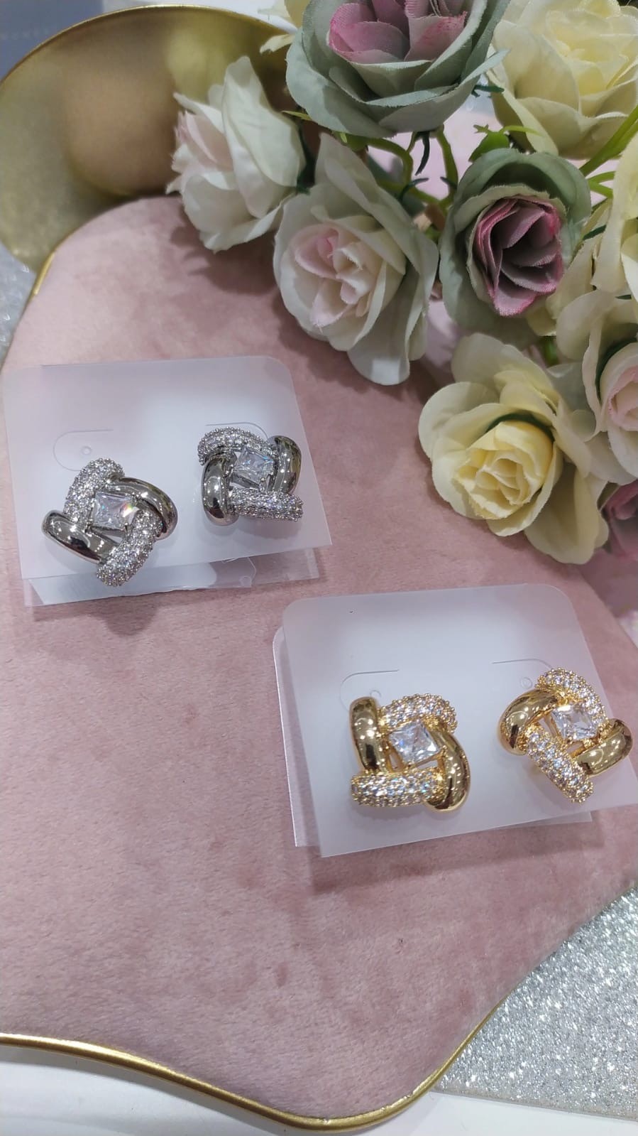 Orecchini Charm - Orecchini quadrati con strass e pietra centrale