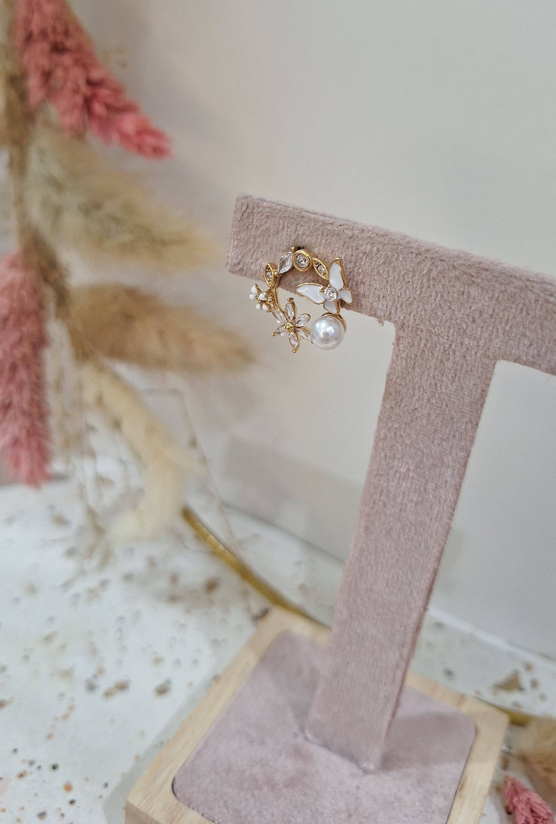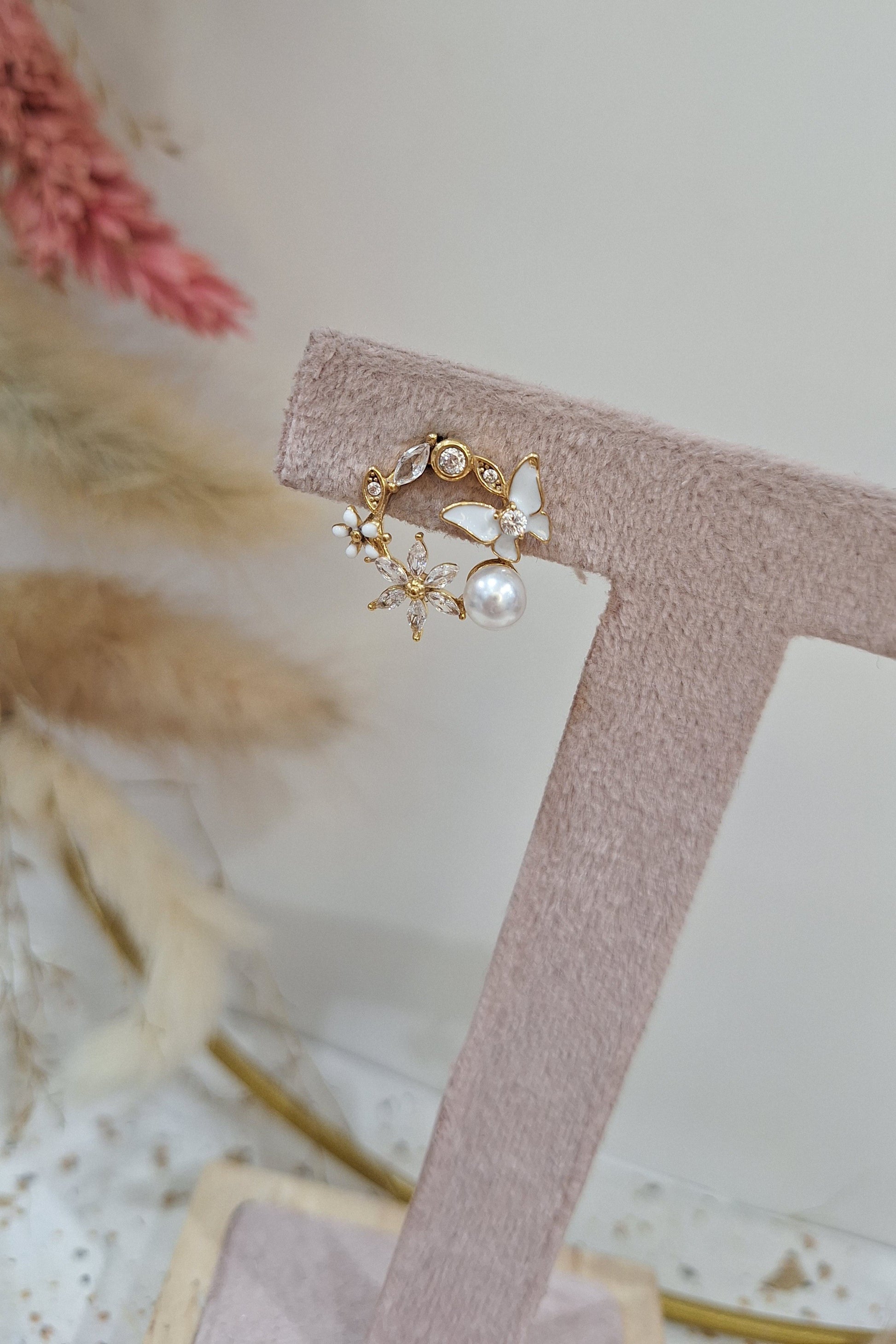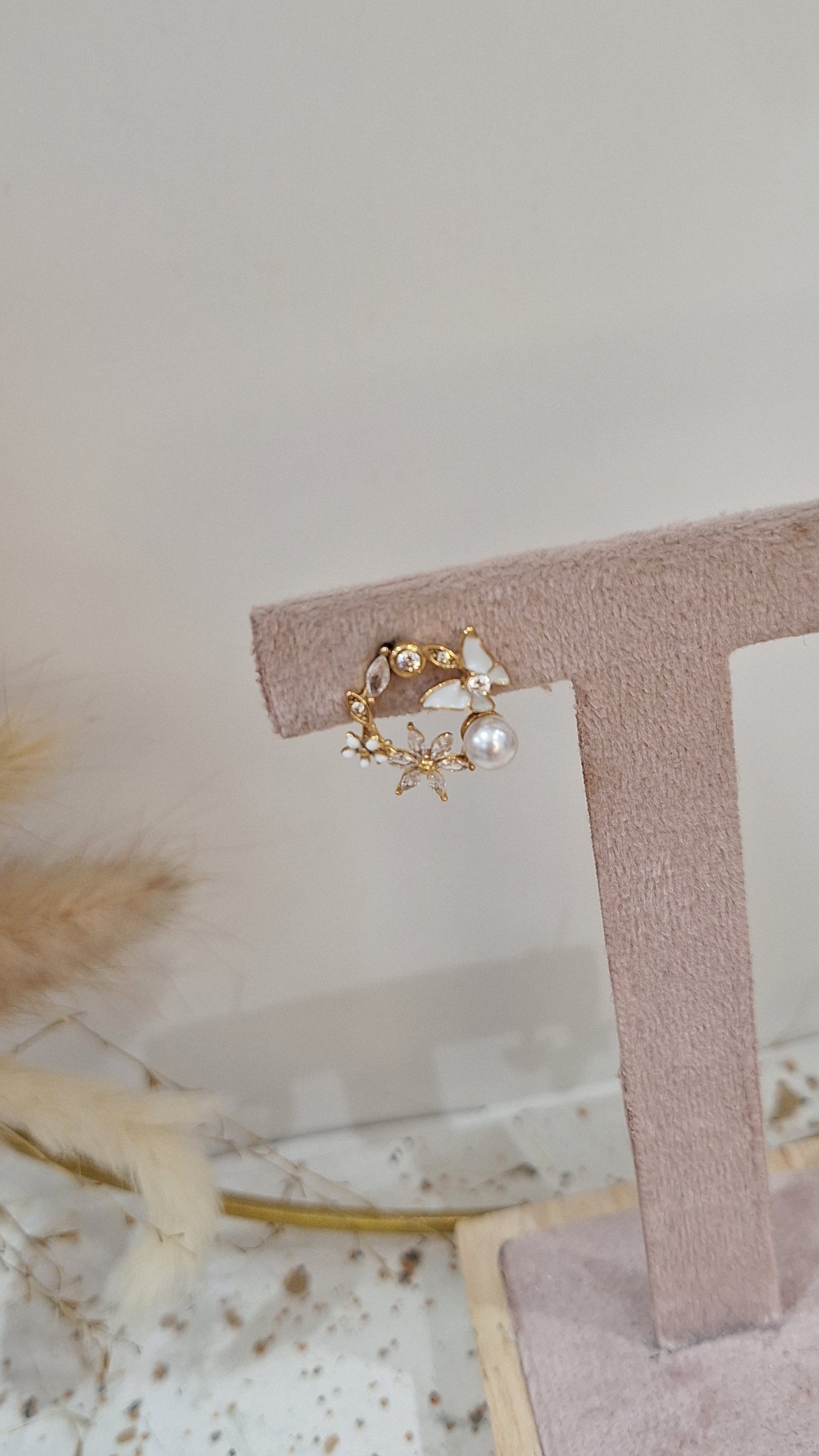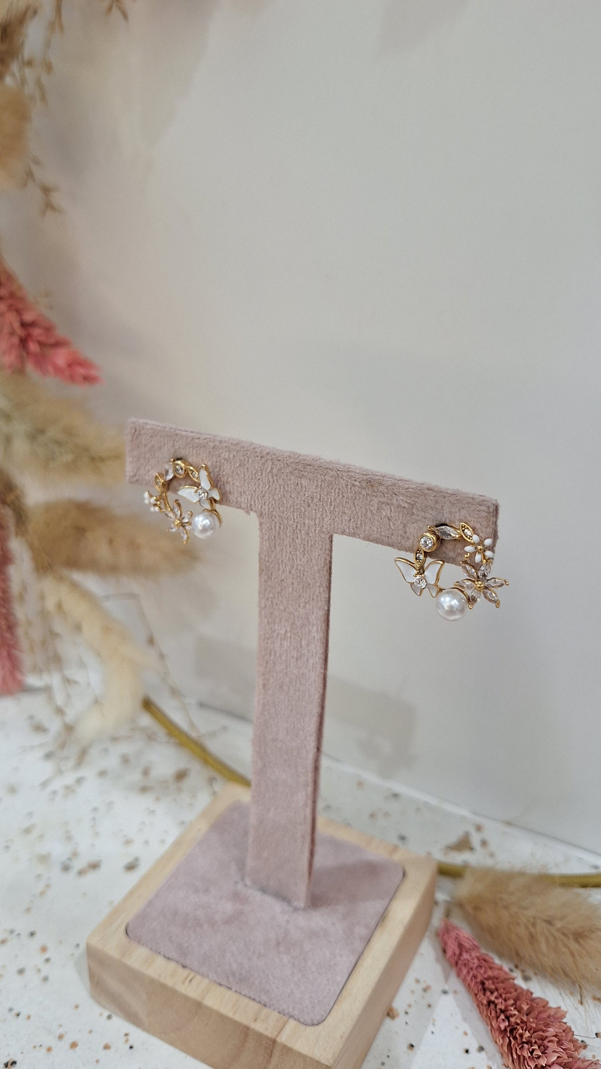 Orecchini Flora - Orecchini a ghirlanda con farfalle fiori e perline