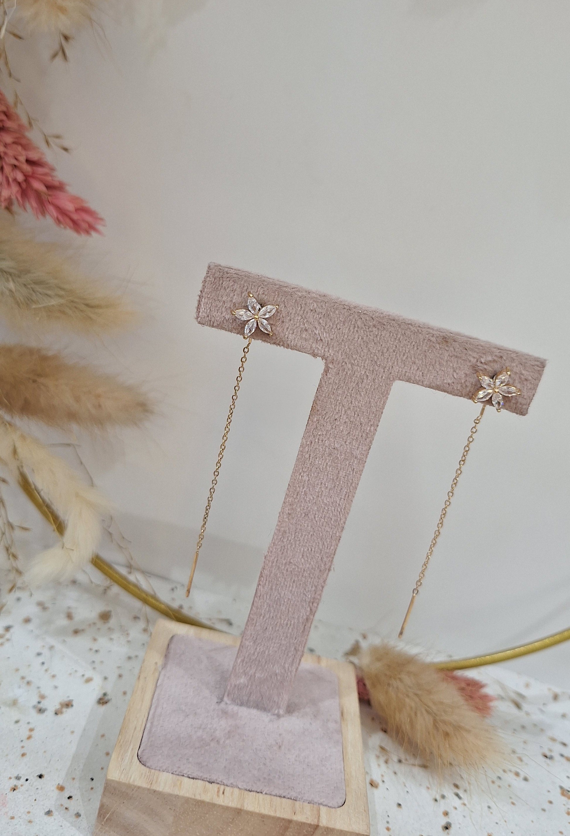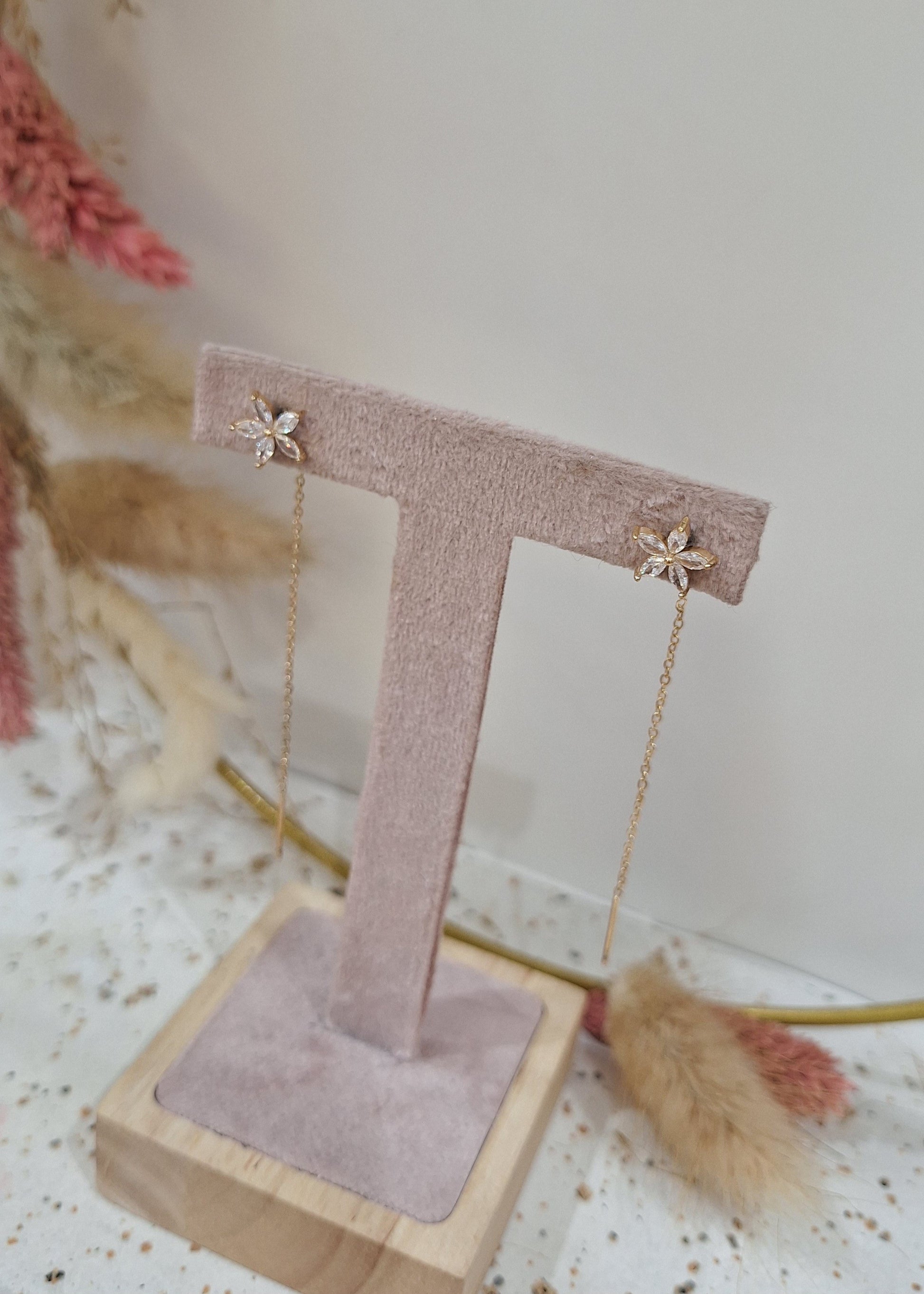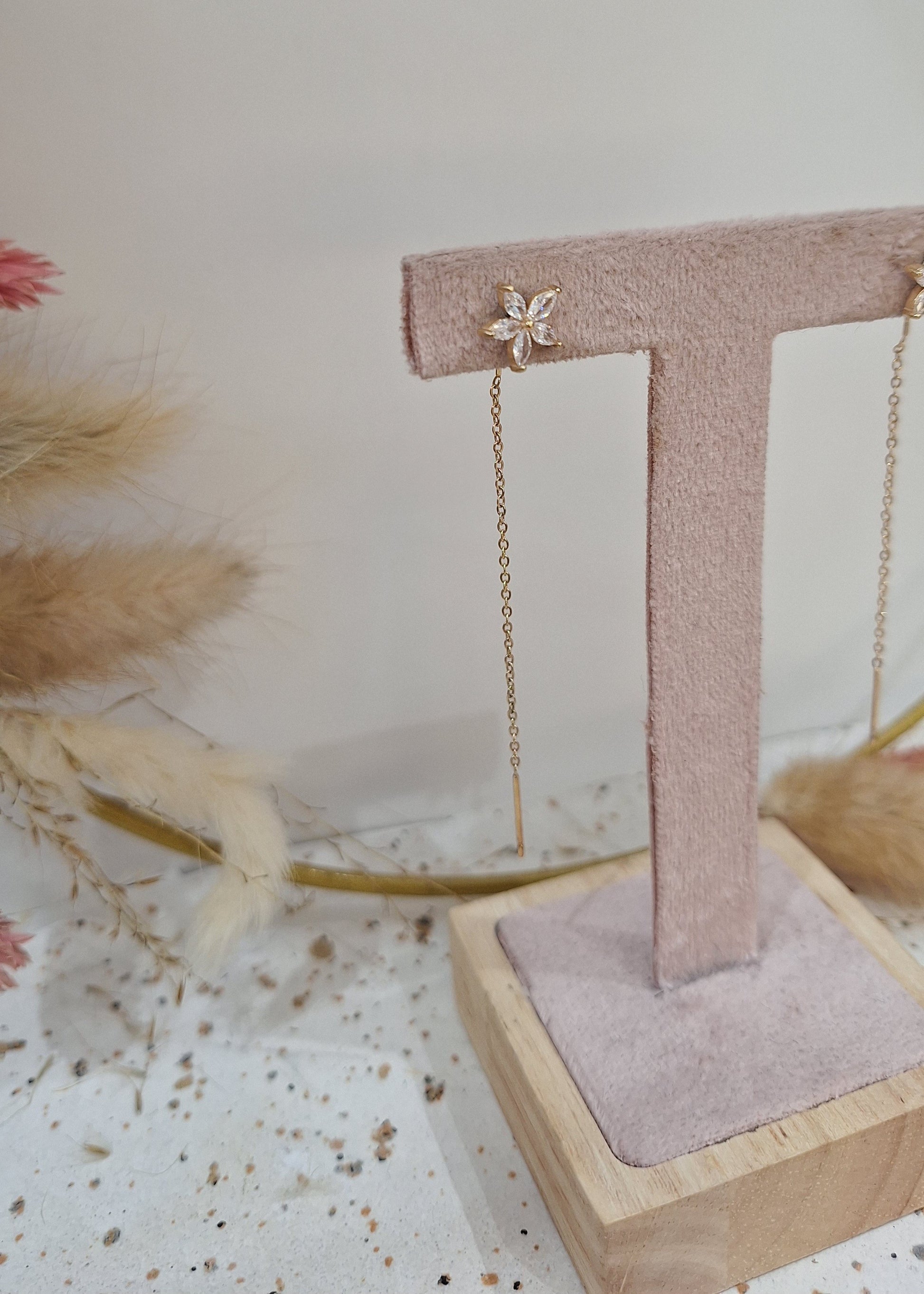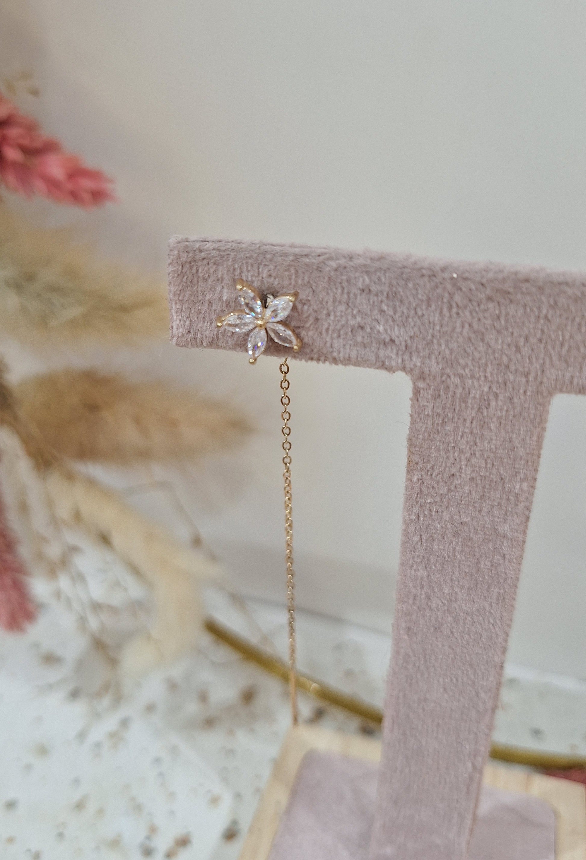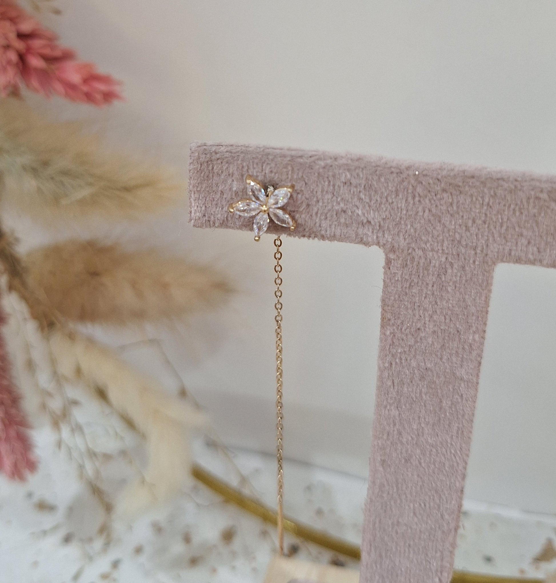 Orecchini Gilly - Orecchini con fiore di strass e catenina pendente