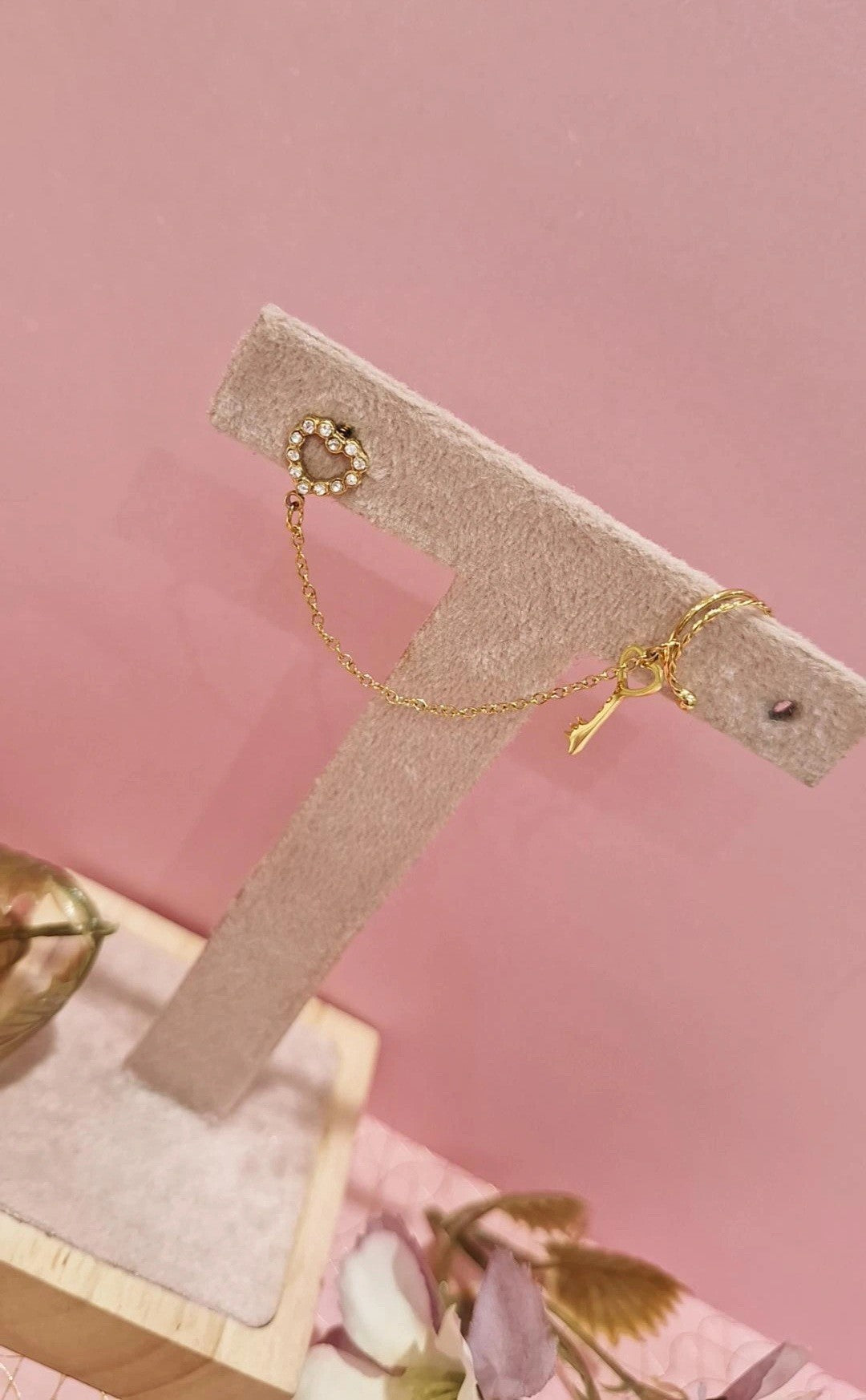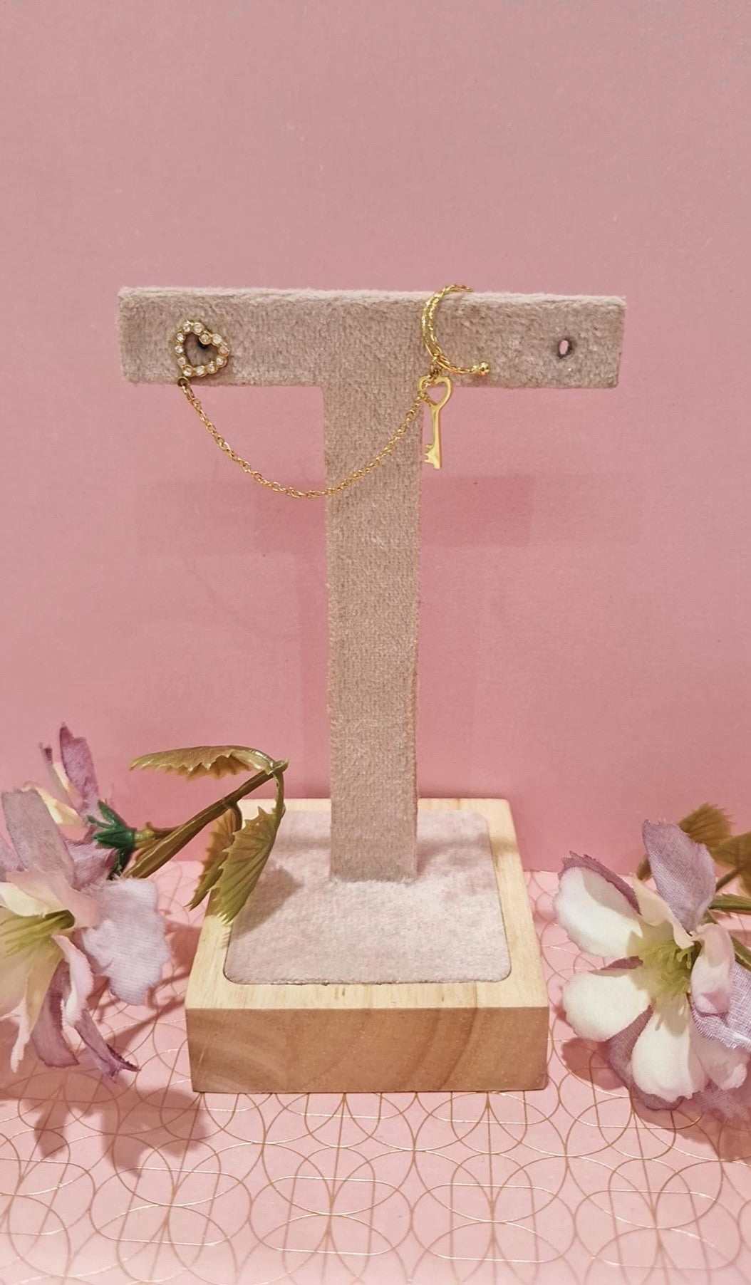 Orecchini Kay- Orecchini con pendente motivo chiave e punto luce motivo cuore.