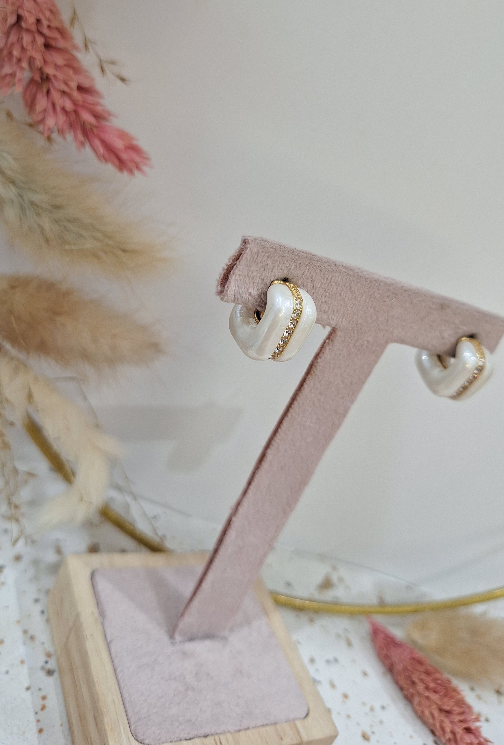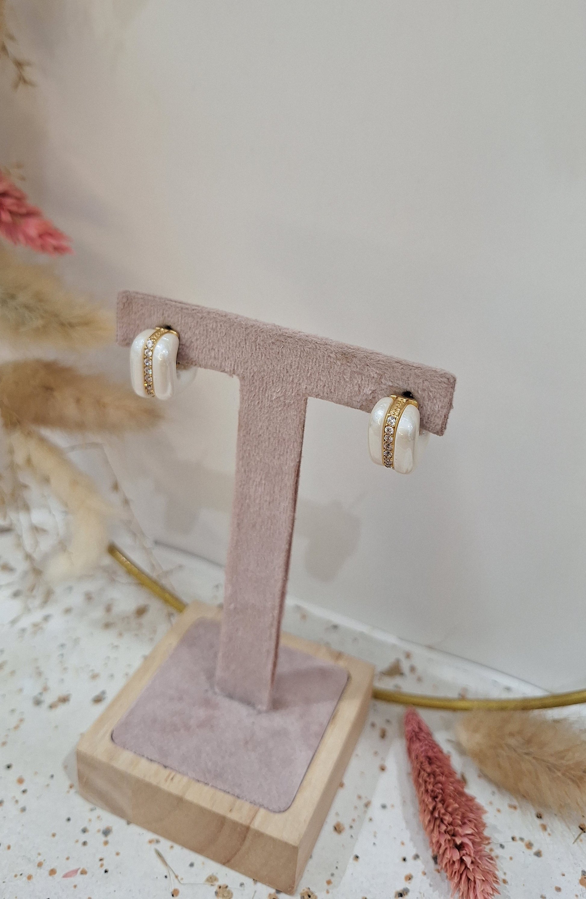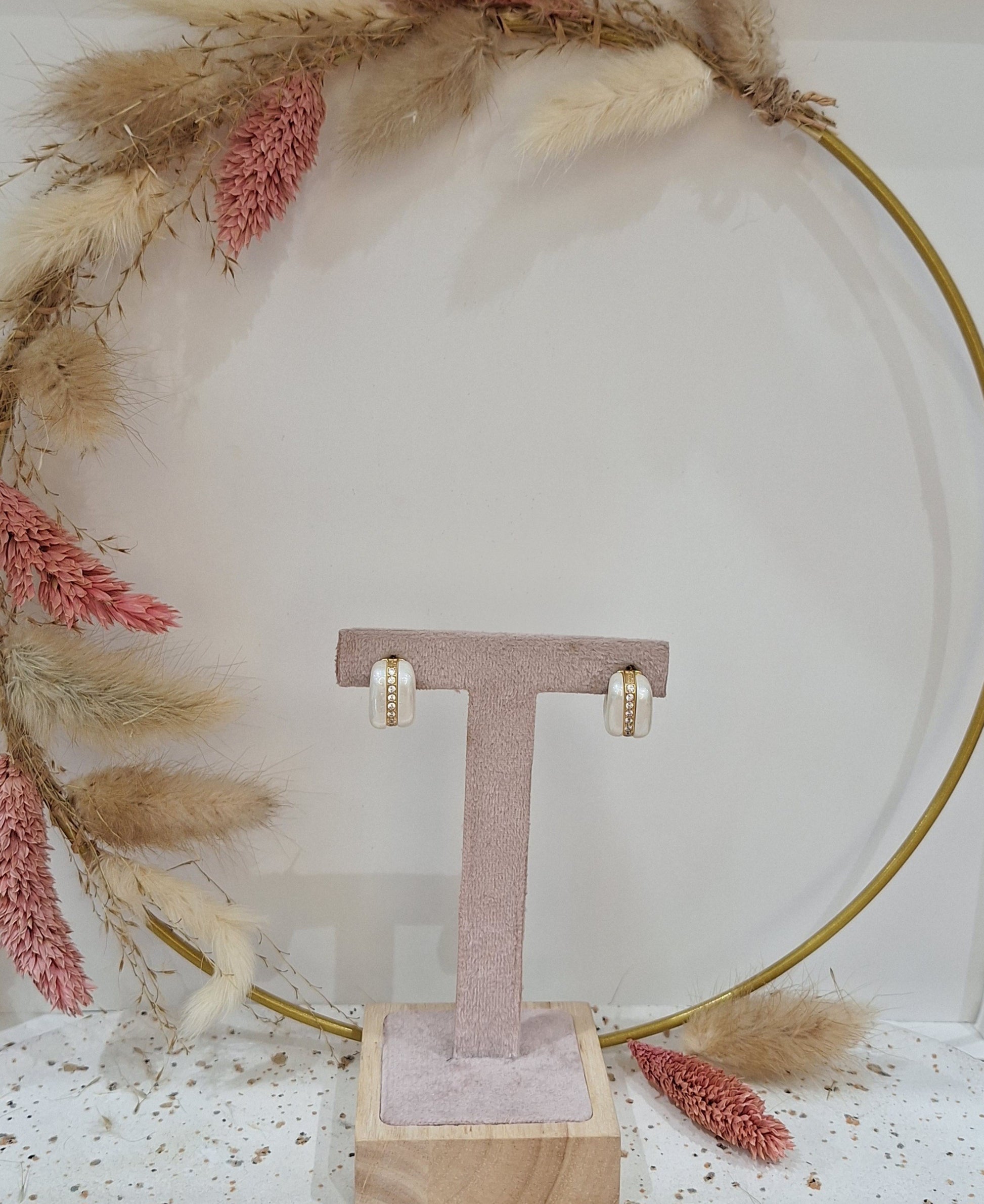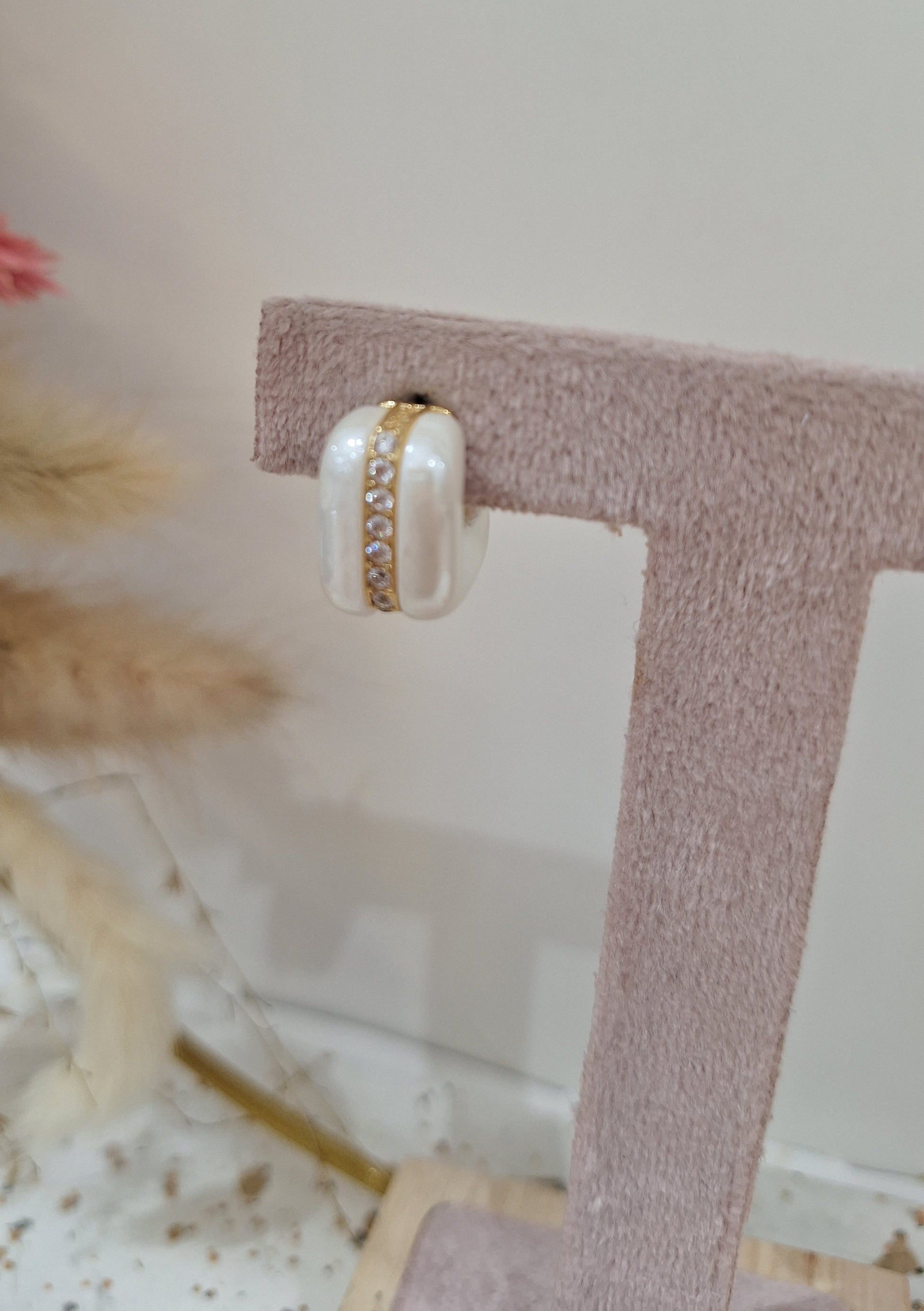 Orecchini Larah - Orecchini geometrici effetto perla con riga di strass