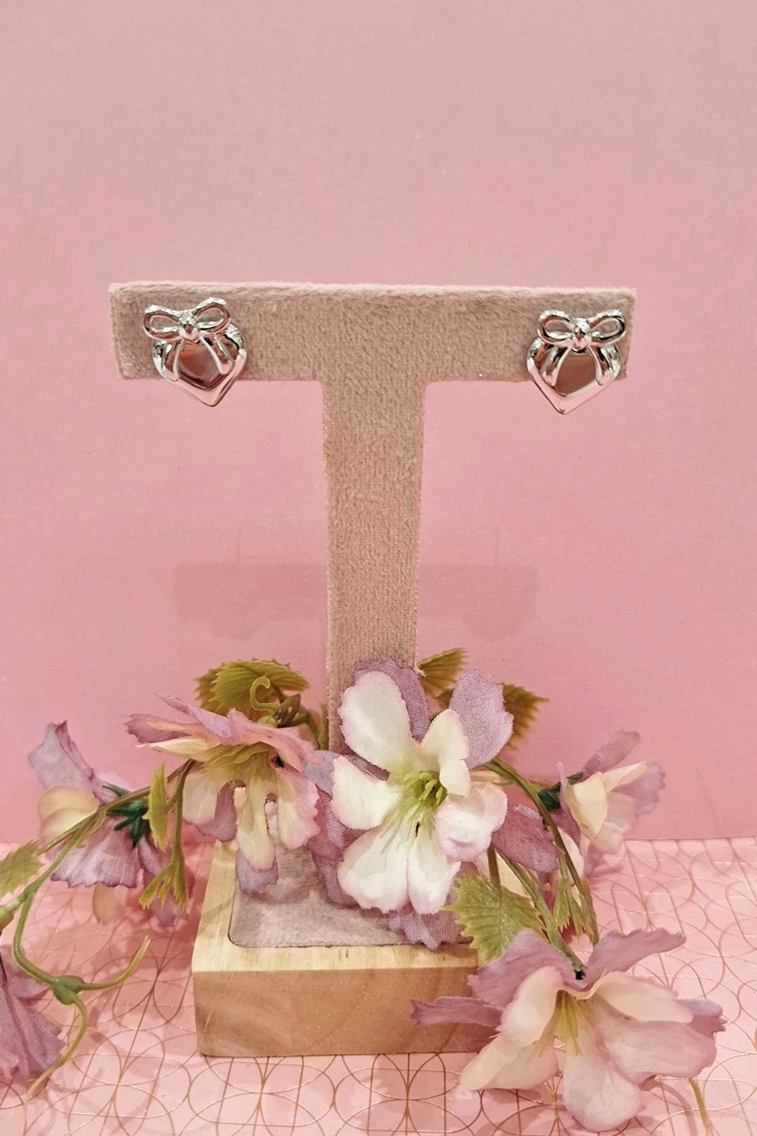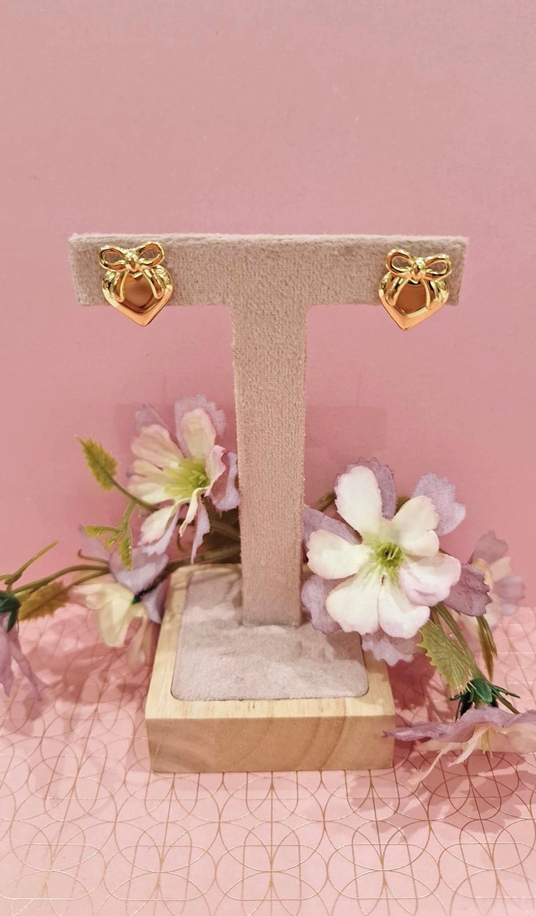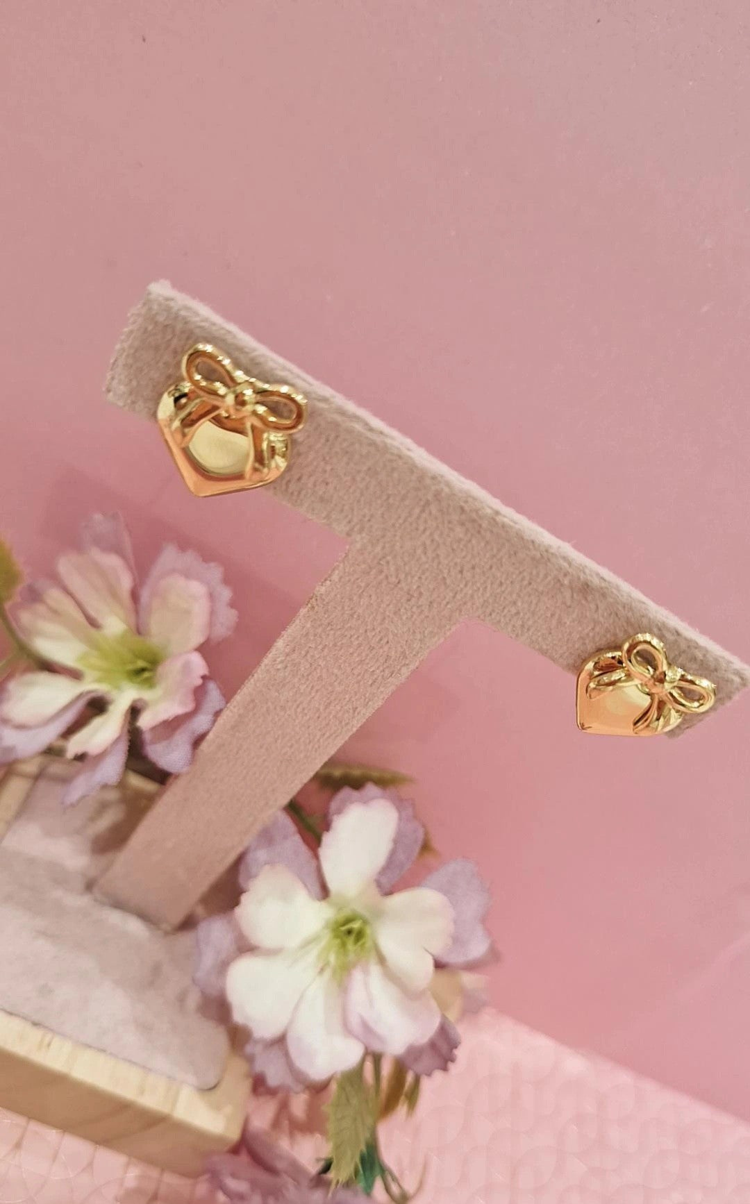 Orecchini Misha- Orecchini a lobo a forma di cuore con fiocco.