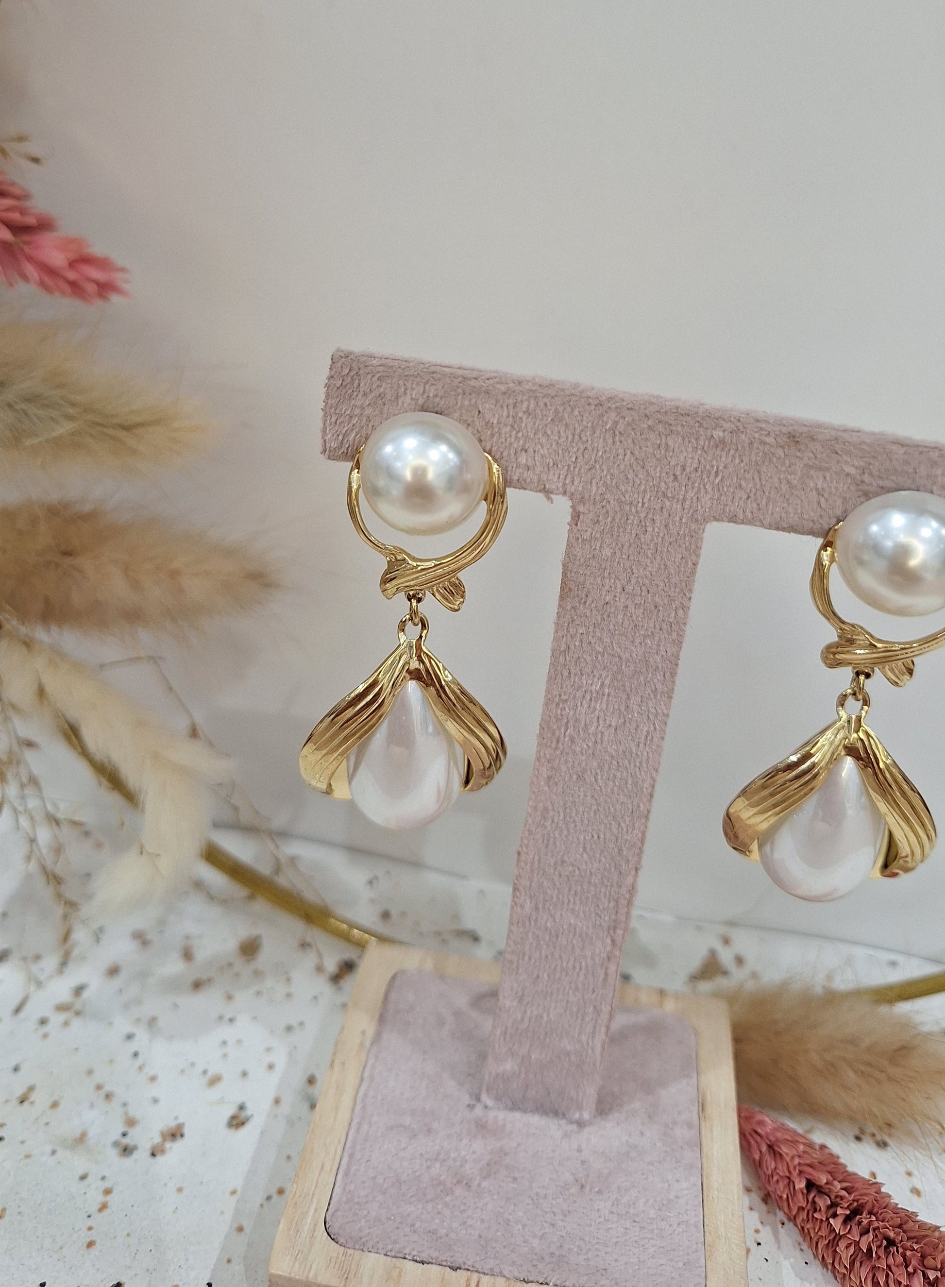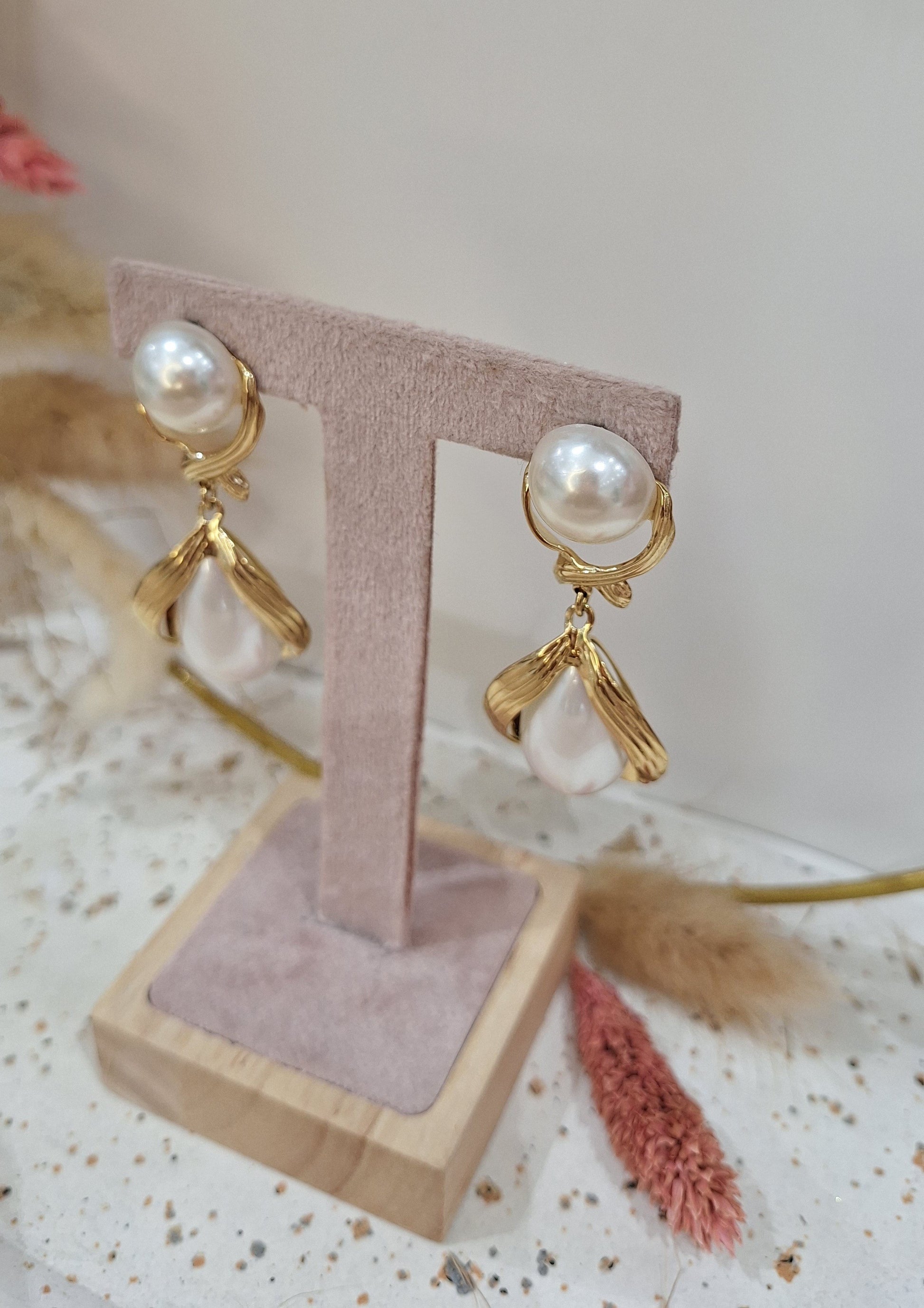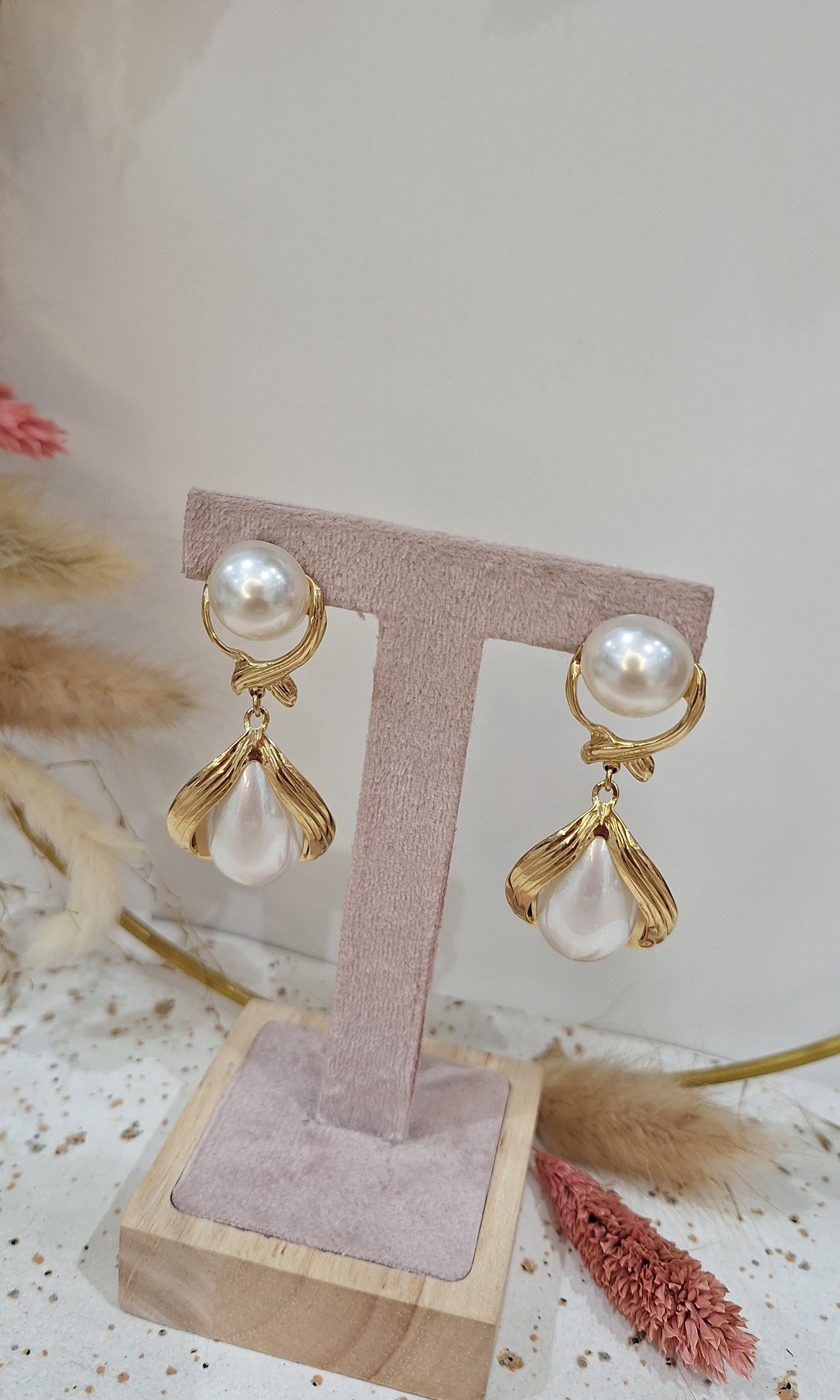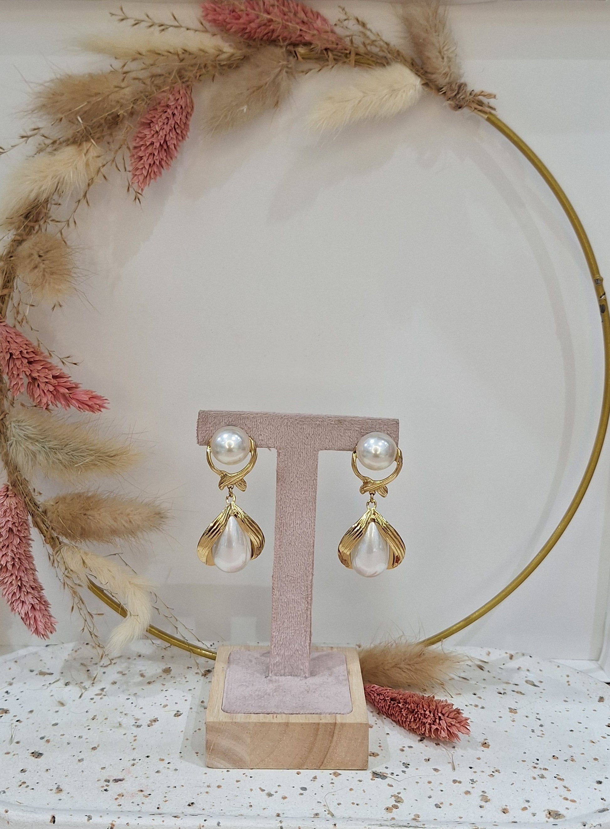 Orecchini Perlay - Orecchini con attaccatura in perla e ciondolo a goccia in perla con intreccio dorato