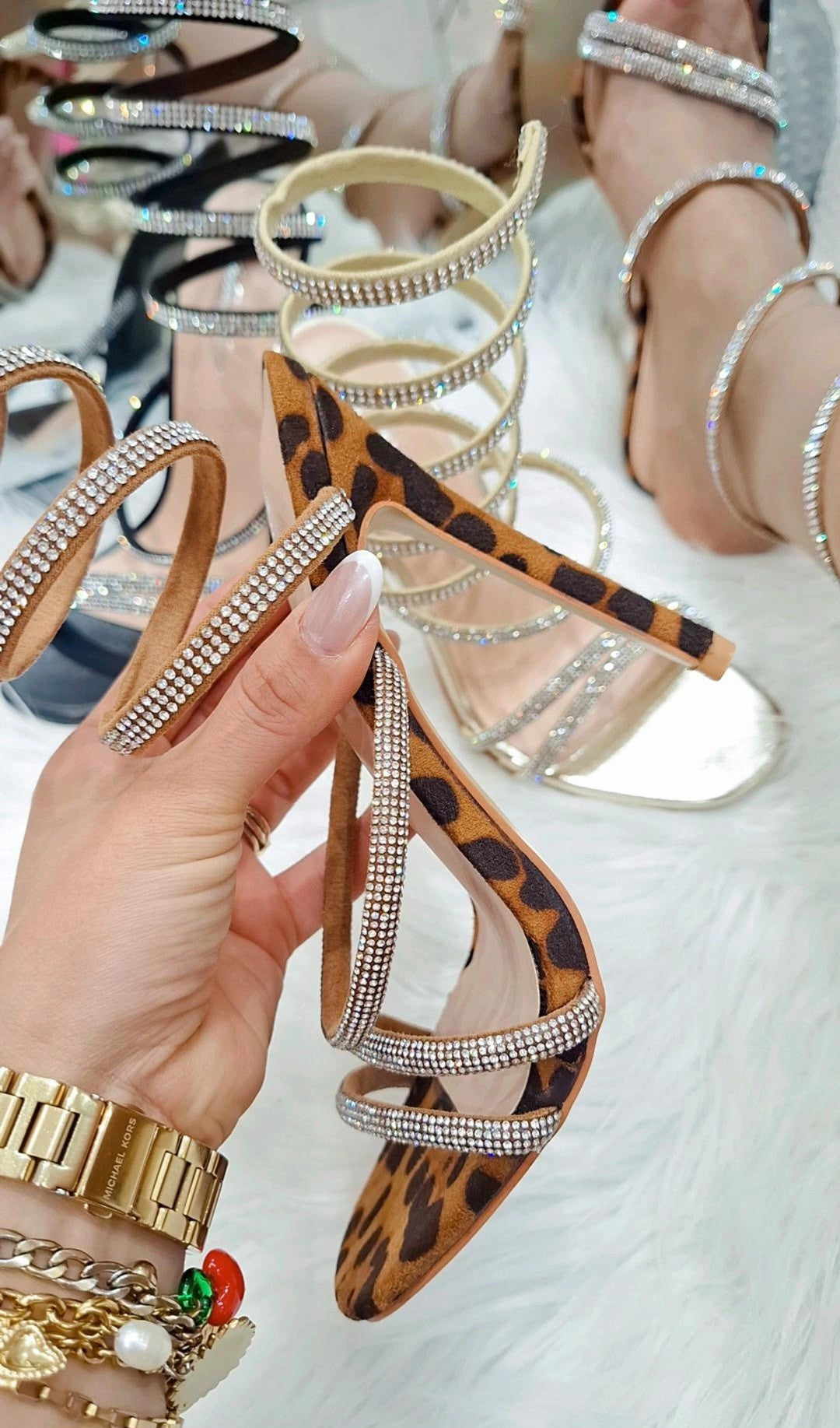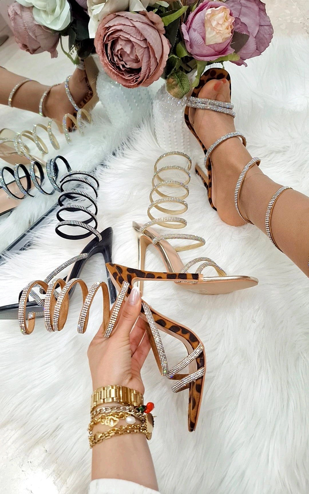 Sandali Asia - Sandali con fascette anteriori e spirale alla caviglia rivestiti di strass