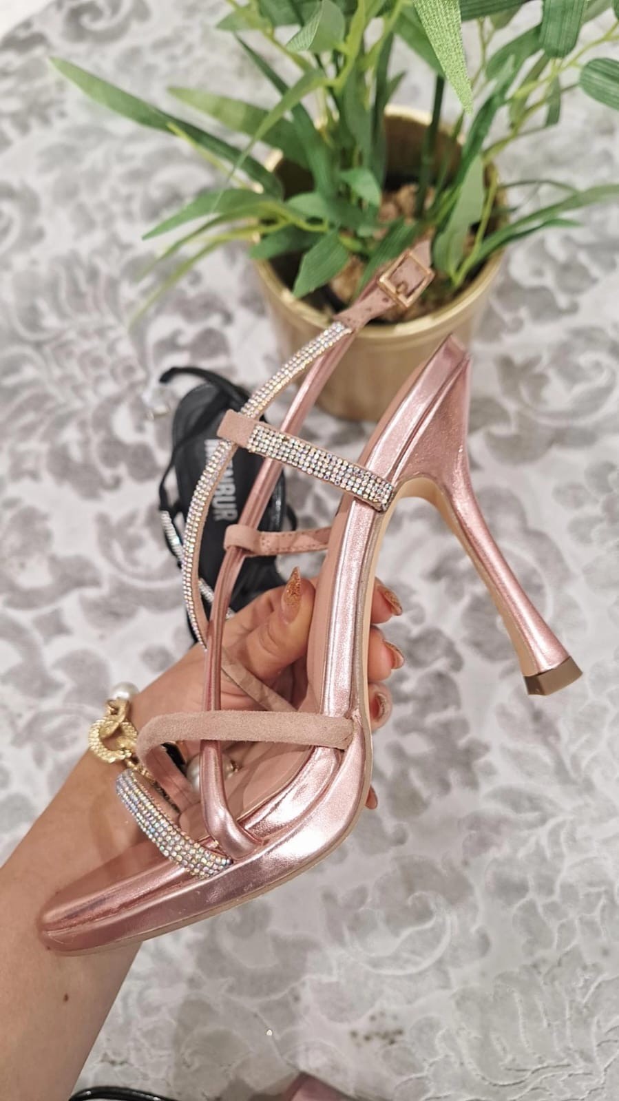 Sandali Clio - Sandali effetto metallizzato con fascette in strass