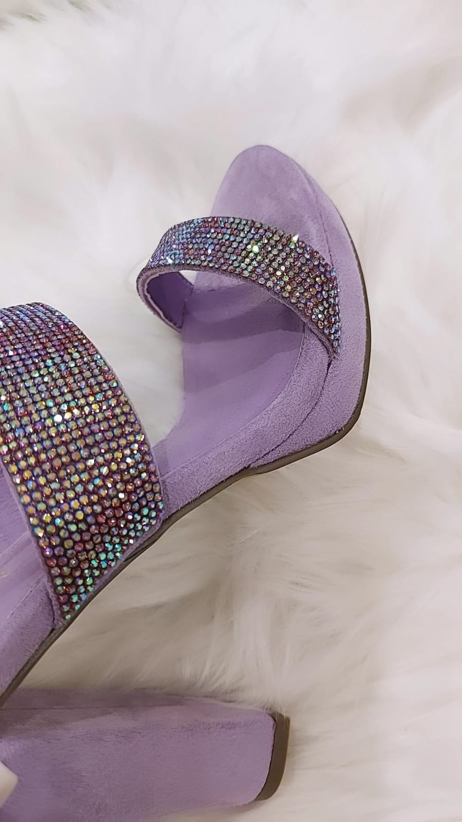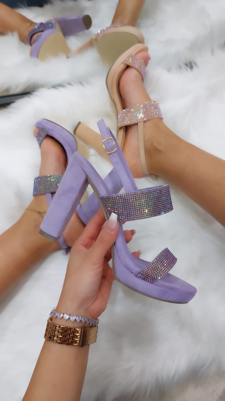 Sandali Lucilla - Sandali scamosciati con tacco spesso, plateau e fasce di strass