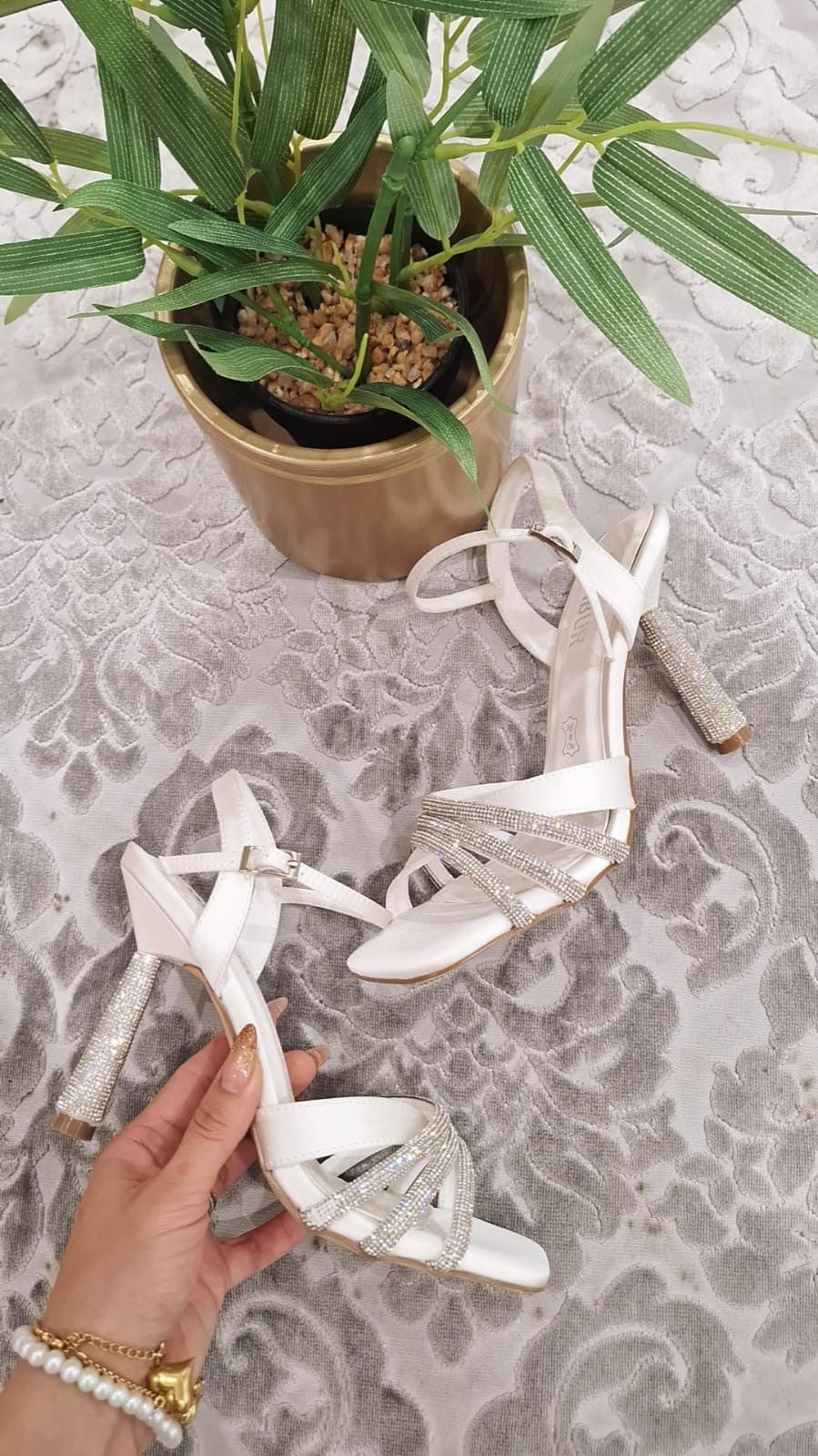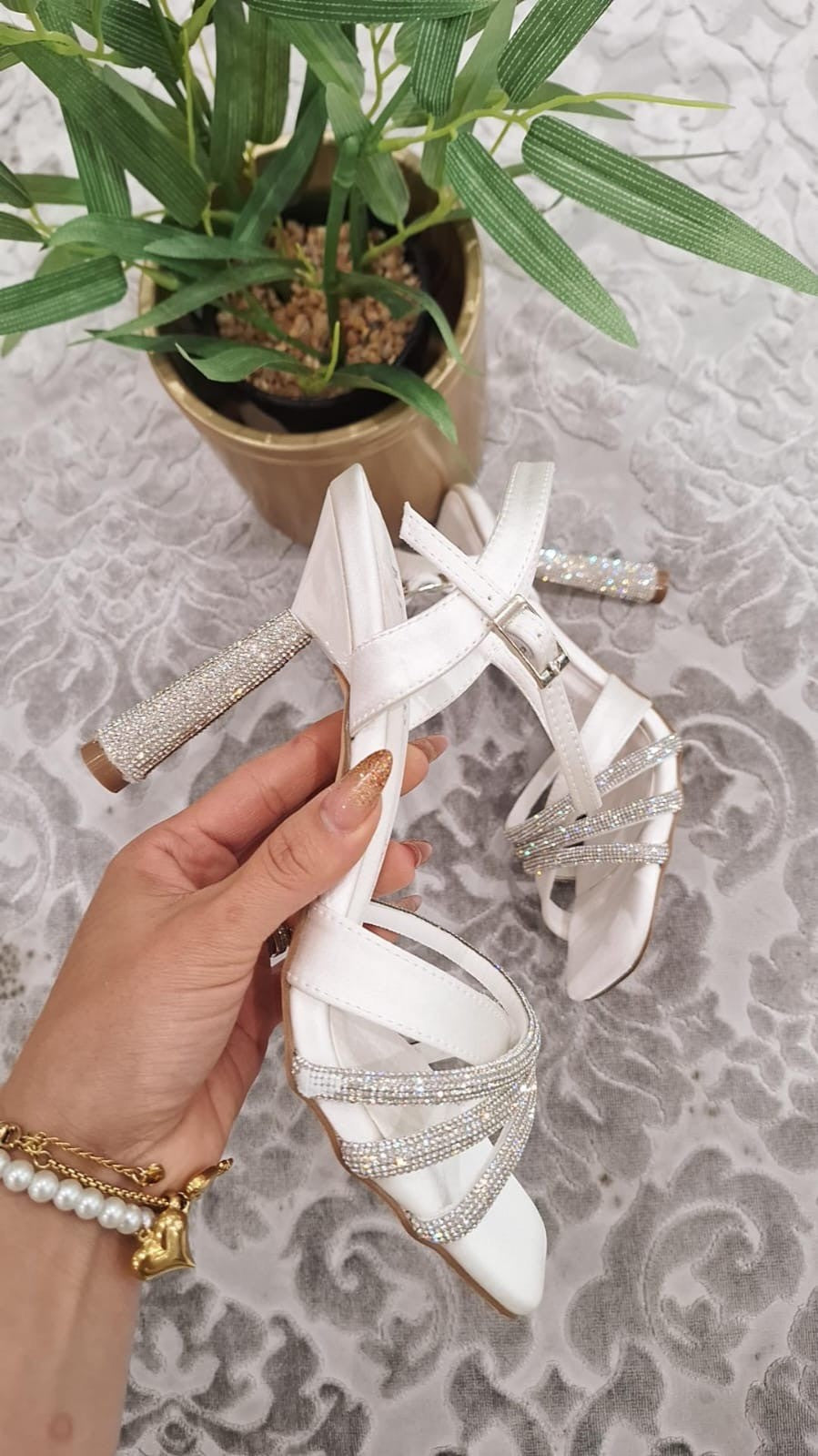 Sandali Milly - Sandali effetto raso con tacco e cinturini in strass
