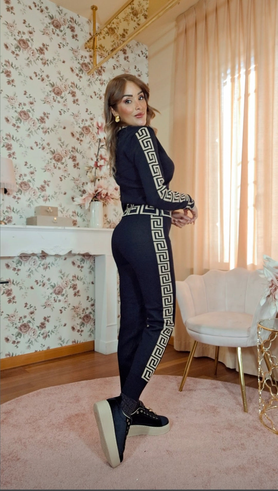 Il Set completo Anita è composto da una felpa e un leggings coordinati, caratterizzati da un design bicolore con forme geometriche moderne. Perfetto per chi cerca comfort e stile, questo completo unisce tessuti di qualità e un taglio studiato per garantire libertà di movimento e un look sofisticato e contemporaneo. Ideale per attività sportive o per un outfit casual e raffinato.
