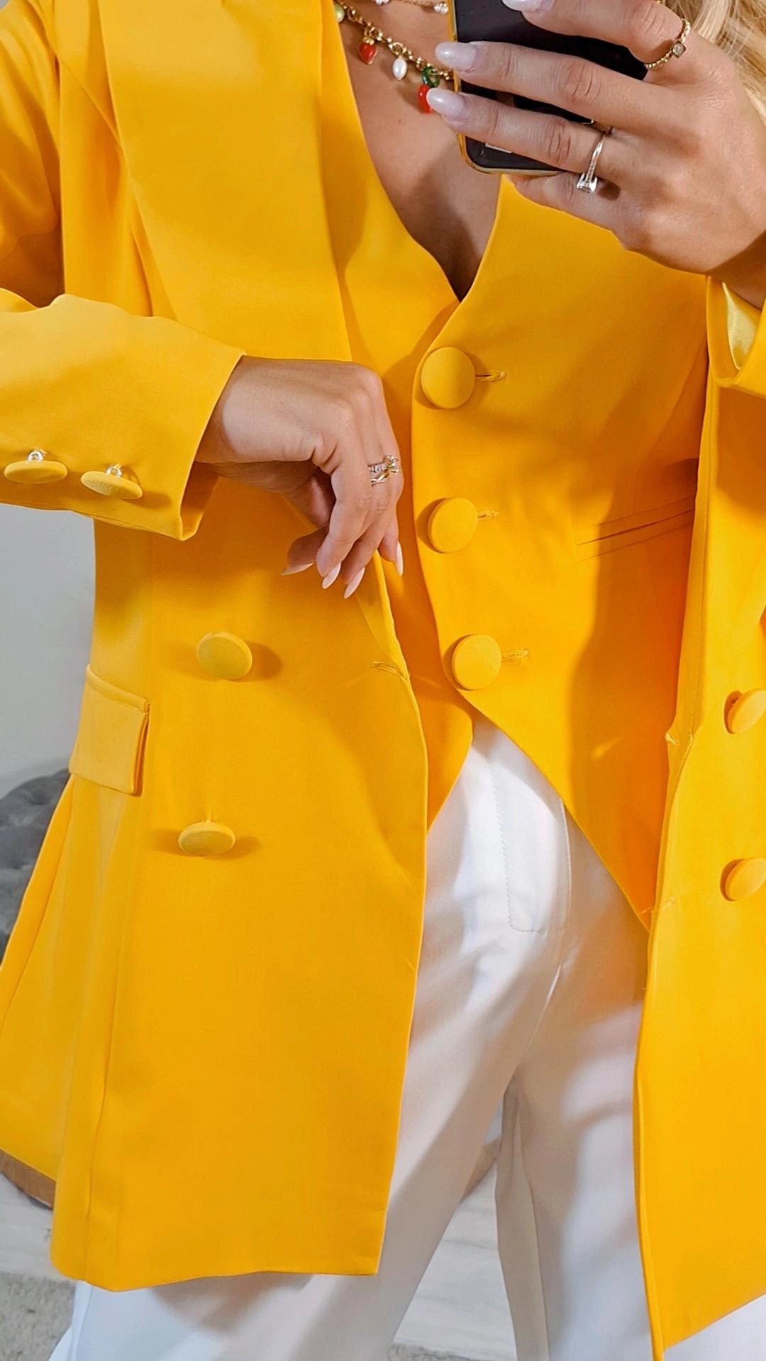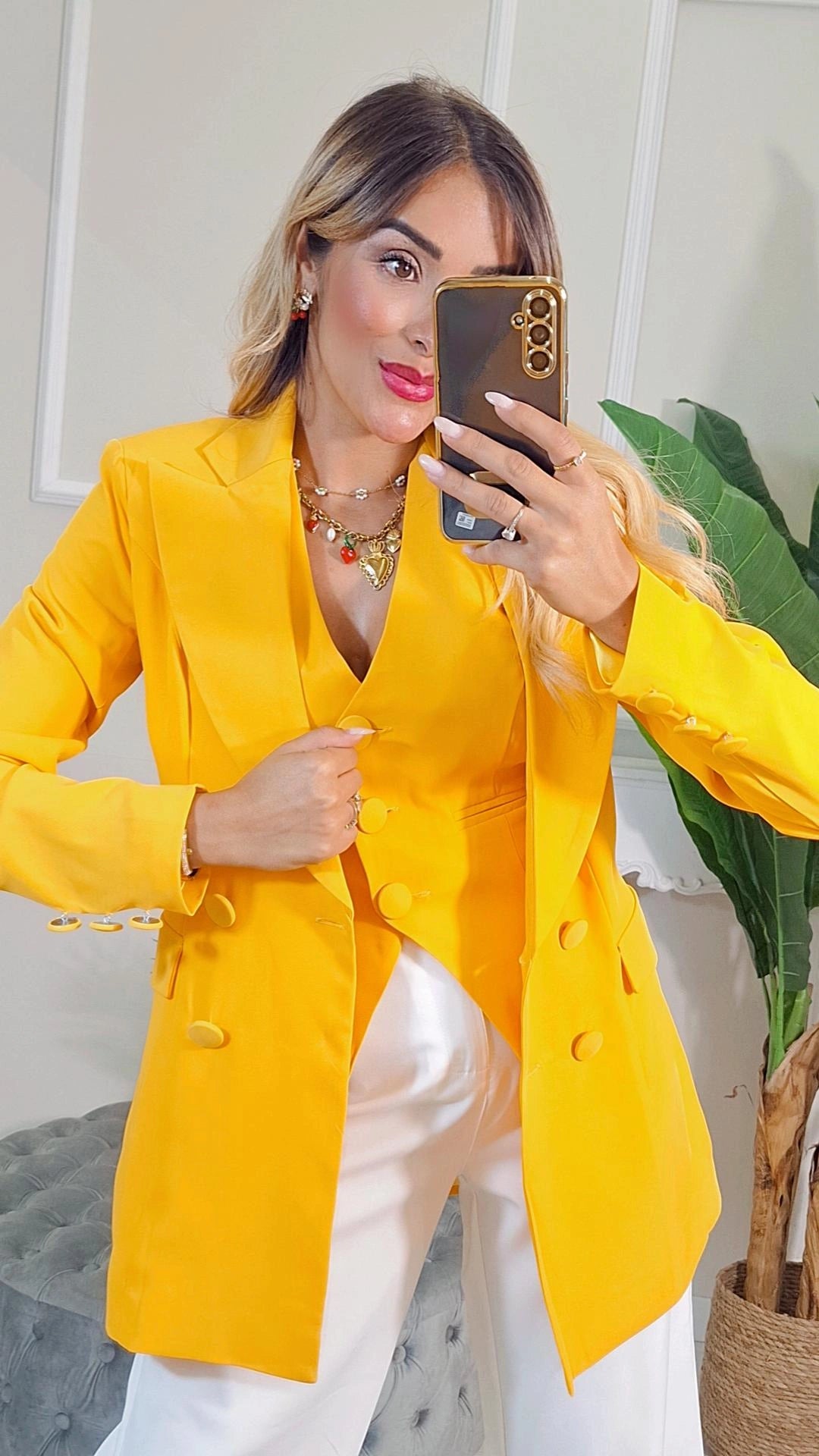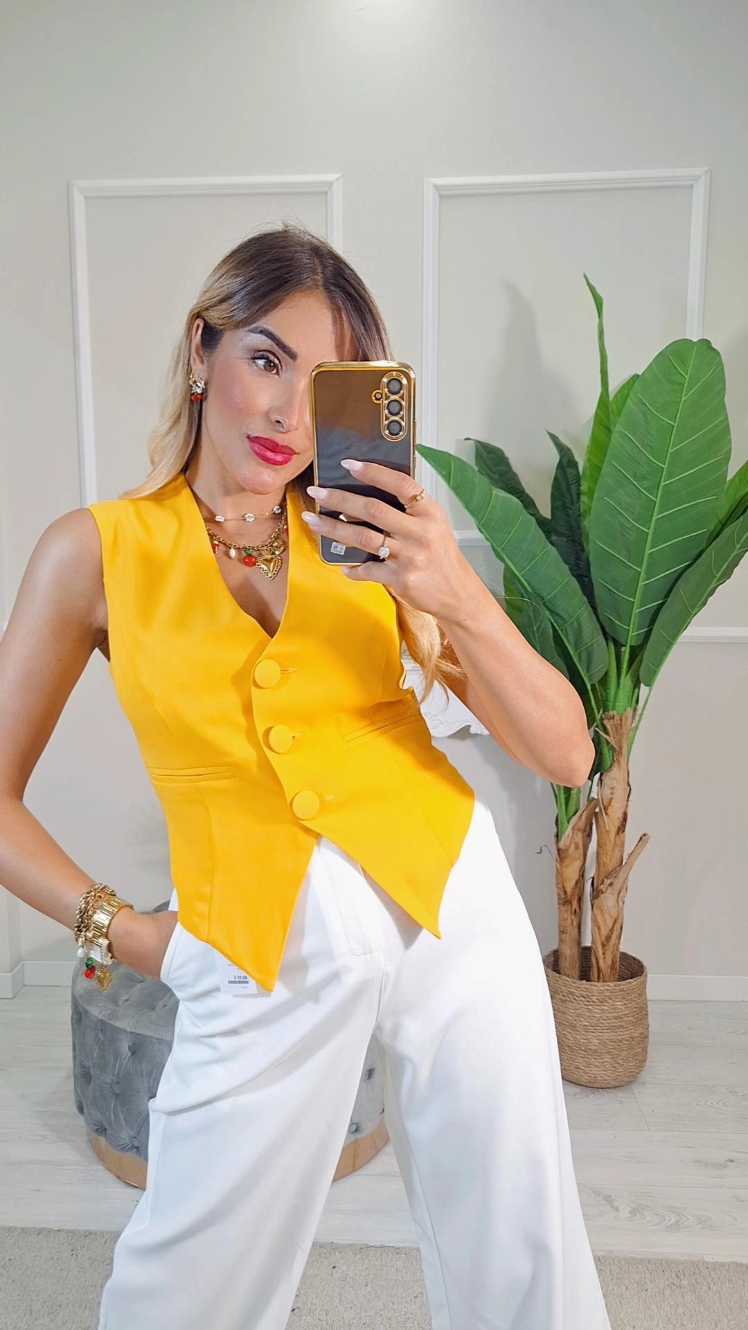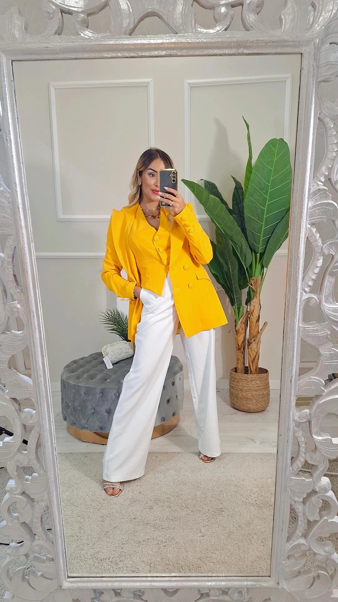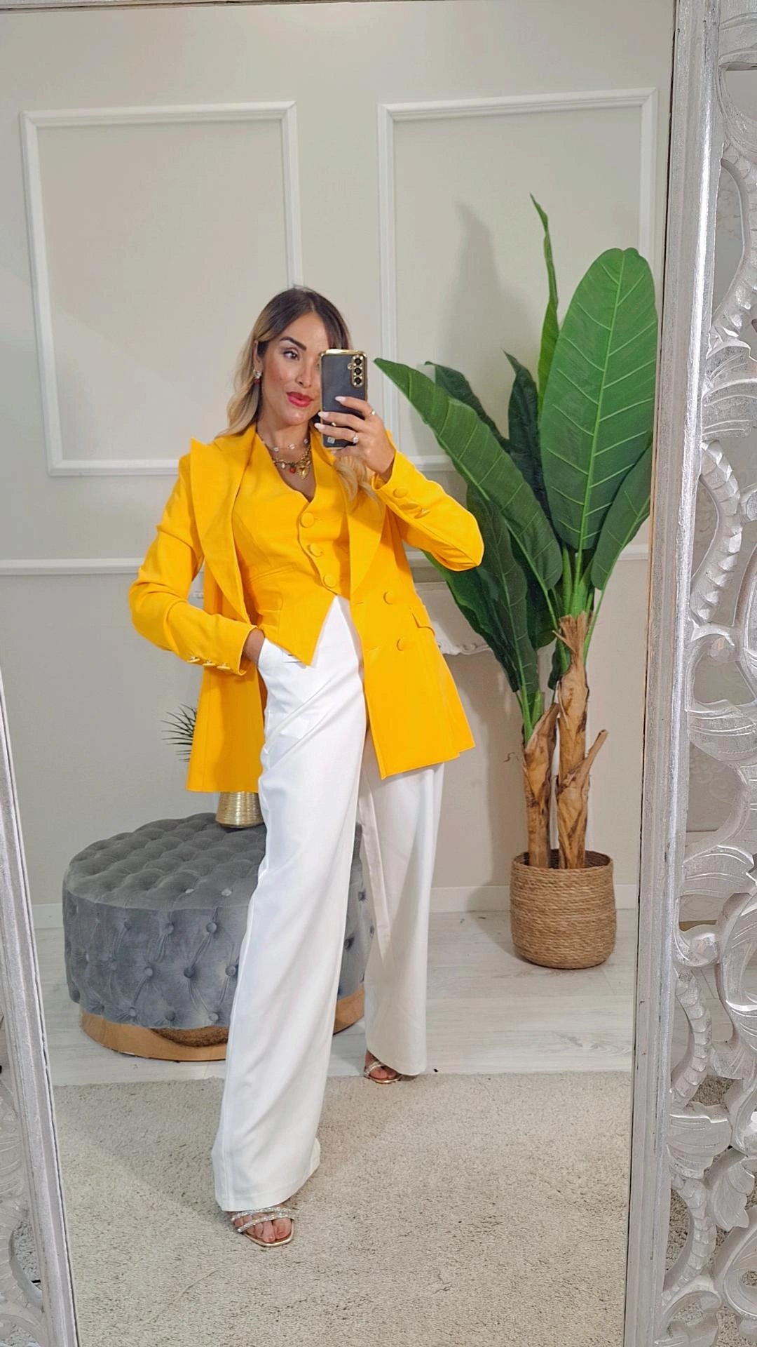 Il Set Completo Sofy combina un gilet e una giacca in tessuto giallo elegante con un design casual, perfetto per chi desidera un look sofisticato ma rilassato. Realizzato con materiali di alta qualità e tagli moderni, questo completo offre comfort e stile, ideale per eventi informali o occasioni in cui distinguersi con classe senza rinunciare alla comodità.