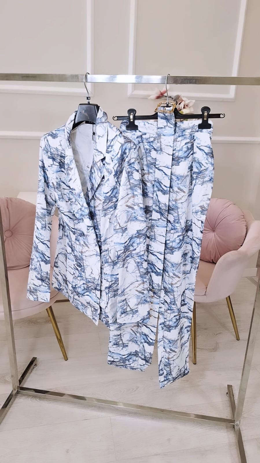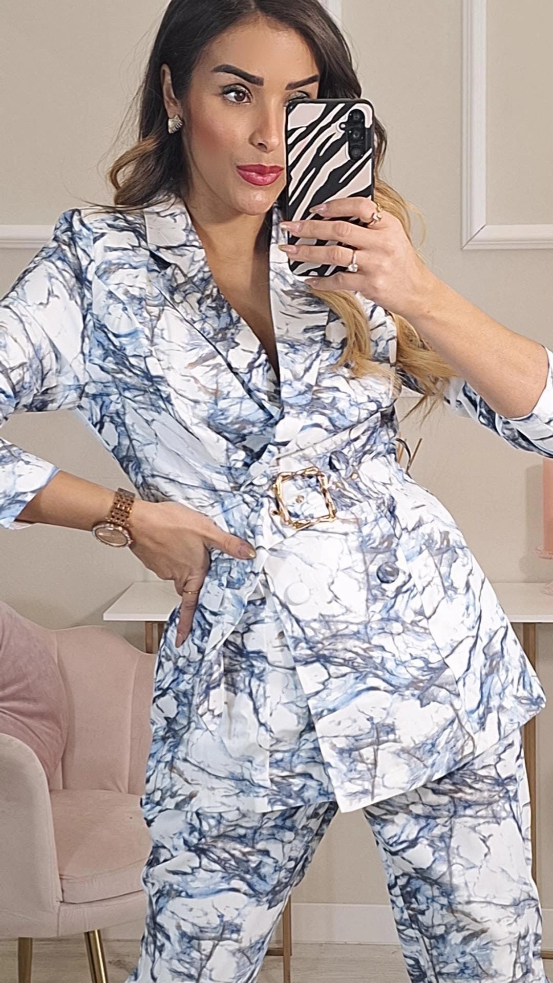 Set completo Taisha - Set completo pantaloni e giacca doppio petto con cintura in fantasia