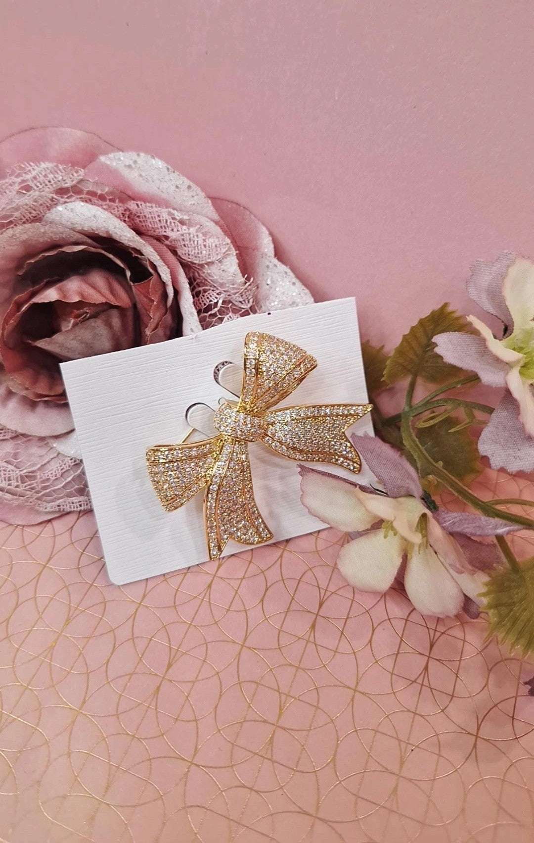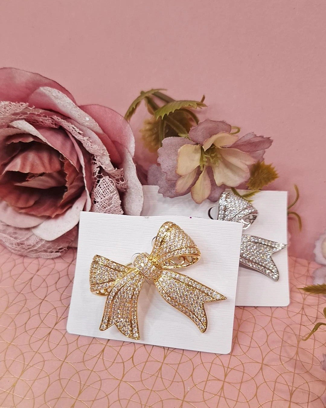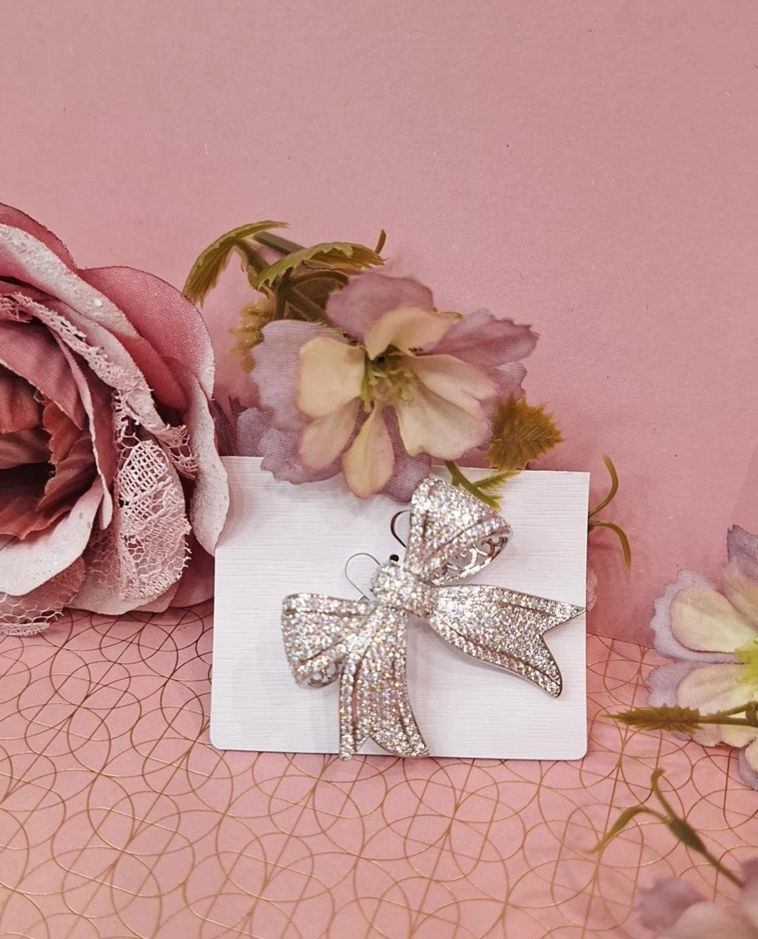 Spilla Kady-spilla metallica a forma di fiocco tempestata di brillantini.