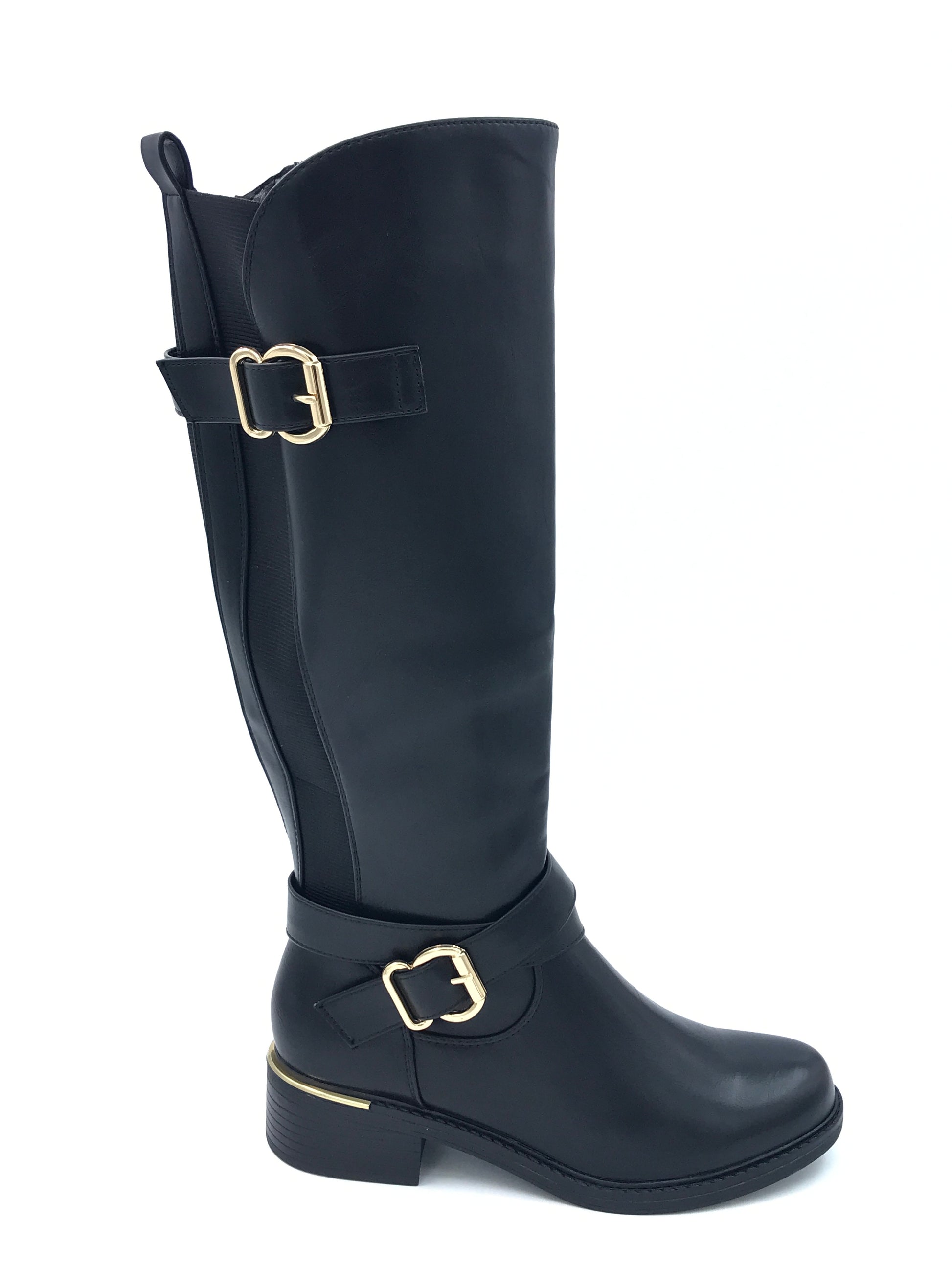 Il Stivale Nivea combina eleganza e funzionalità con una doppia fibbia laterale e un profilo dorato sul tacco, che aggiunge un tocco di raffinatezza. La fascetta elastica garantisce una calzata adattabile sul polpaccio, mentre la cerniera interna facilita la vestibilità. Ideale per chi cerca stile e comfort in un unico modello.