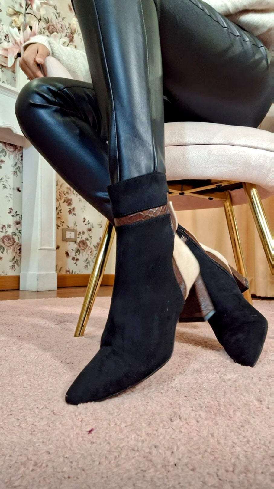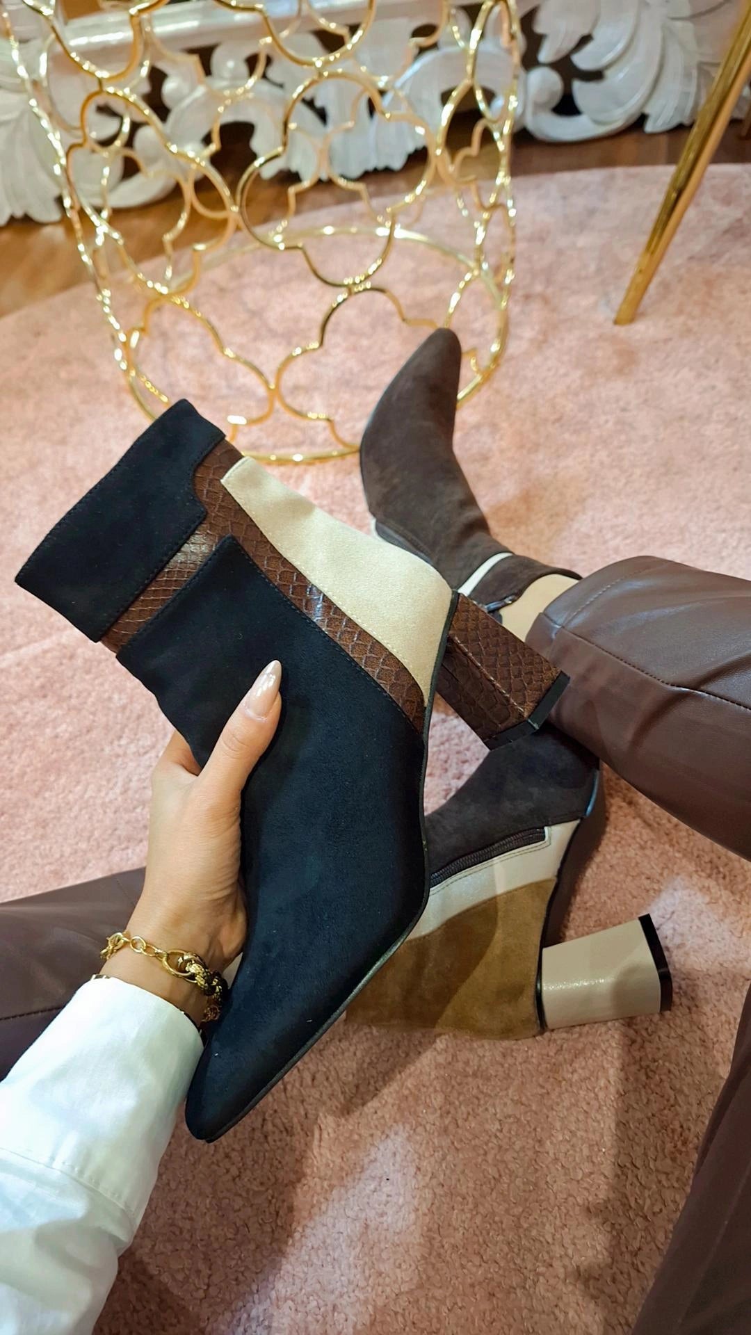 Gli stivaletti Beatriz uniscono stile e comfort con il loro design multicolor arricchito da inserti scamosciati. Il tacco largo garantisce stabilità e praticità, mentre l'effetto coccodrillo aggiunge un tocco di eleganza sofisticata. Ideali per chi cerca un calzatura versatile e di carattere, perfetta per completare ogni look con personalità.