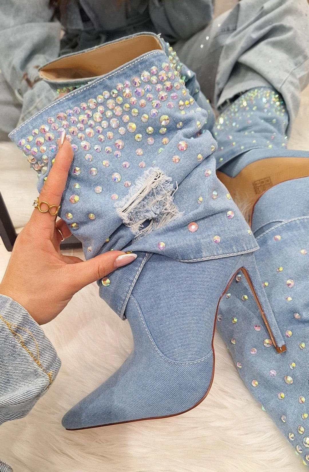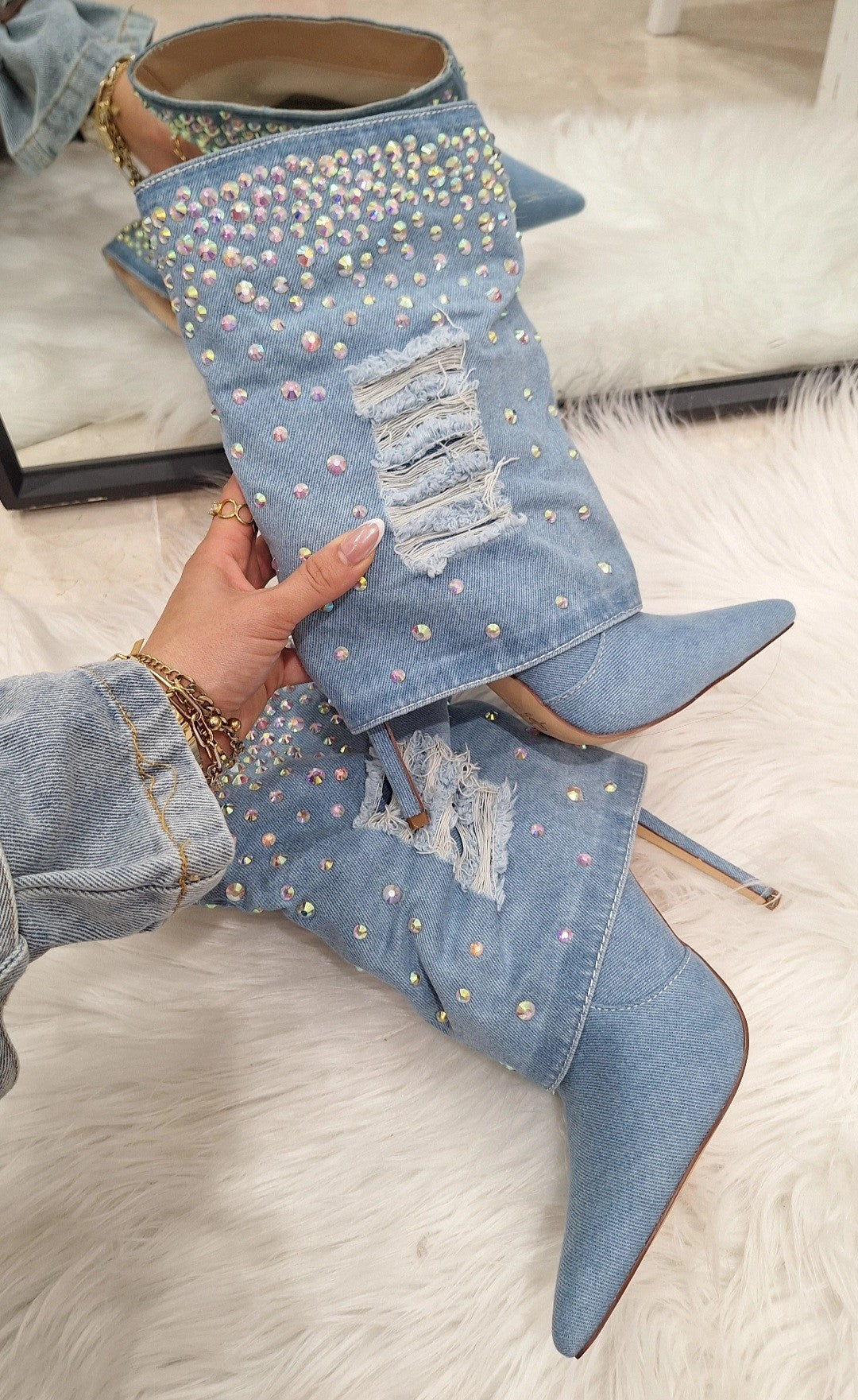 Stivaletti Riley - Stivaletti in denim a punta con risvolto e brillantini