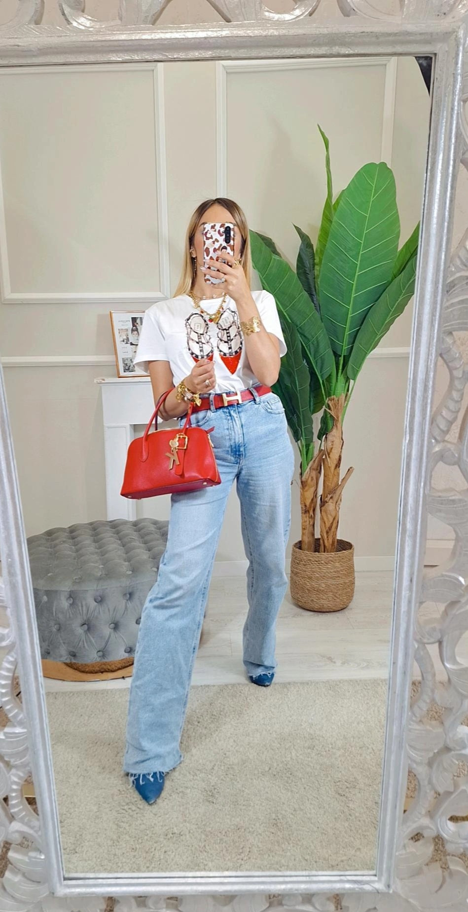 La T-Shirt Ballery, a maniche corte, è realizzata in cotone di alta qualità per garantire comfort e traspirabilità. Il disegno frontale raffigura un paio di ballerine leopardate, arricchite da borchie applicate che donano un tocco di grinta e originalità al capo.