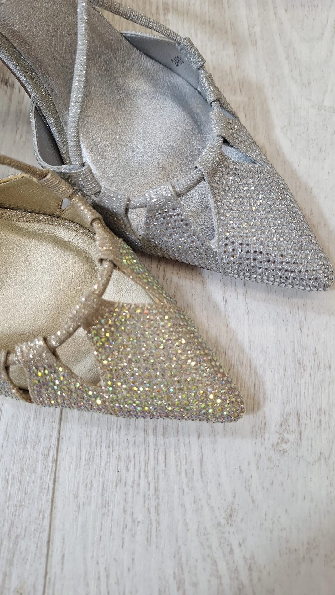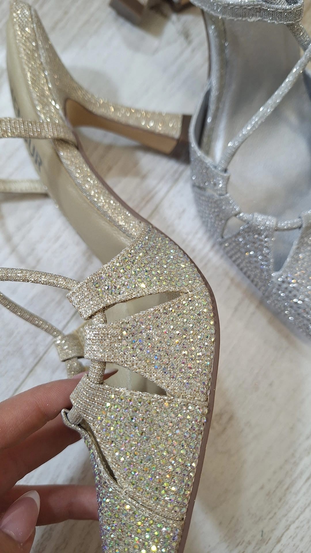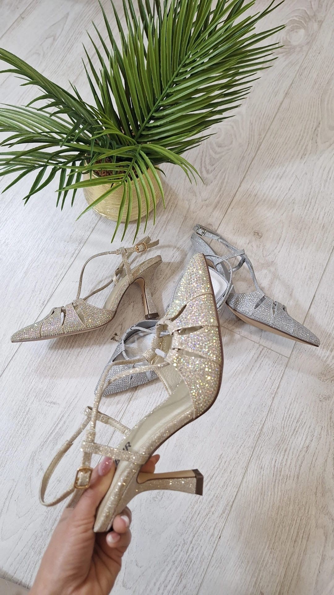 Tacchi Akemi - Slingback con tacco a rocchetto in glitter con strass sulla punta