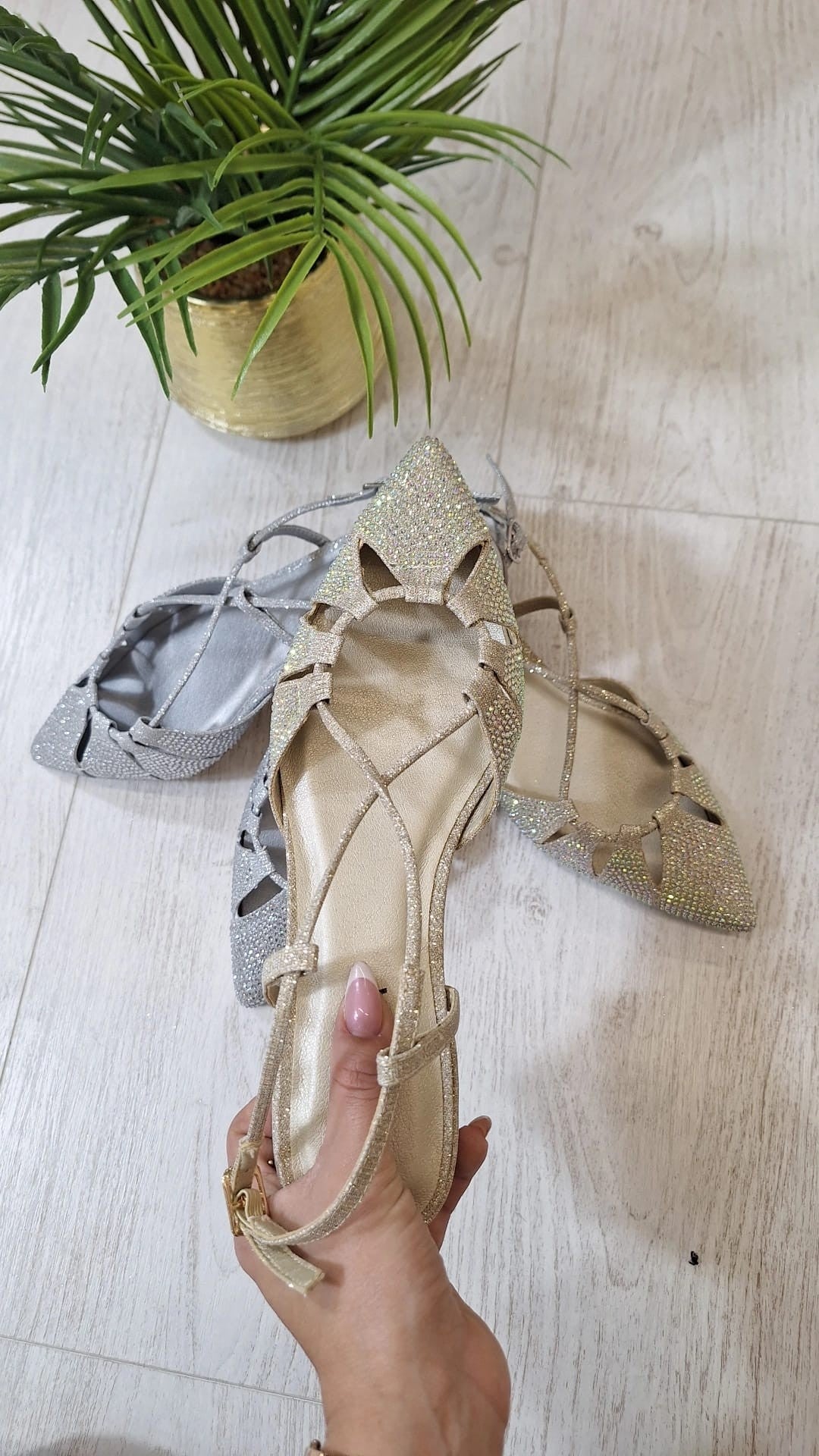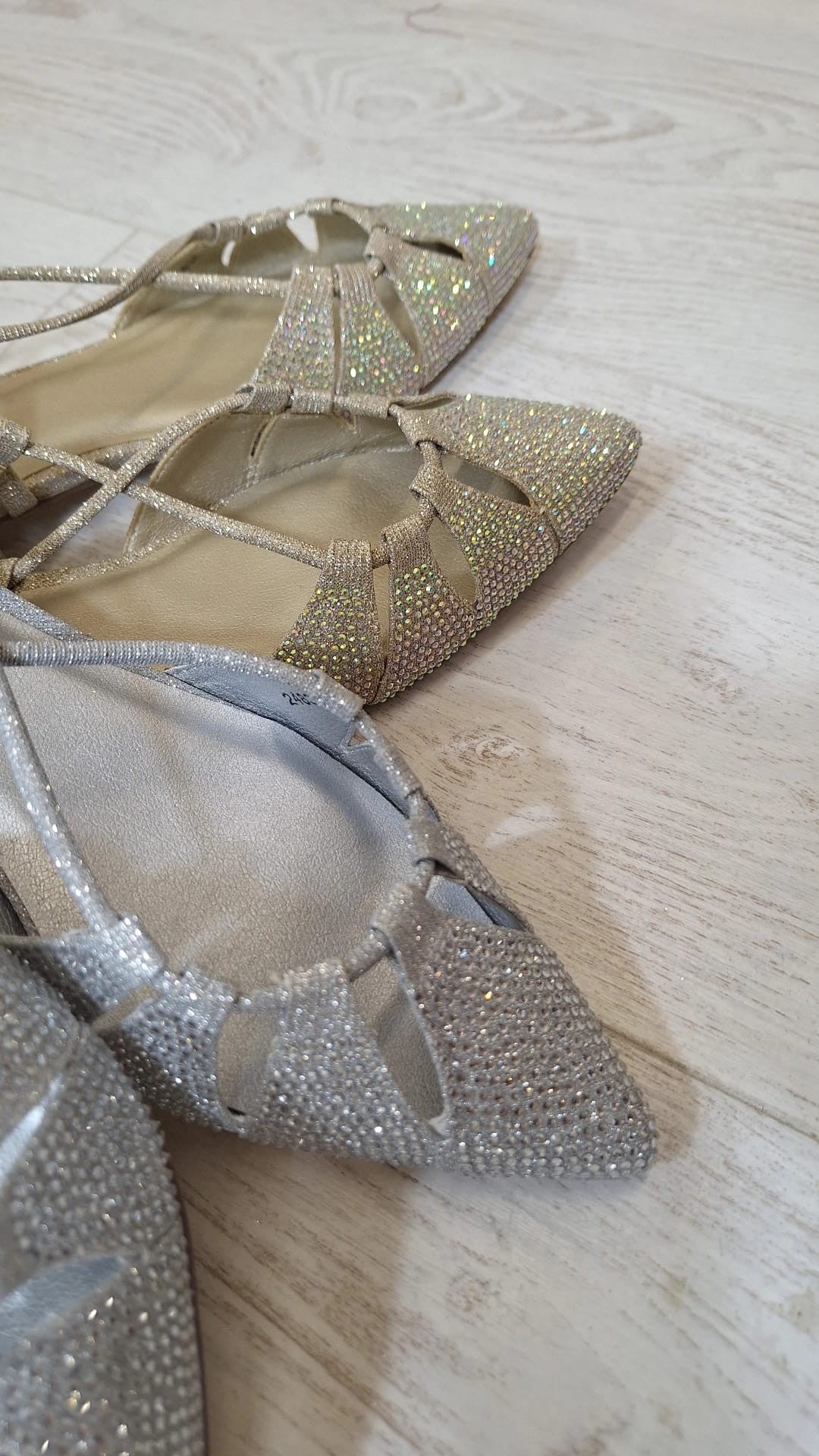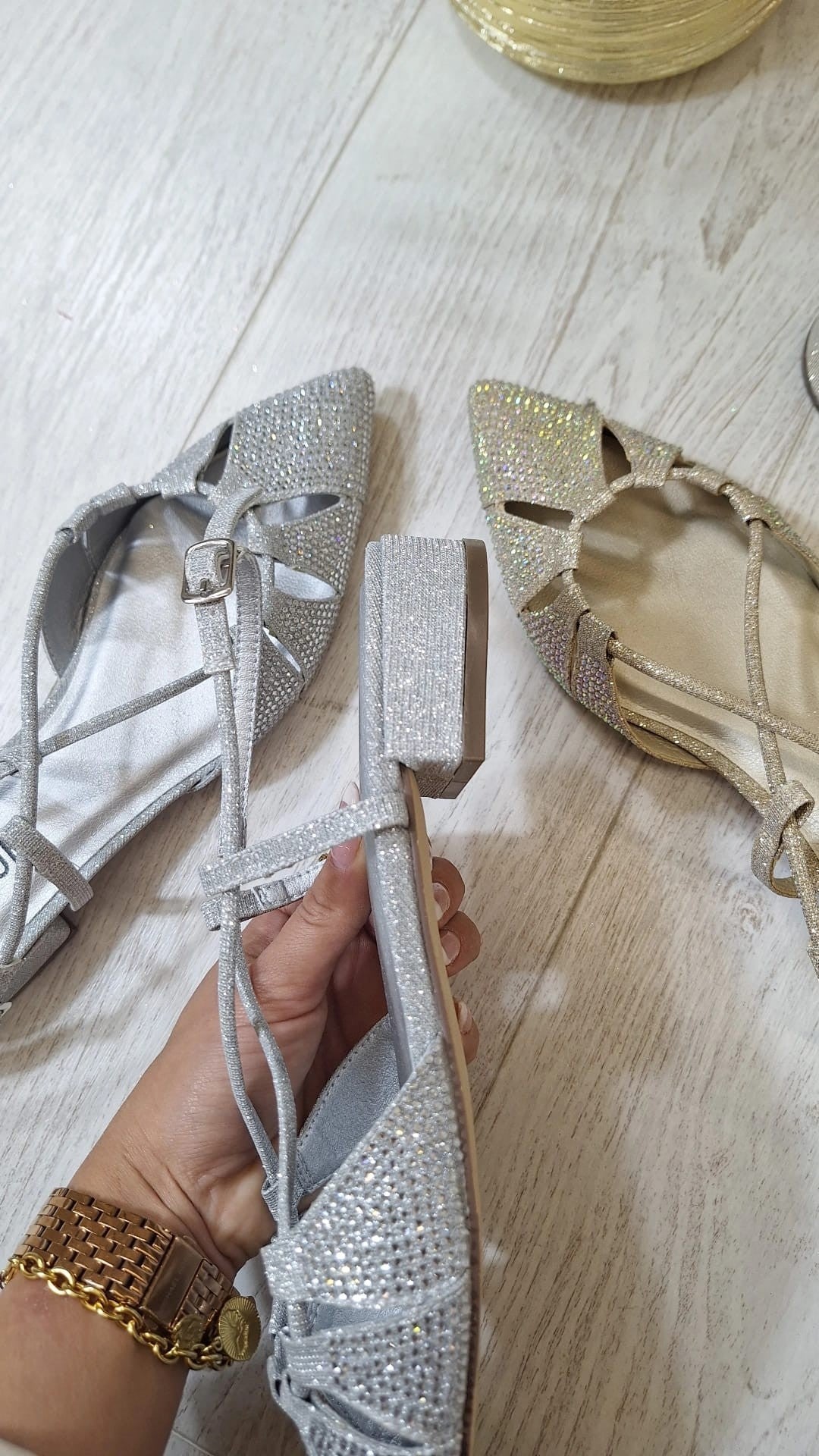 Tacchi Hayah - Slingback con tacco basso e largo in glitter con strass sulla punta