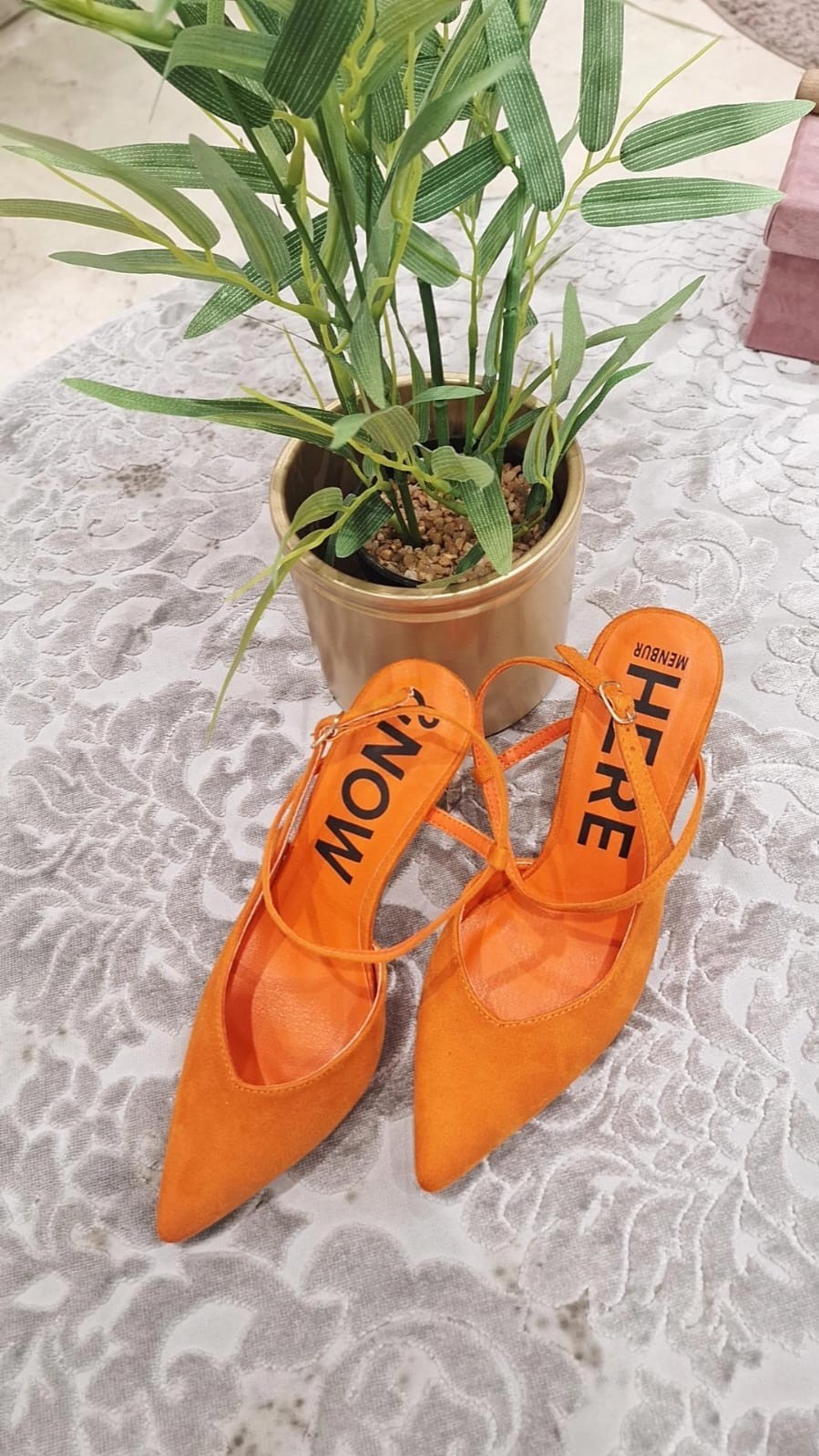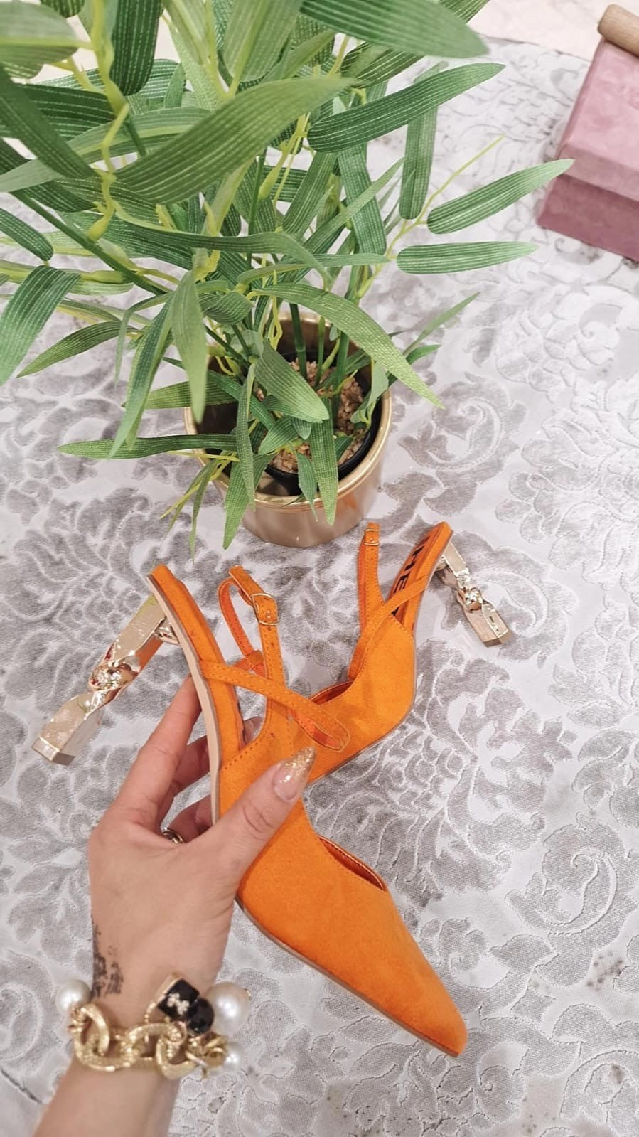 Tacchi Xyla - Slingback scamosciate con cinturino alla caviglia e tacco dorato motivo intrecciato