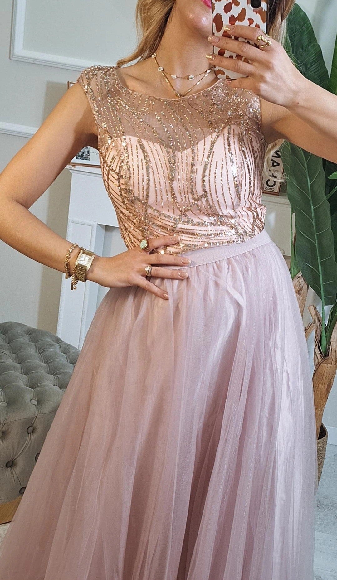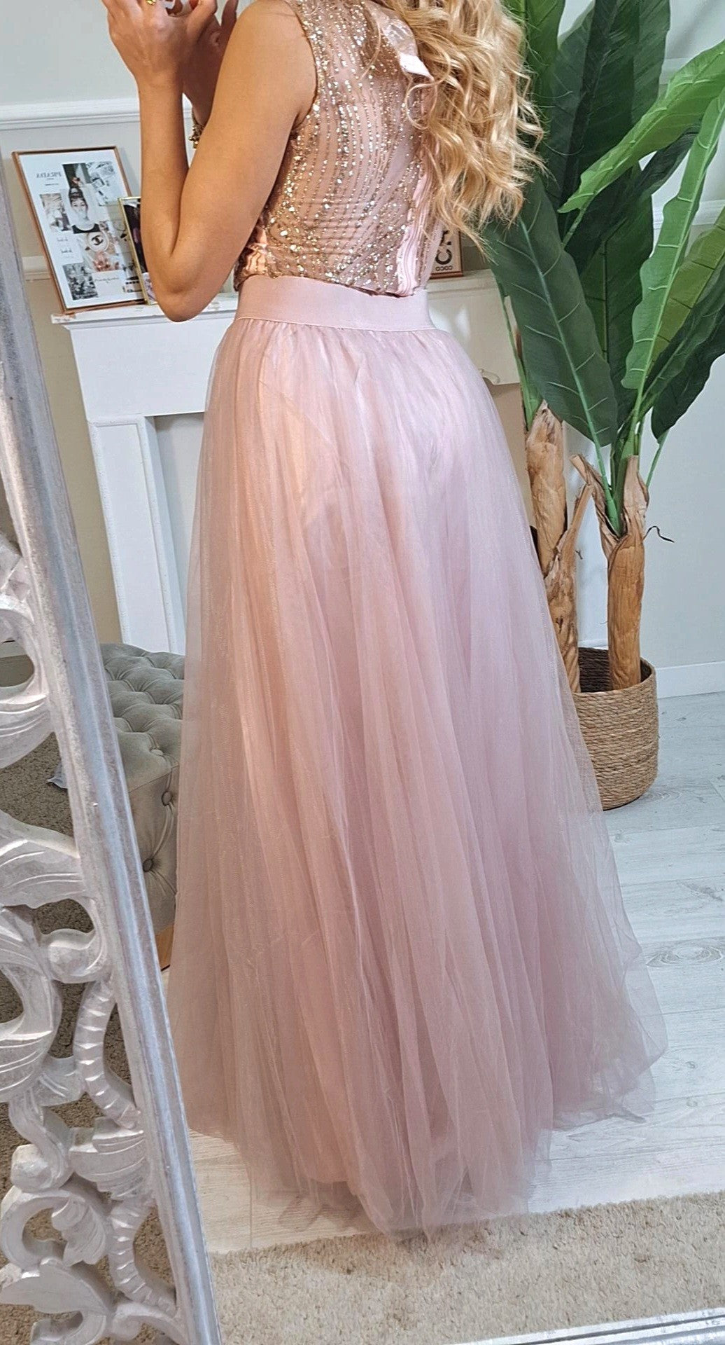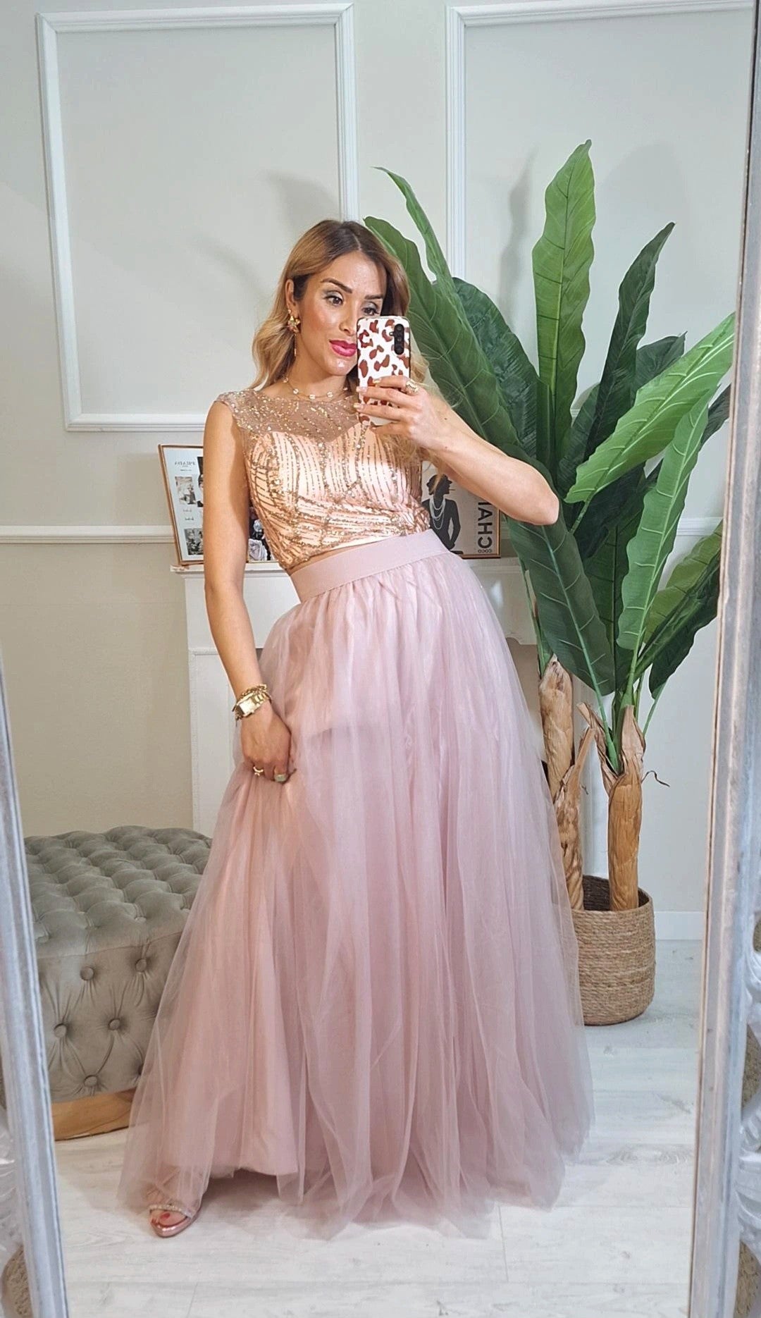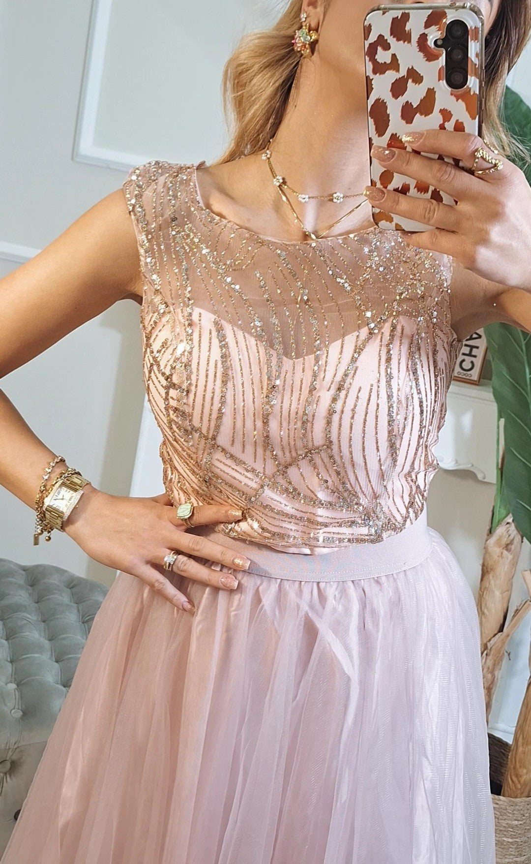 Top Charline- Top smanicato con paillettes e strass. Cerniera posteriore